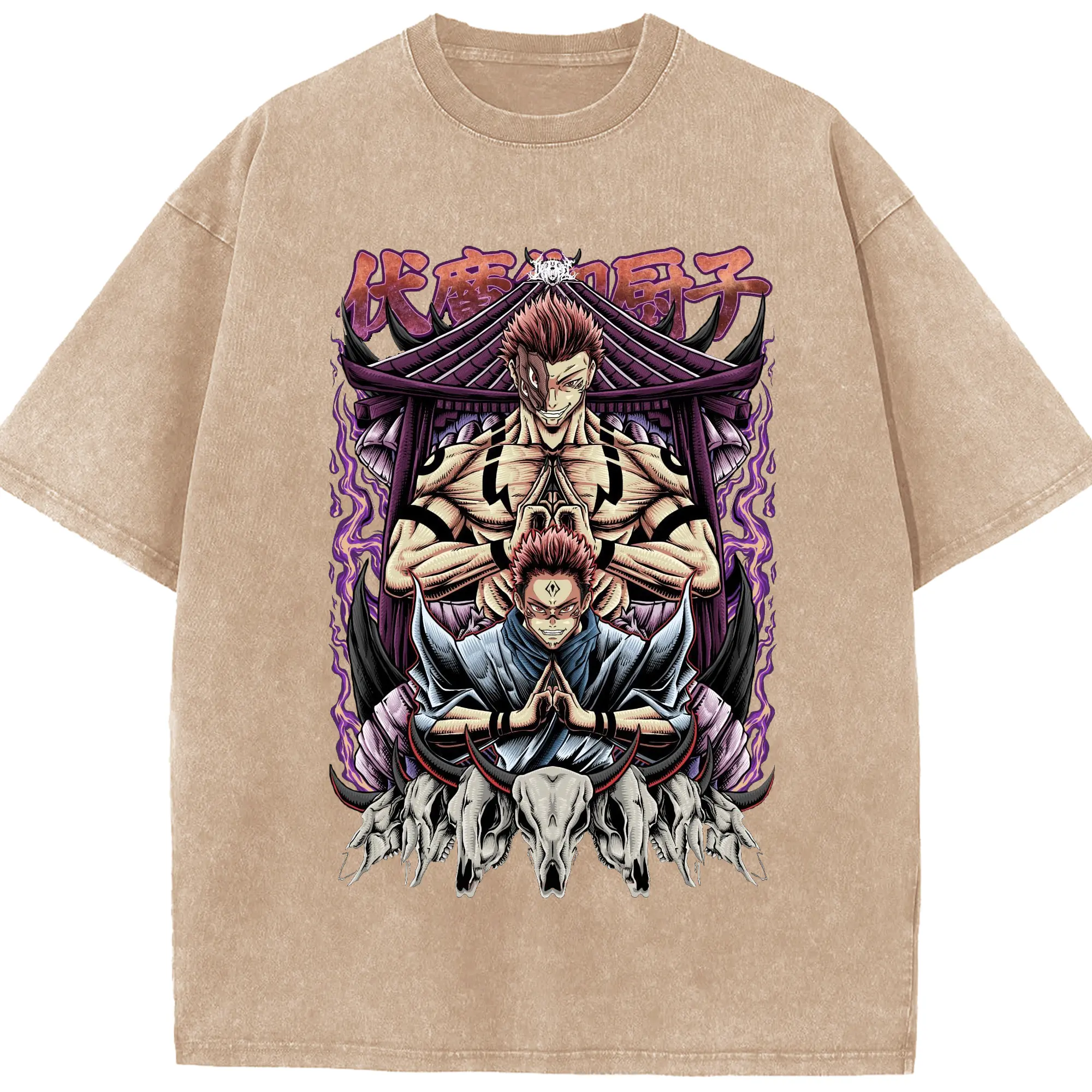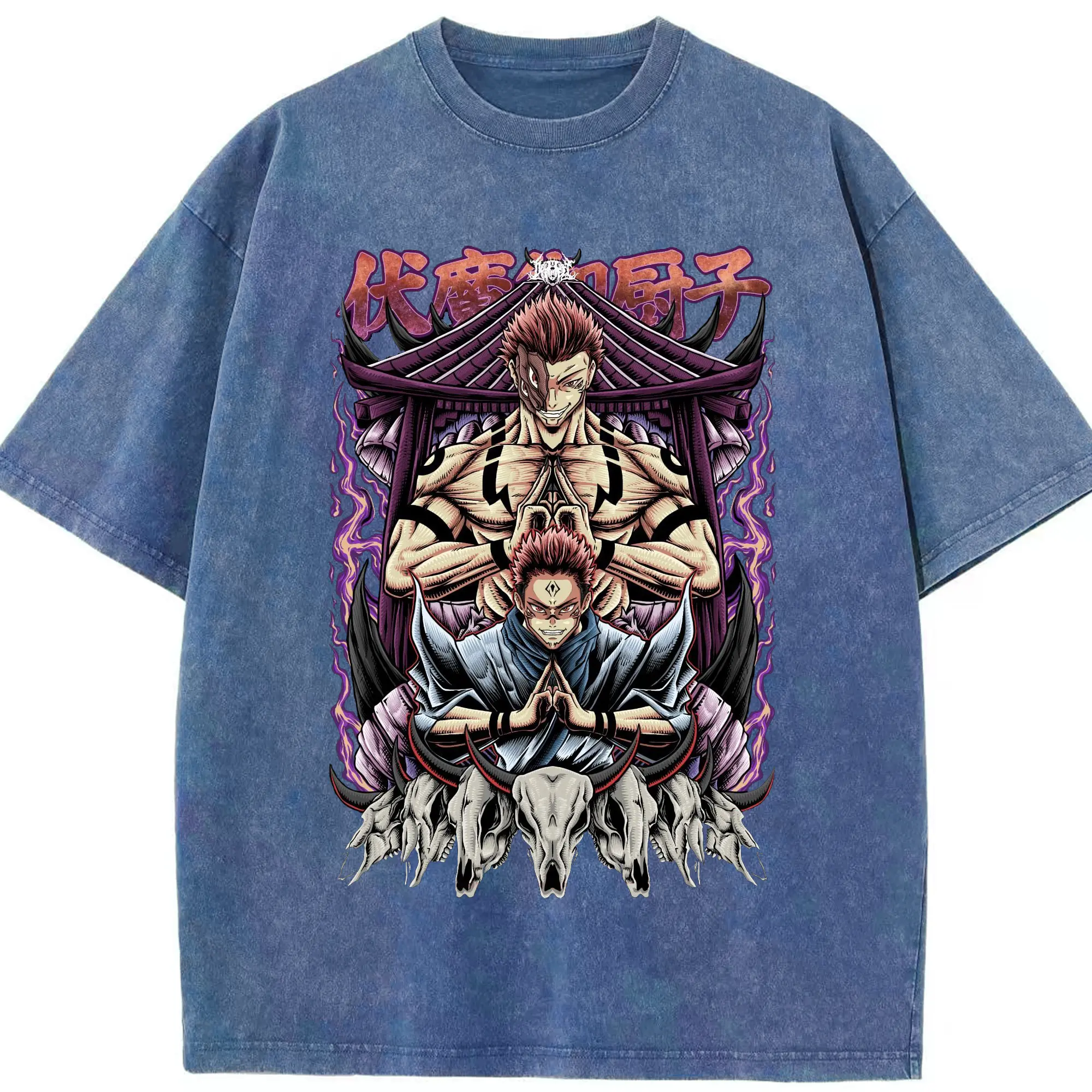 呪術廻戦 宿儺覚醒 領域展開 - 綿100% ヴィンテージ風 半袖Tシャツ ・ フロントプリント ・ 柔らか肌触り ・ 通気性 快適 ・ スポーツ カジュアル 外出用
