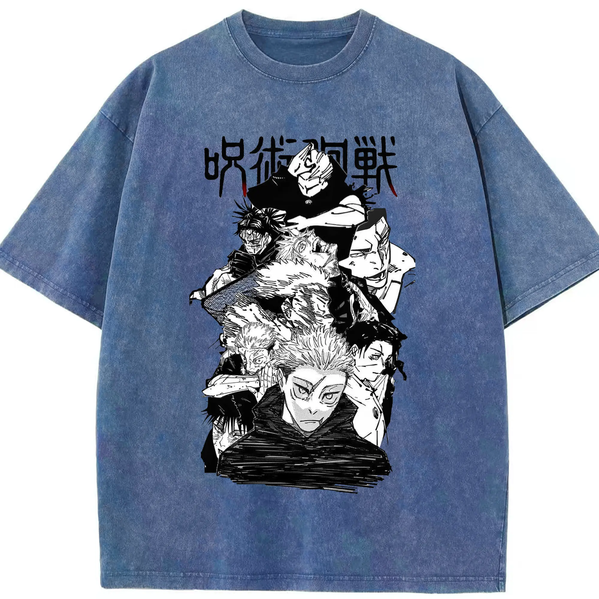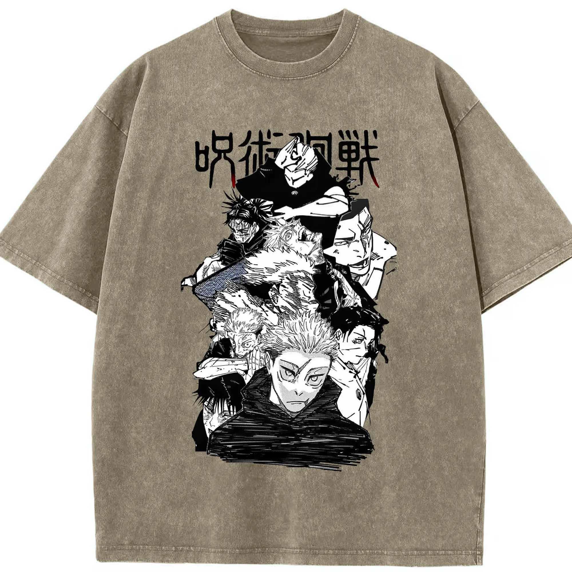 呪術廻戦 渋谷事変虎杖悠仁 - 綿100% ヴィンテージ風 半袖Tシャツ ・ フロントプリント ・ 柔らか肌触り ・ 通気性 快適 ・ スポーツ カジュアル 外出用