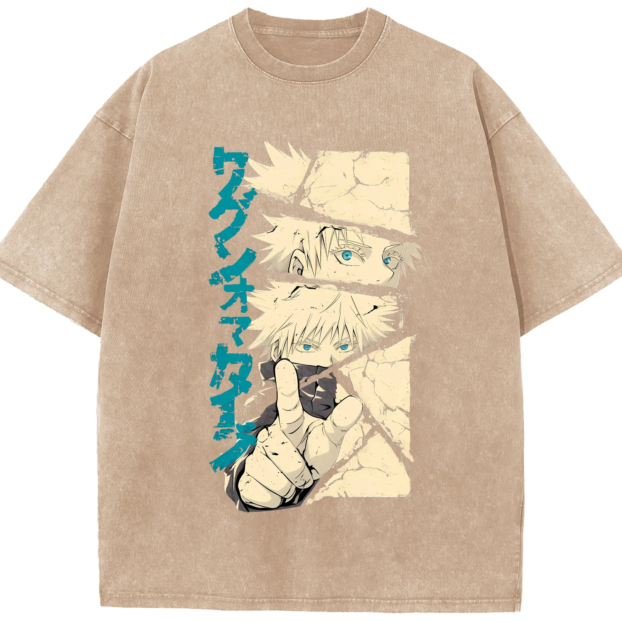 呪術廻戦 無量空処 かっこいい - 綿100% ヴィンテージ風 半袖Tシャツ ・ フロントプリント ・ 柔らか肌触り ・ 通気性 快適 ・ スポーツ カジュアル 外出用