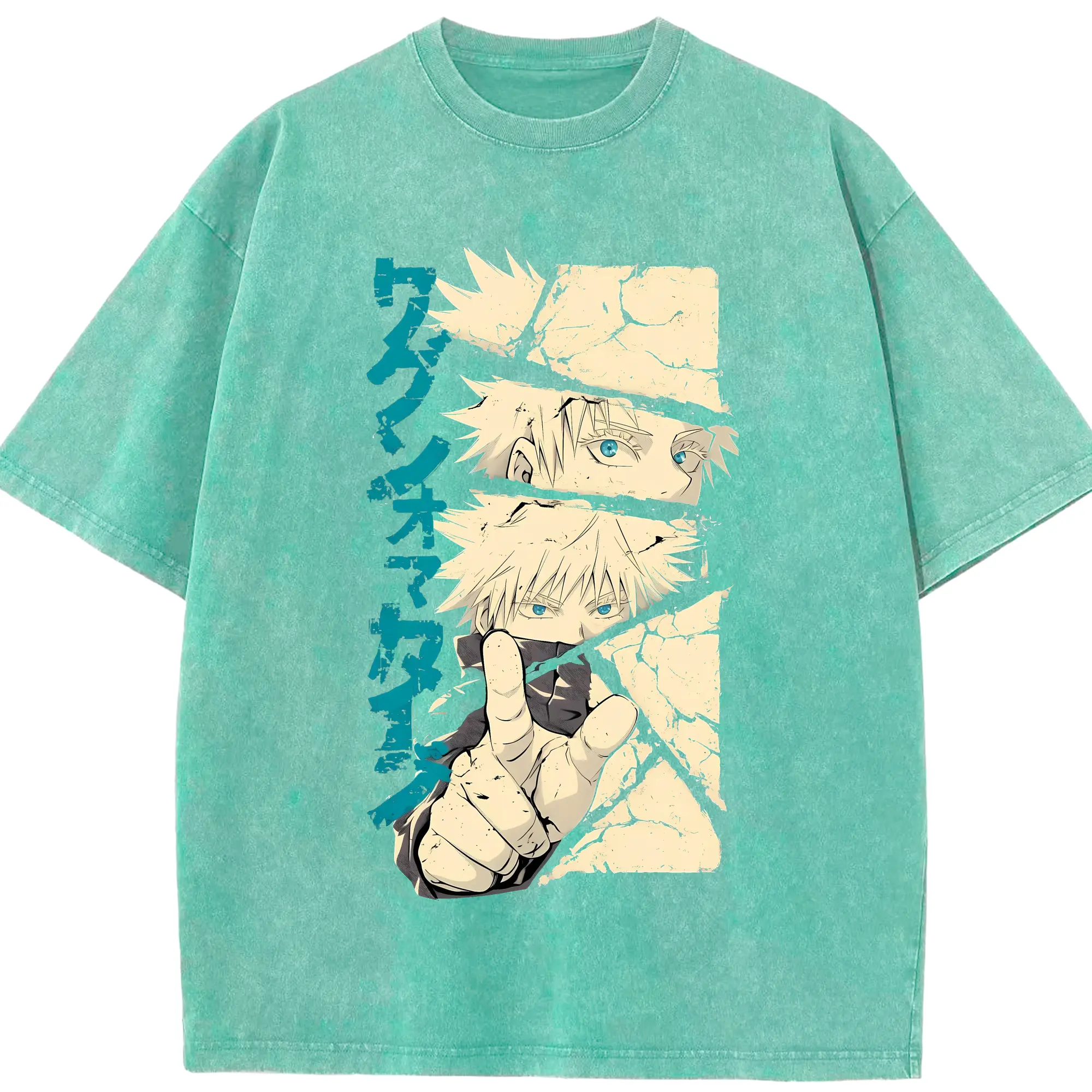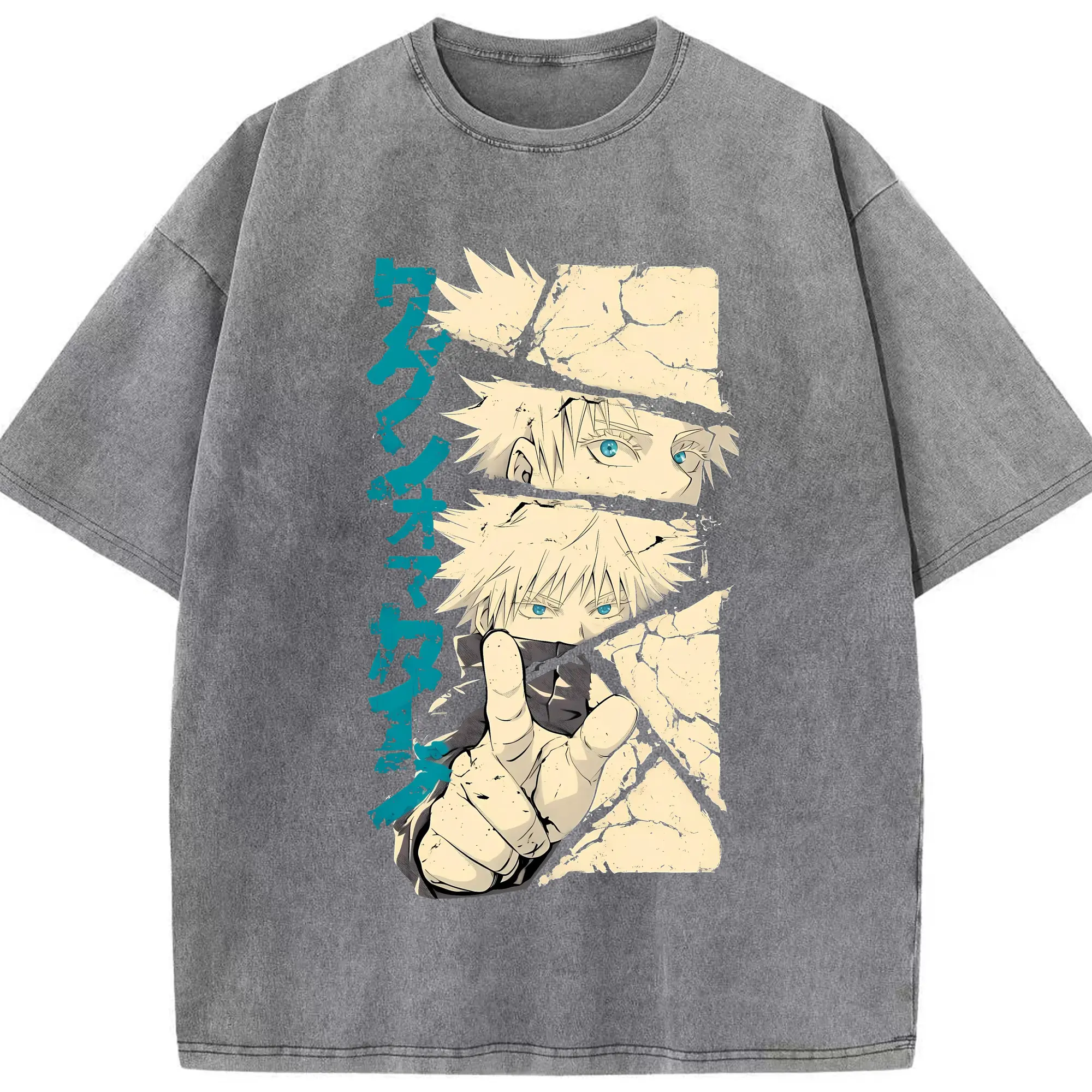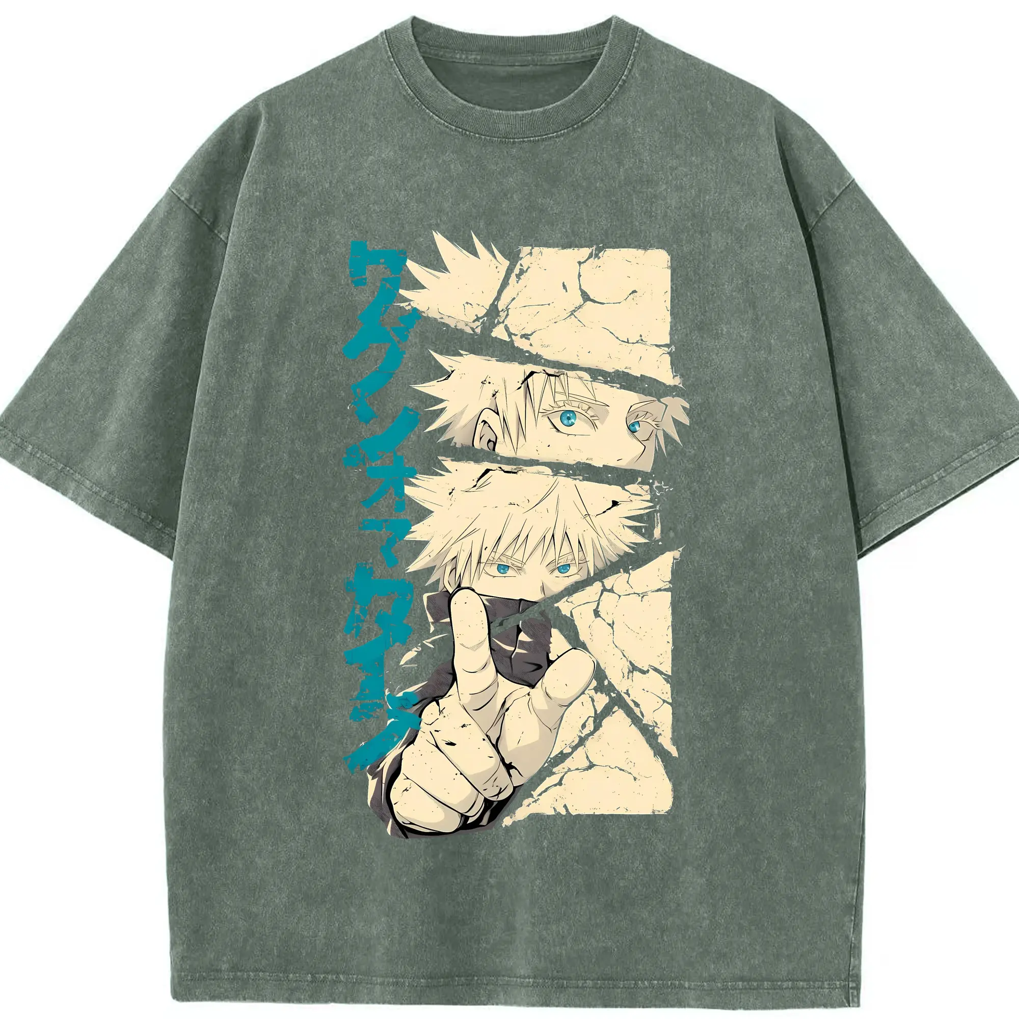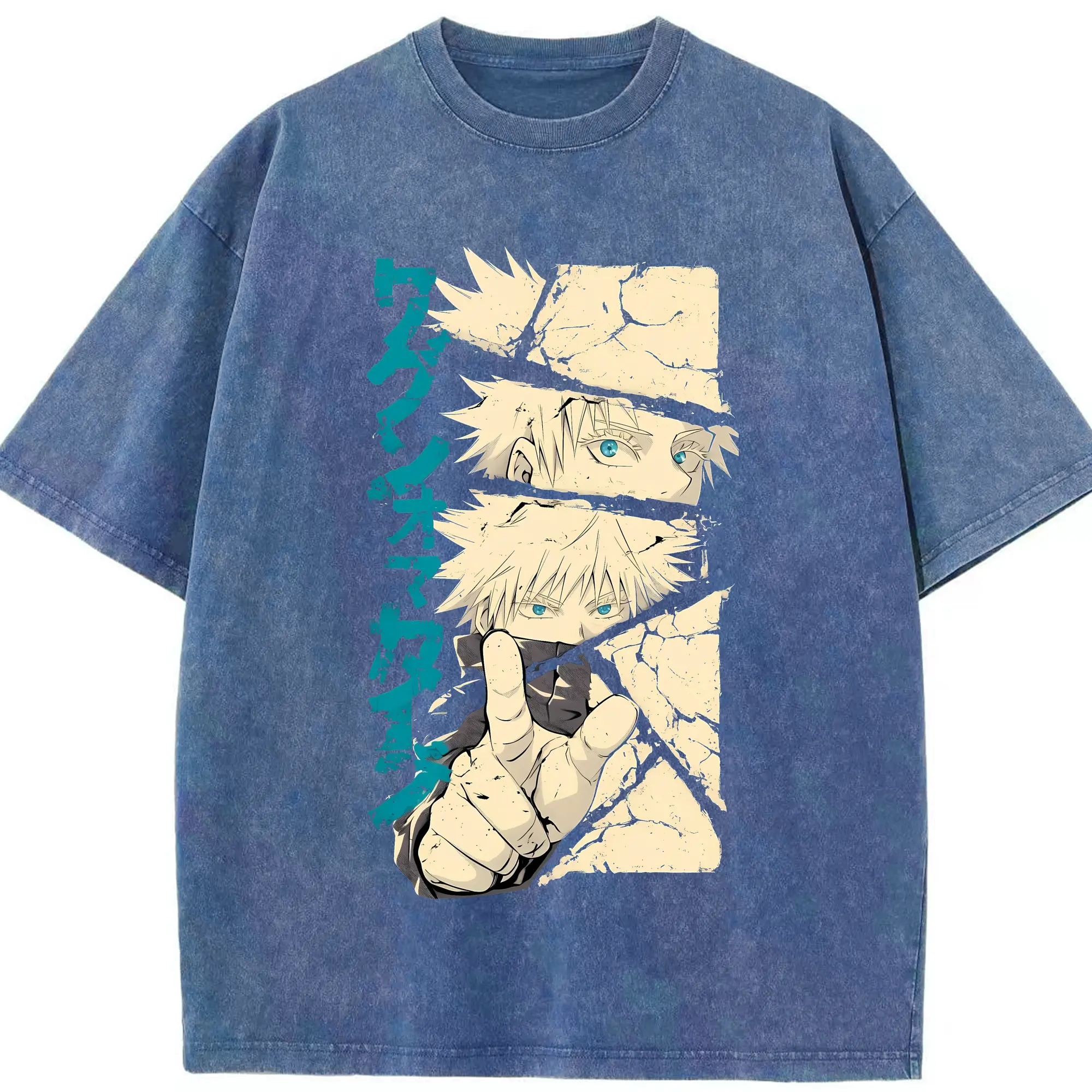 呪術廻戦 無量空処 かっこいい - 綿100% ヴィンテージ風 半袖Tシャツ ・ フロントプリント ・ 柔らか肌触り ・ 通気性 快適 ・ スポーツ カジュアル 外出用