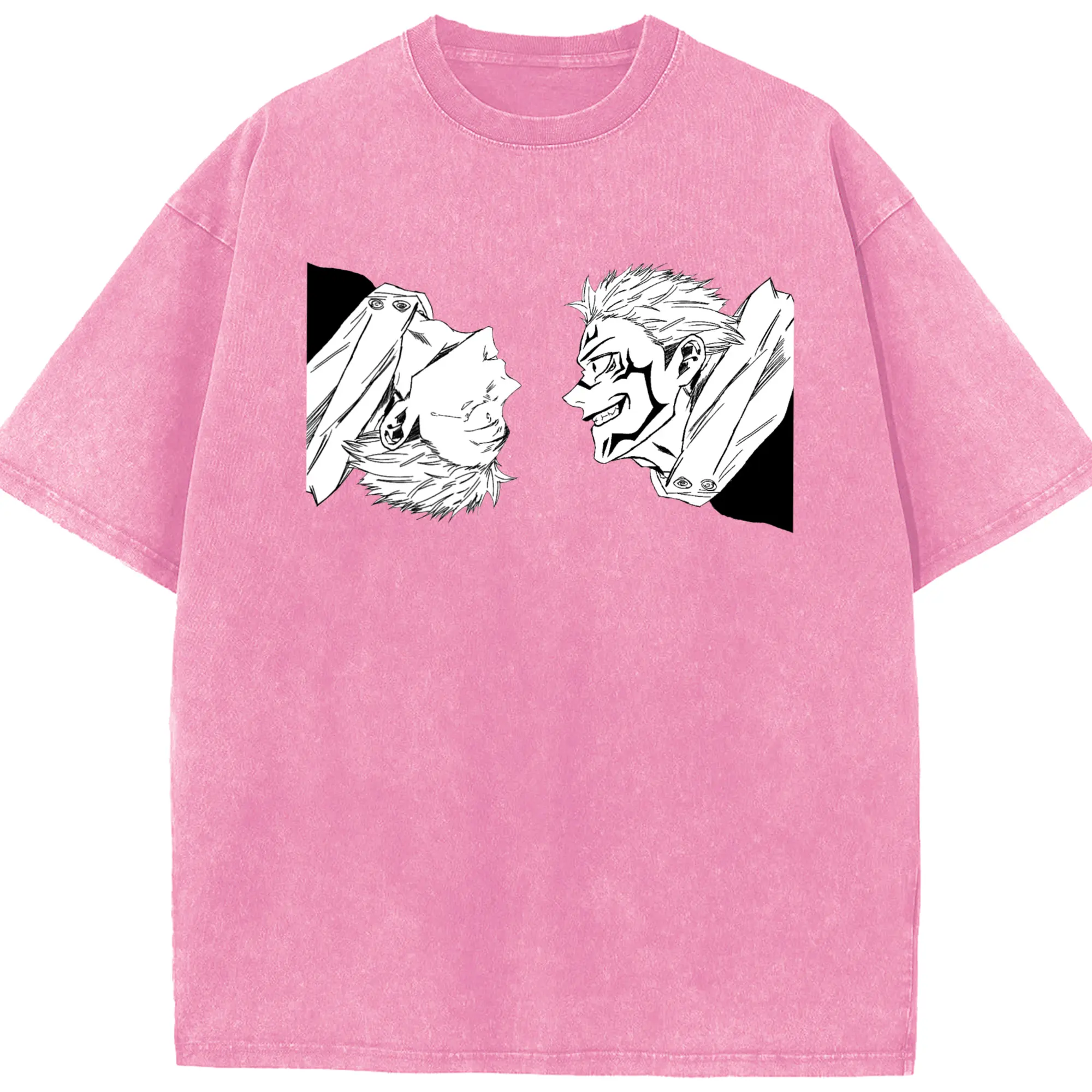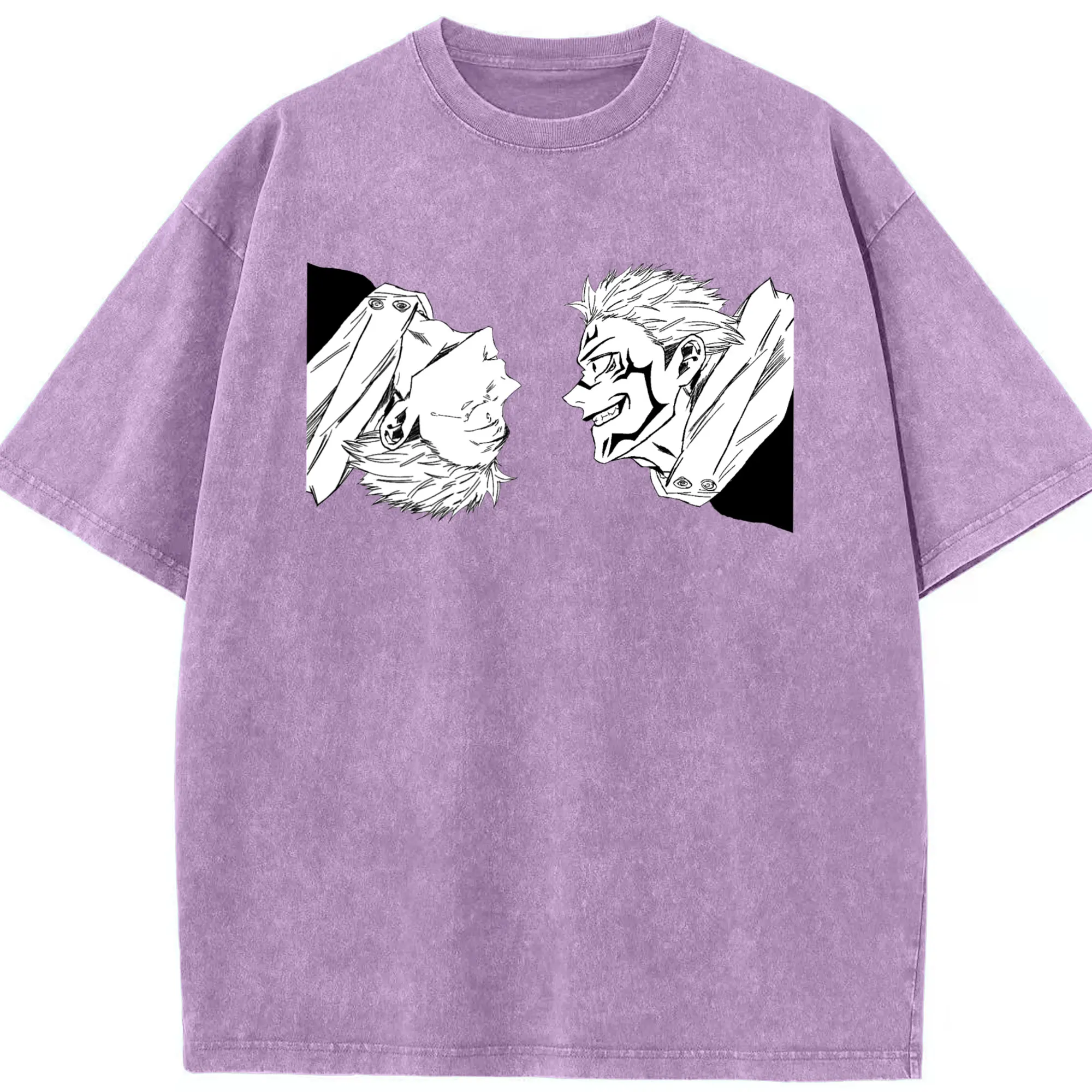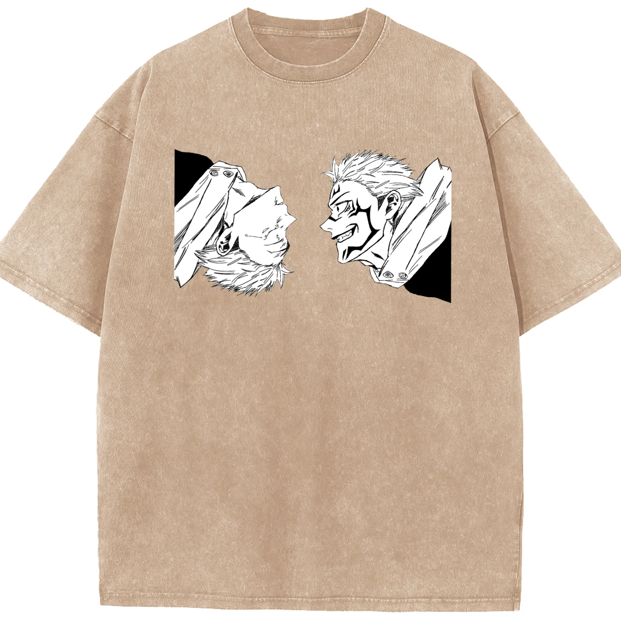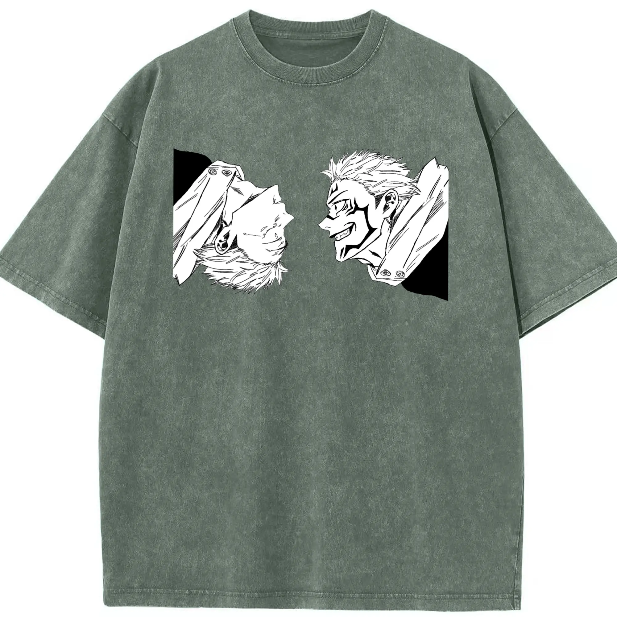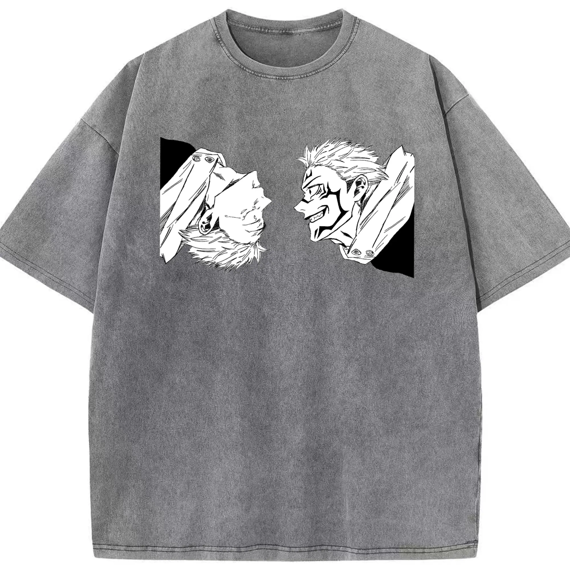 呪術廻戦 虎杖悠仁宿儺 - 綿100% ヴィンテージ風 半袖Tシャツ ・ フロントプリント ・ 柔らか肌触り ・ 通気性 快適 ・ スポーツ カジュアル 外出用
