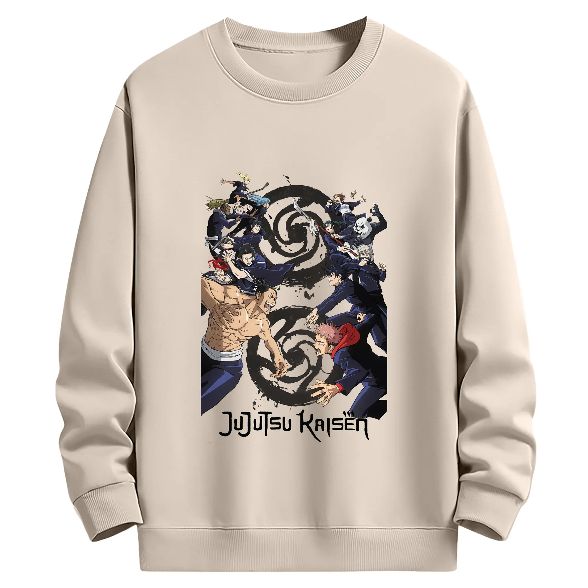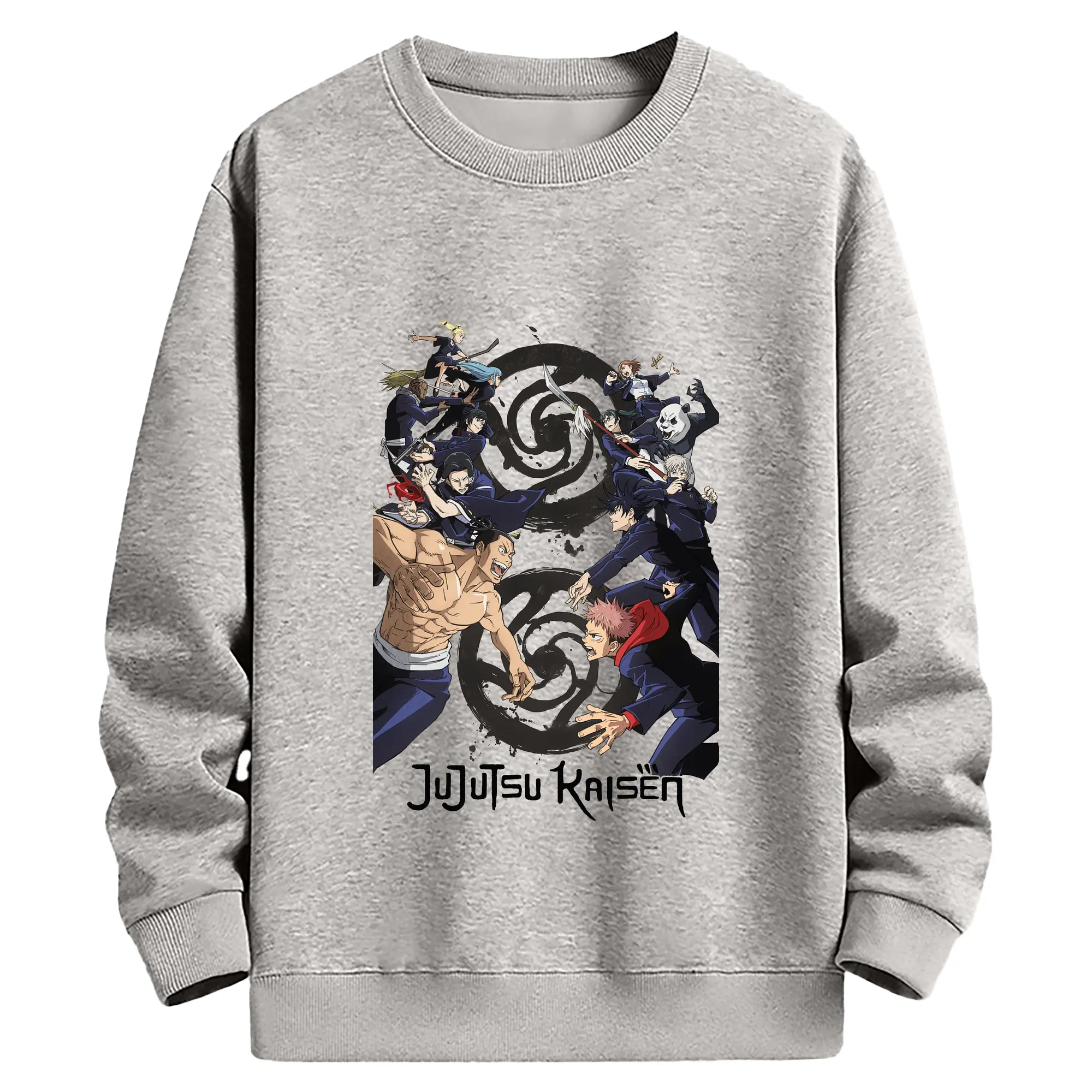 呪術廻戦 - 高品質 クルーネック スウェット ・ コットン59% ポリエステル41% ・ ユニセックス 長袖 トレーナー ・ カジュアル デイリー スポーツ 散歩用