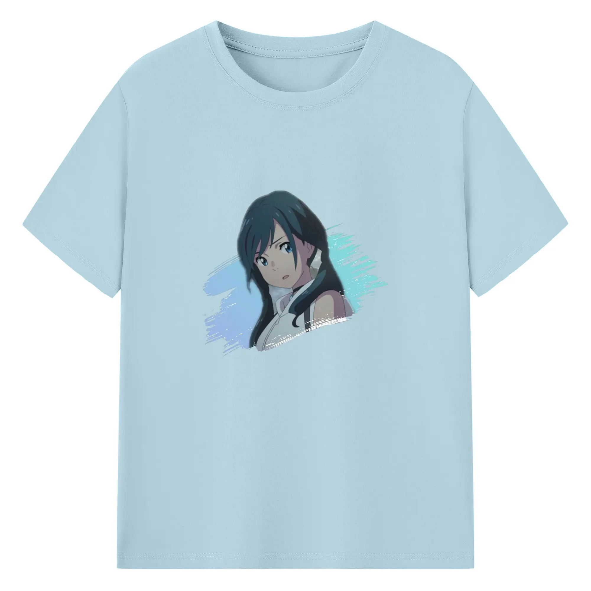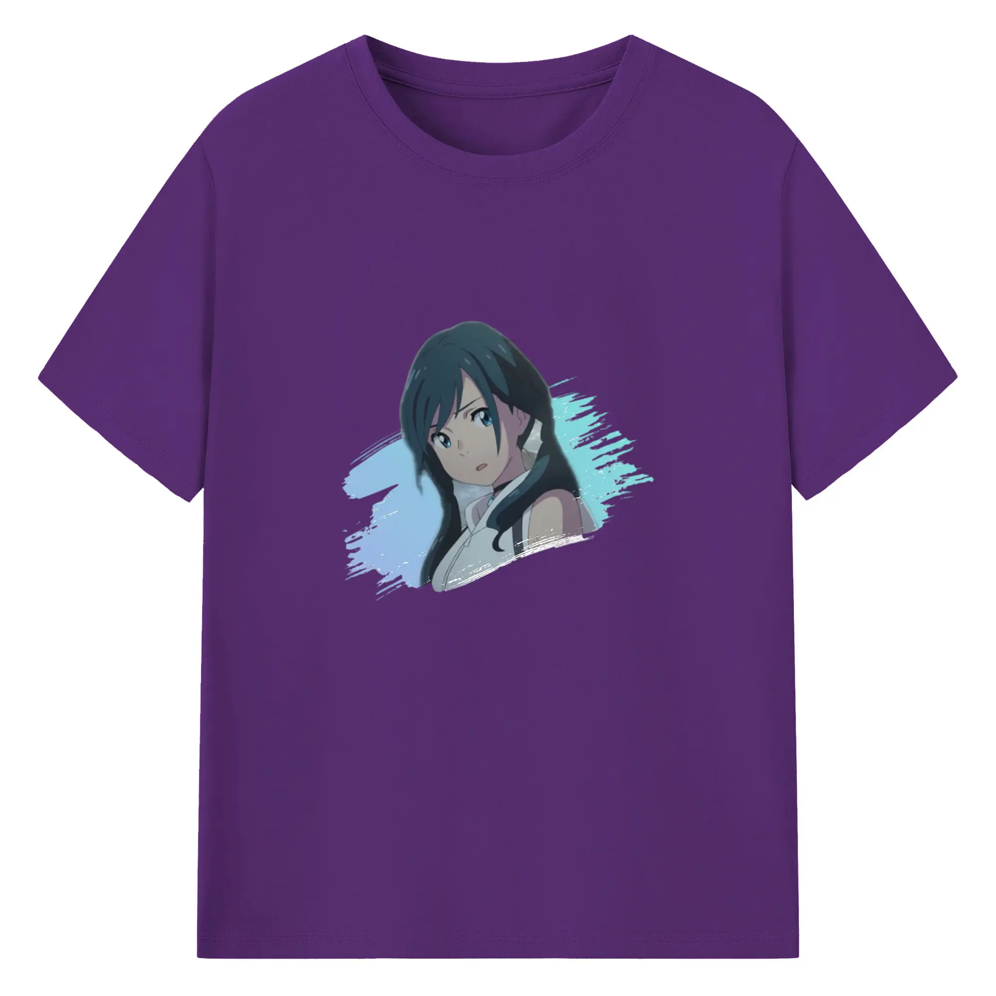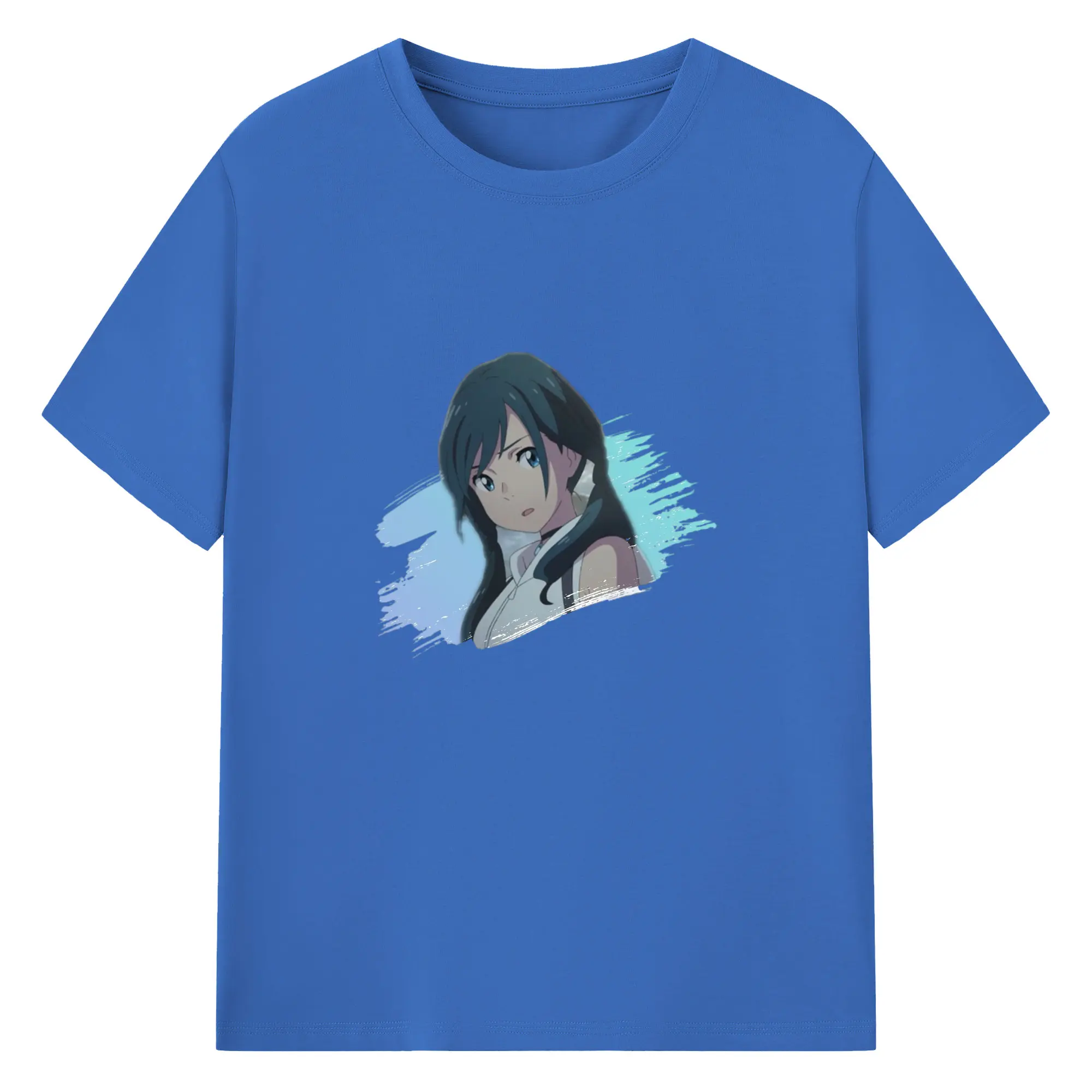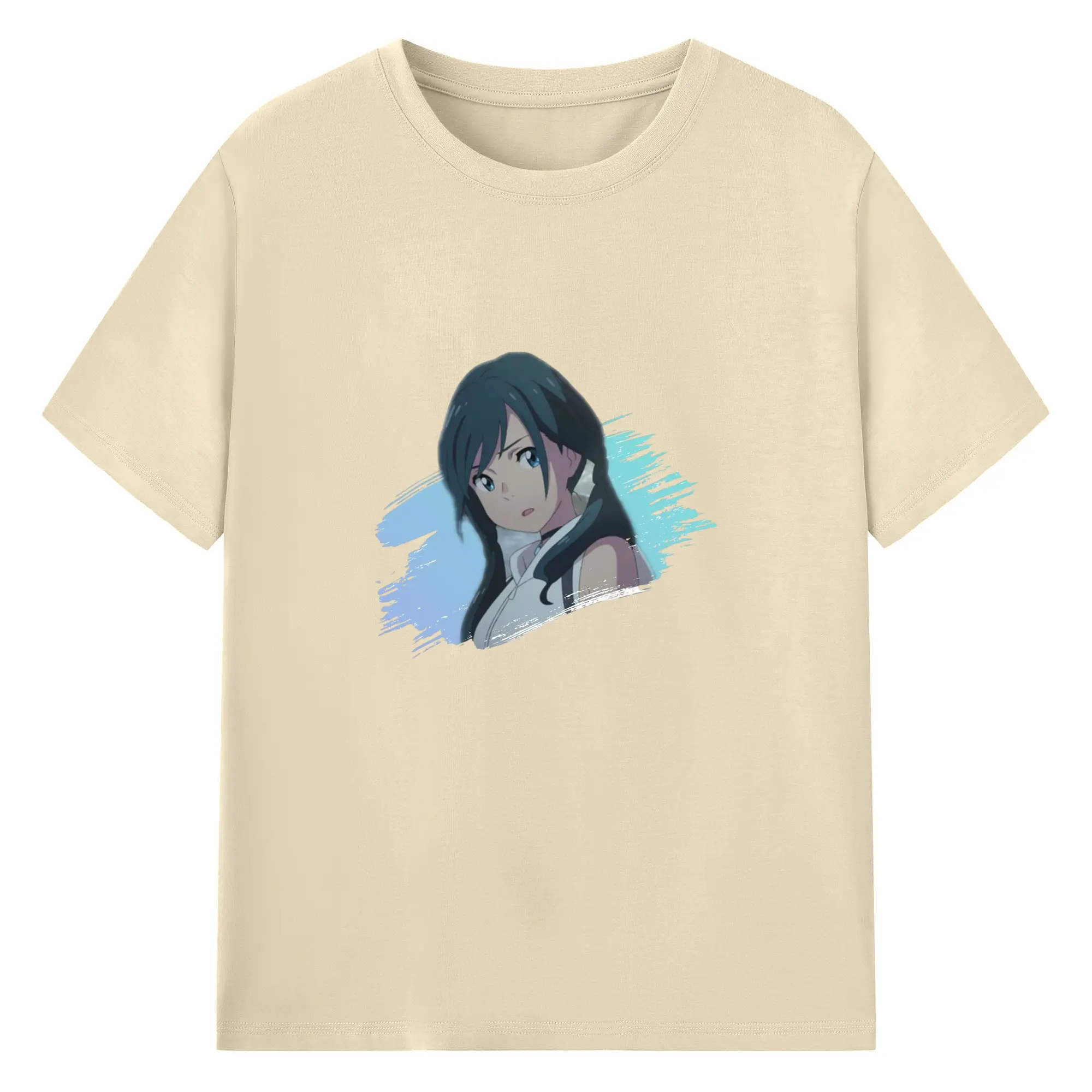 天気の子 天野陽菜 - 綿100% ヴィンテージ風 半袖Tシャツ ・ フロントプリント ・ 柔らか肌触り ・ 通気性 快適 ・ スポーツ カジュアル 外出用
