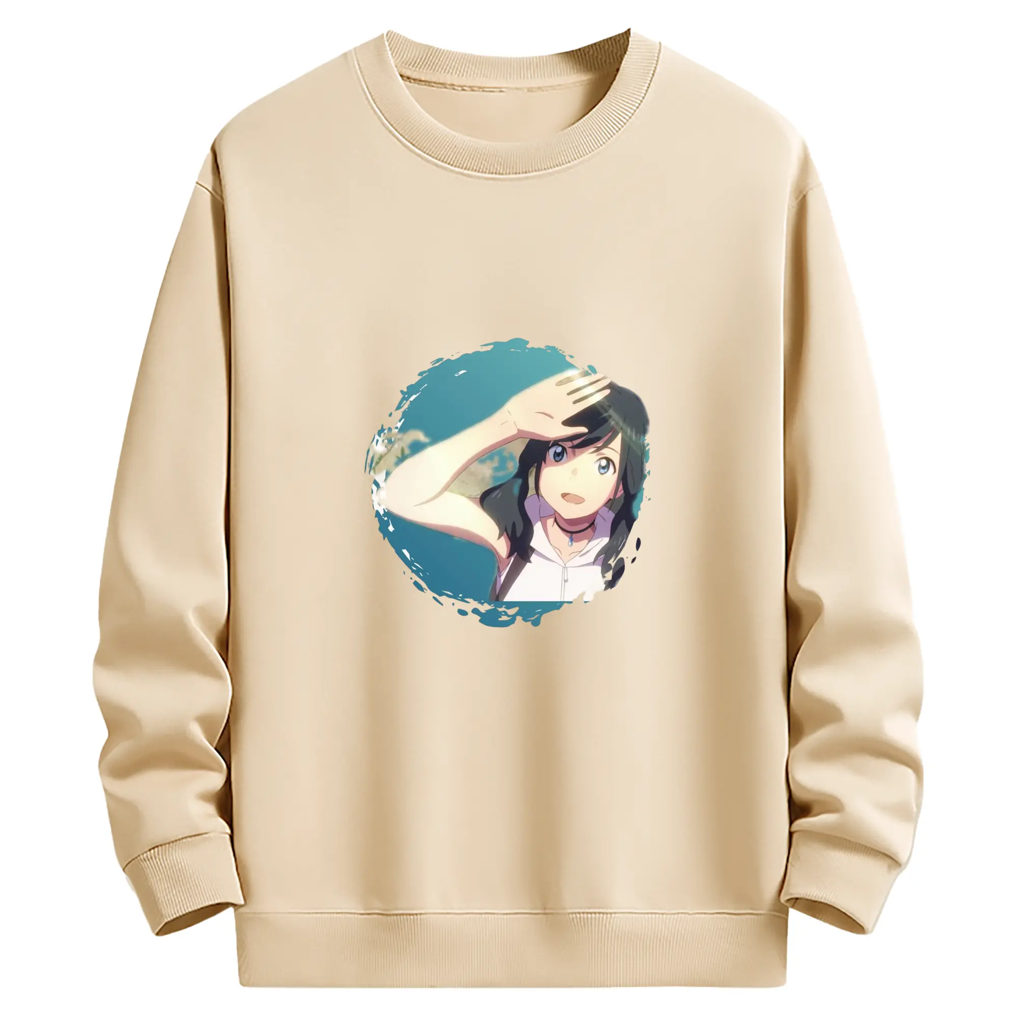 天気の子 天野陽菜 - 綿100% ヴィンテージ風 半袖Tシャツ ・ フロントプリント ・ 柔らか肌触り ・ 通気性 快適 ・ スポーツ カジュアル 外出用