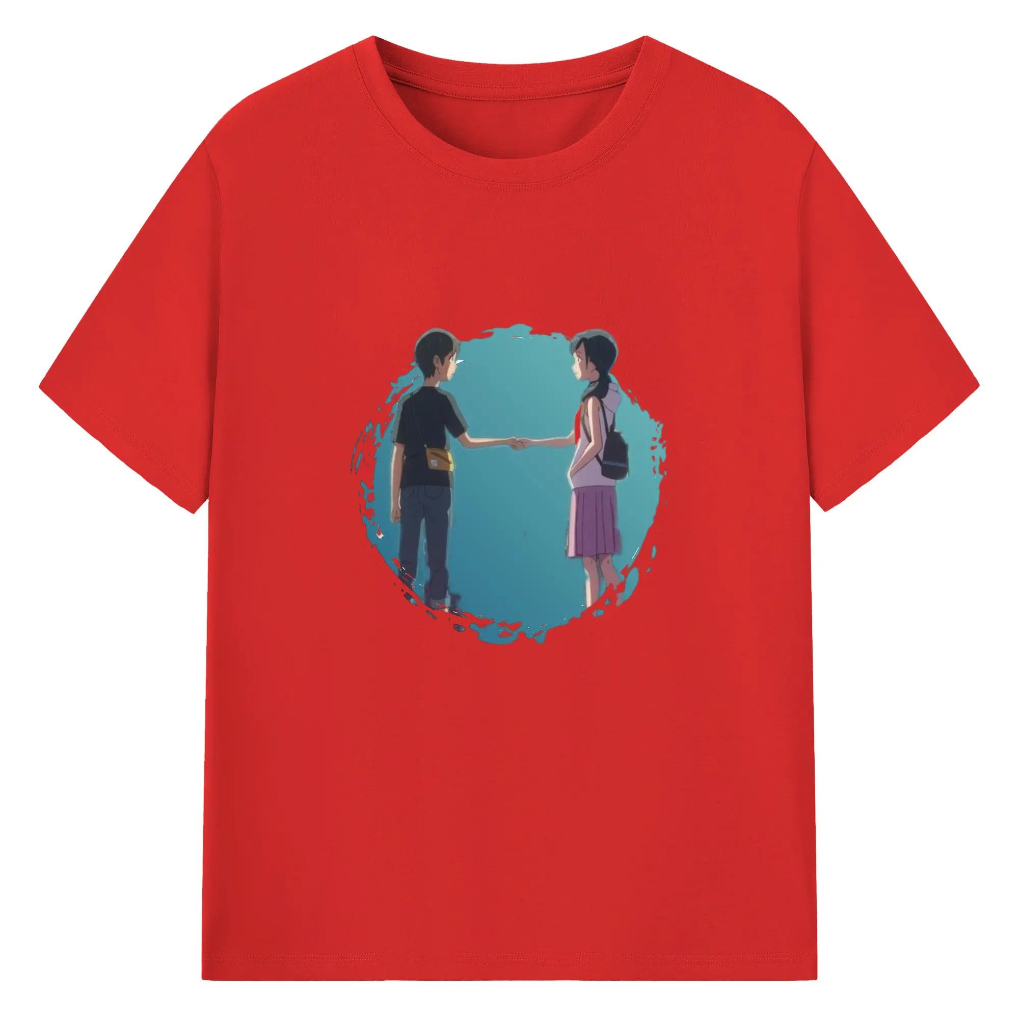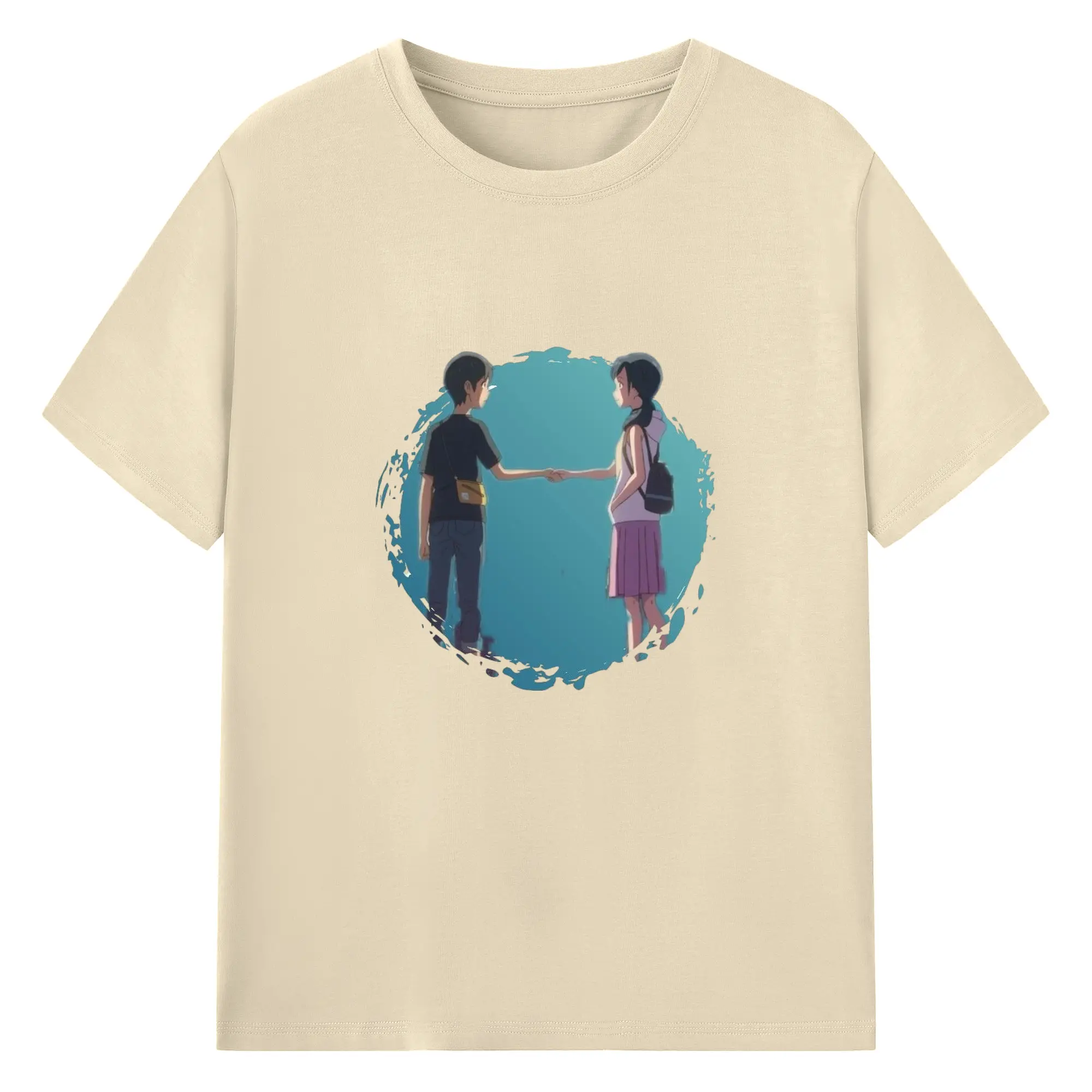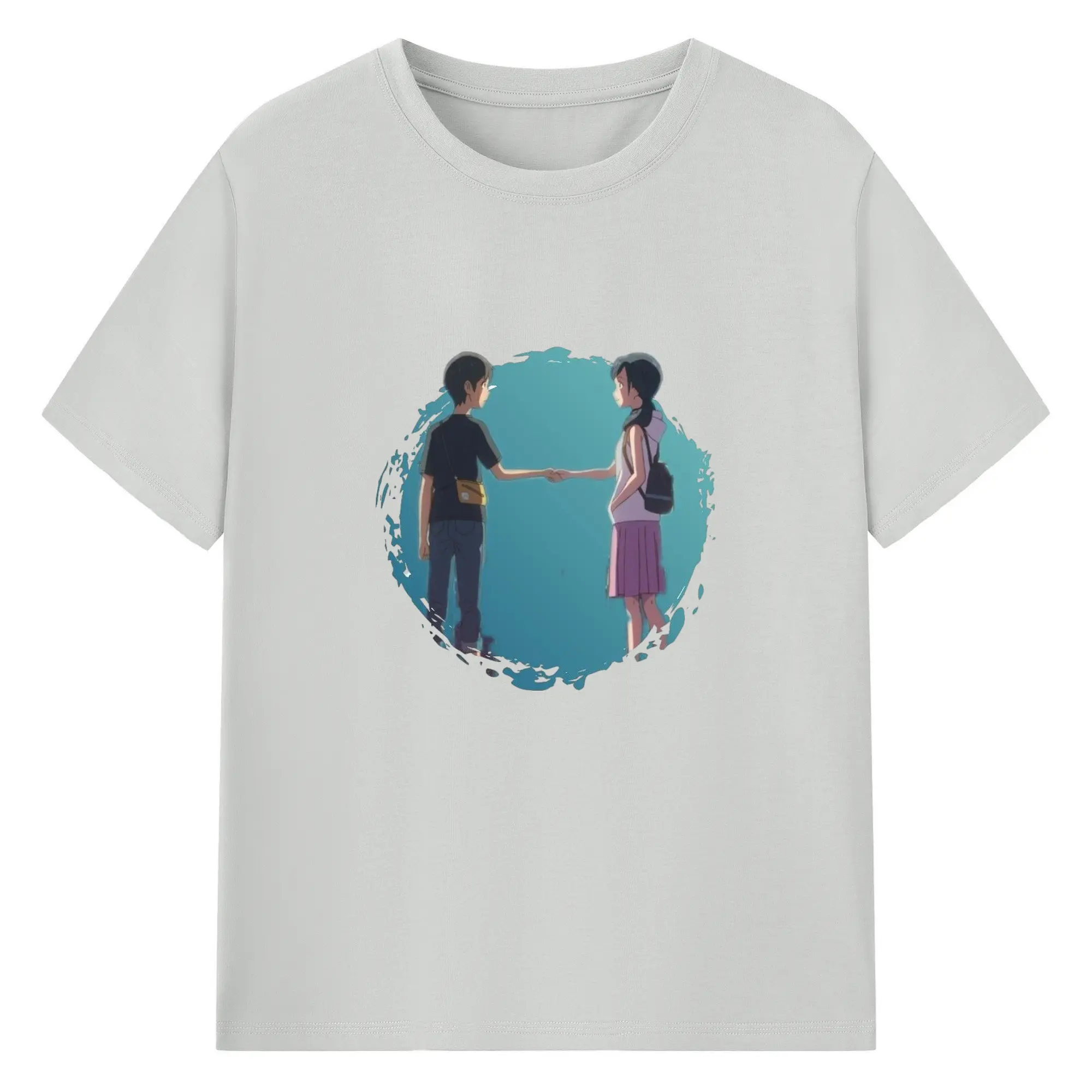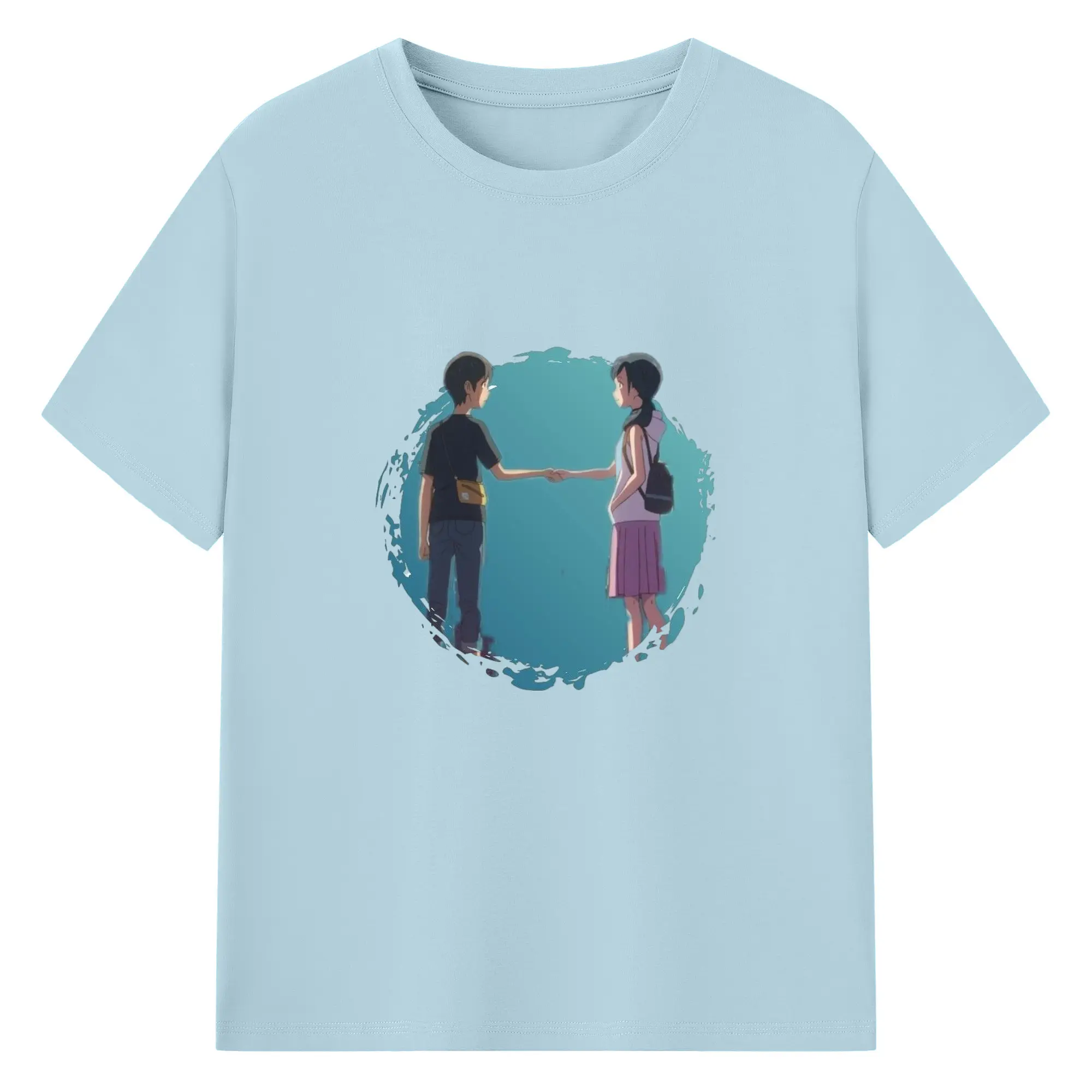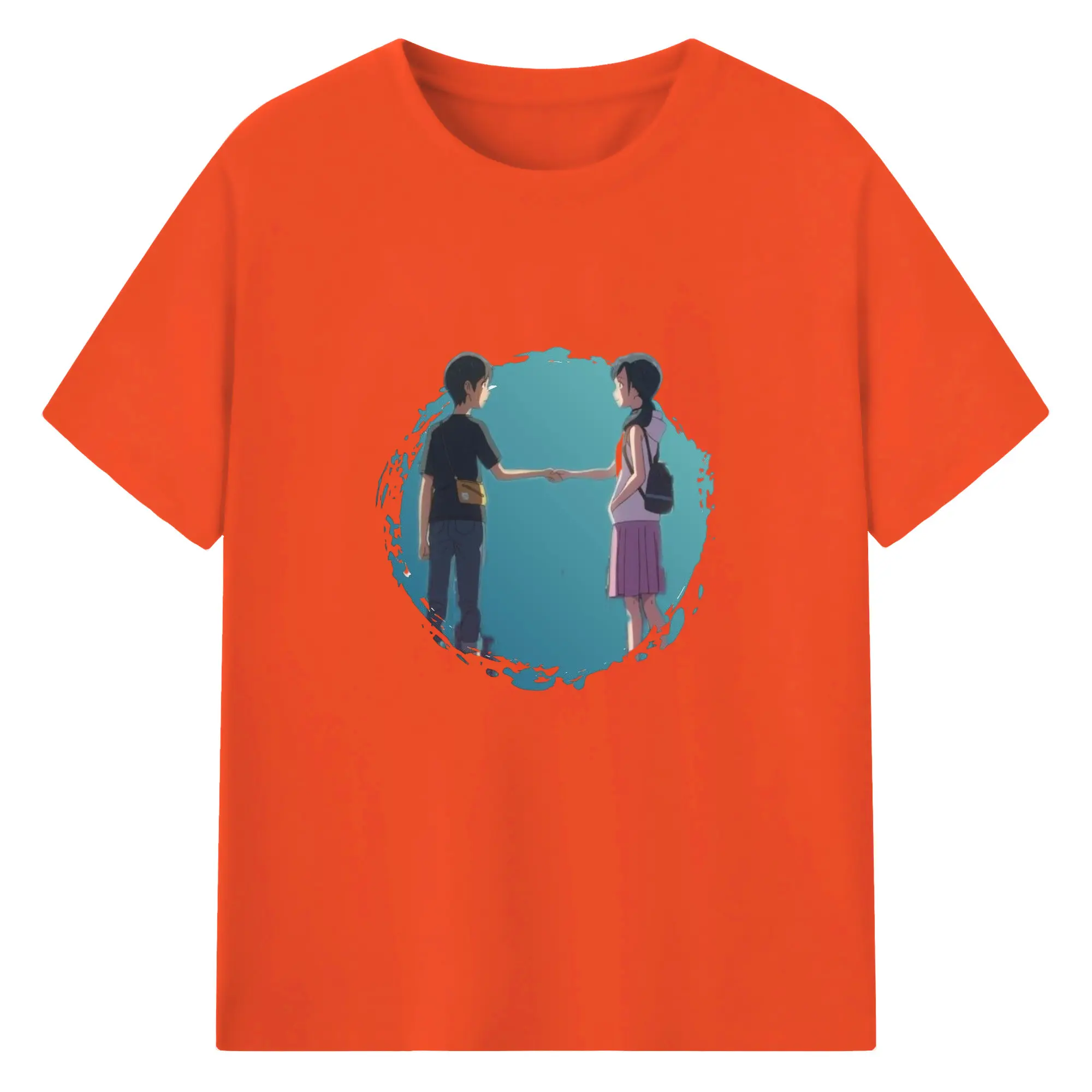 天気の子 森嶋帆高天野陽菜 - 綿100% ヴィンテージ風 半袖Tシャツ ・ フロントプリント ・ 柔らか肌触り ・ 通気性 快適 ・ スポーツ カジュアル 外出用