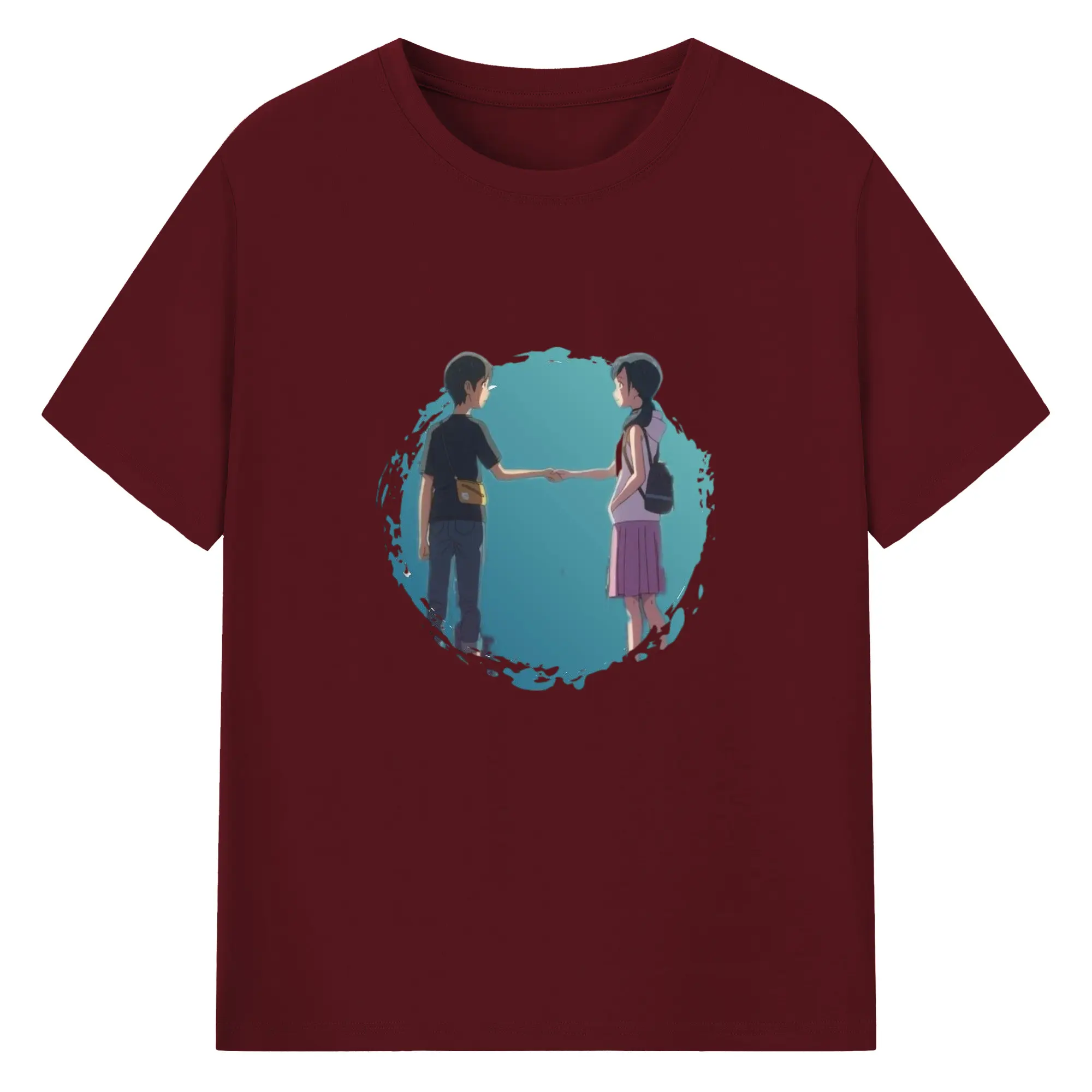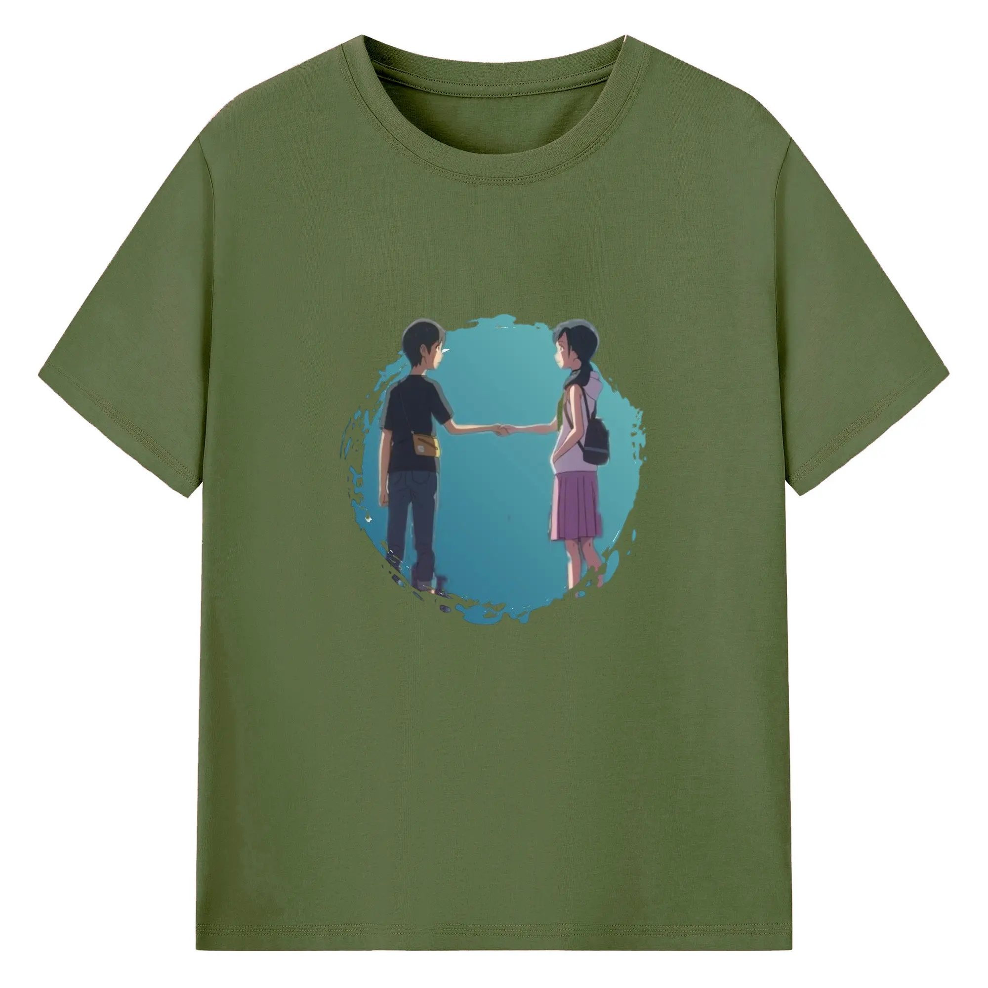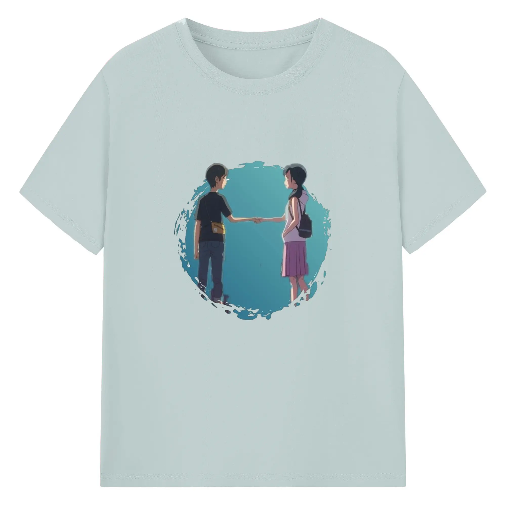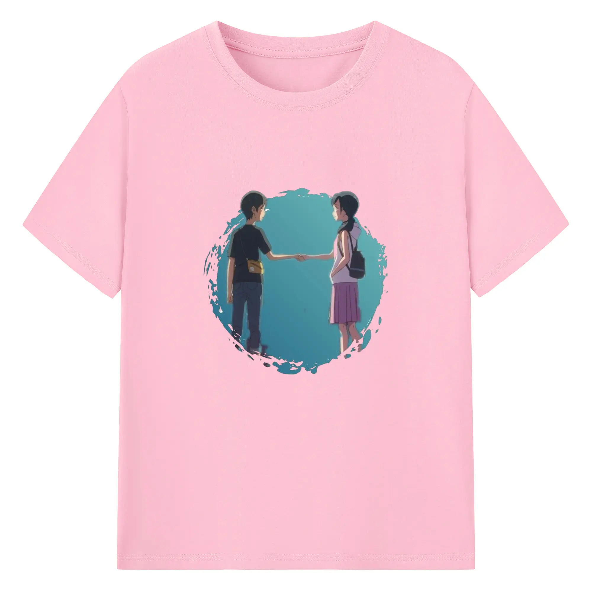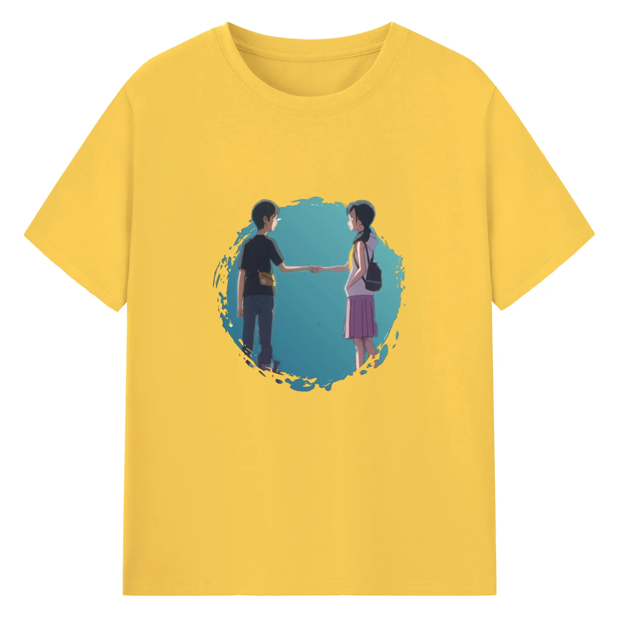 天気の子 森嶋帆高天野陽菜 - 綿100% ヴィンテージ風 半袖Tシャツ ・ フロントプリント ・ 柔らか肌触り ・ 通気性 快適 ・ スポーツ カジュアル 外出用