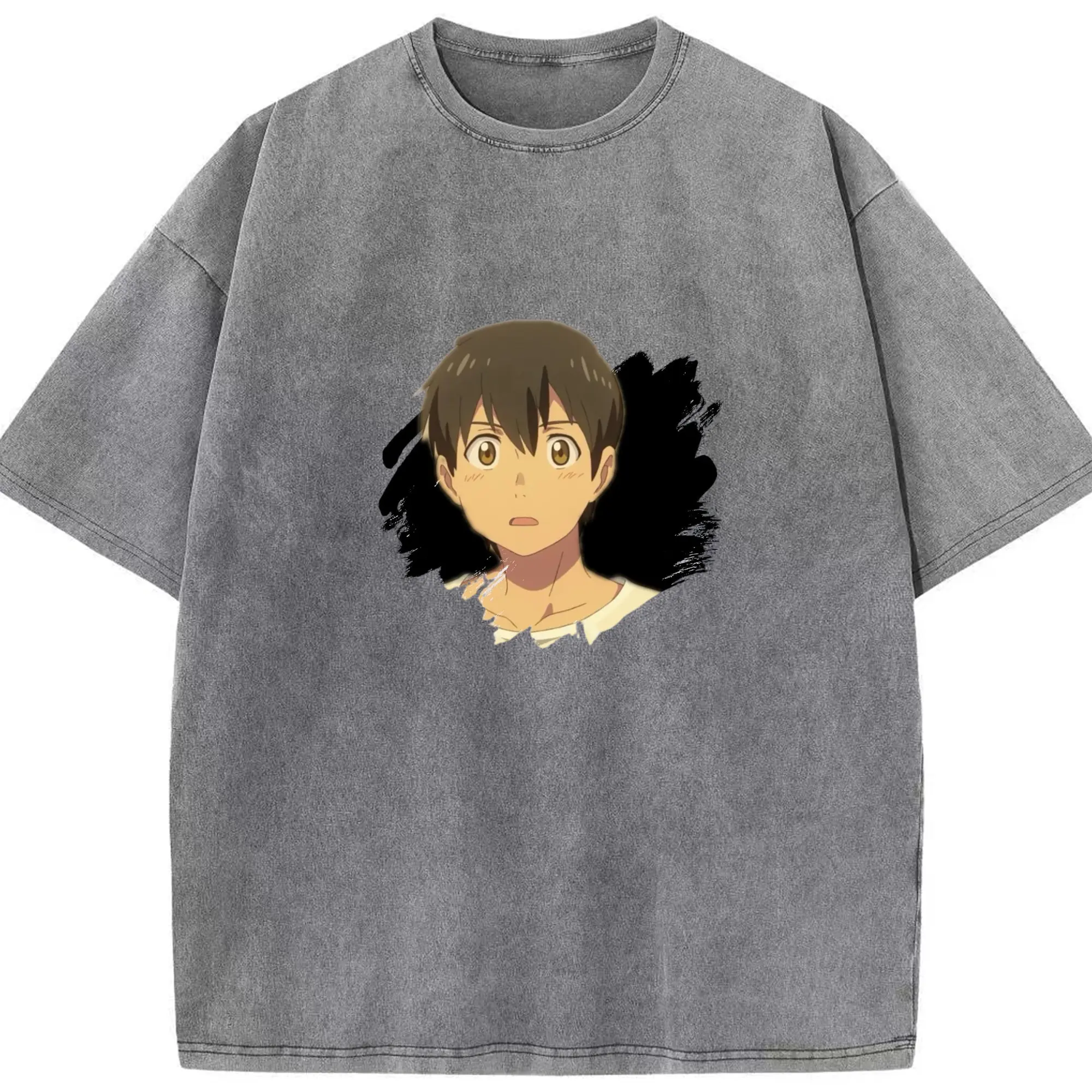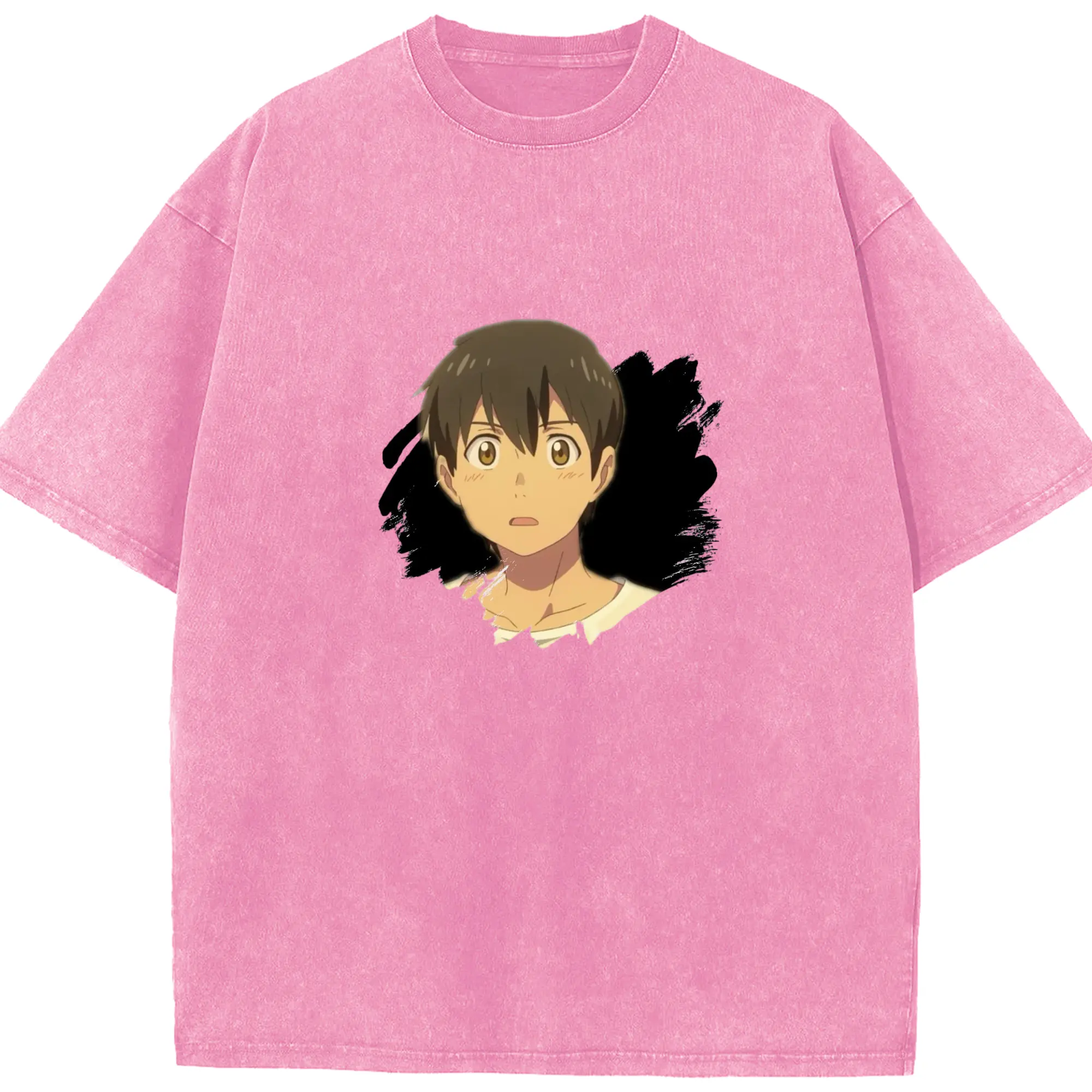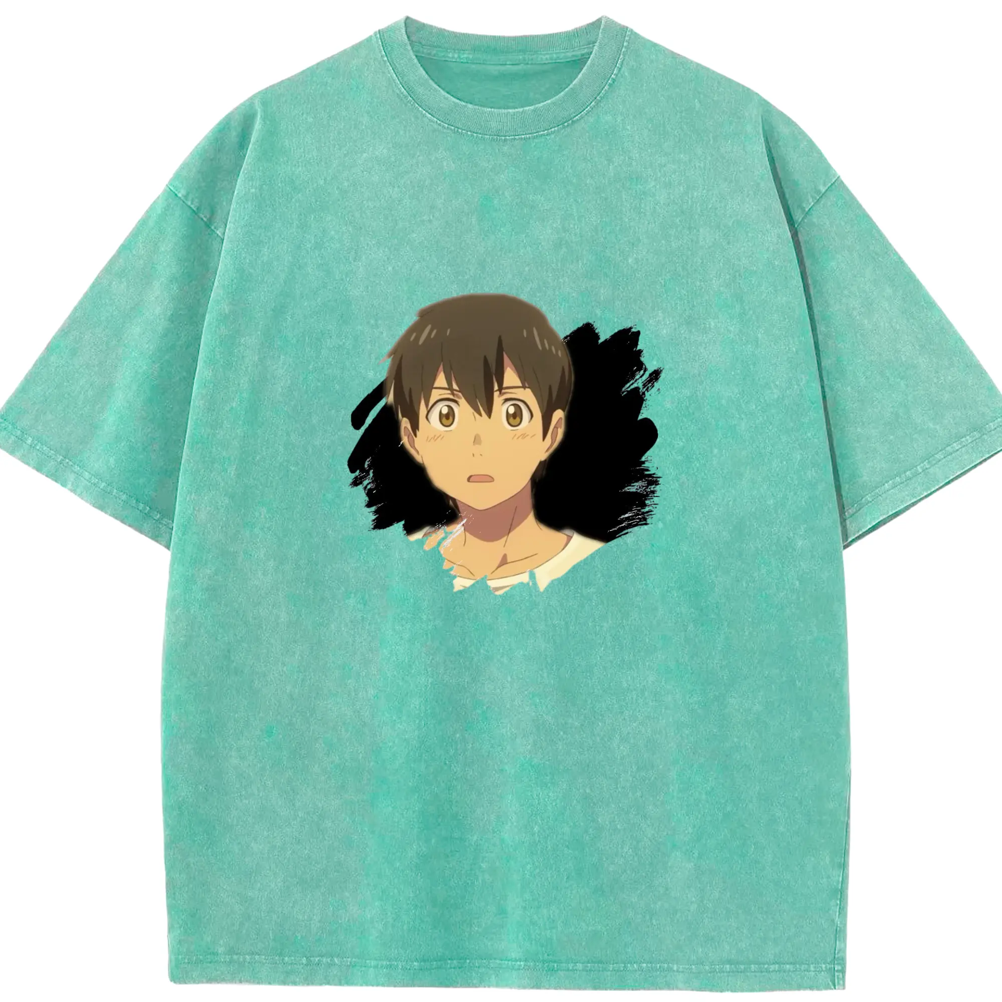 天気の子 森嶋帆高 - 綿100% 半袖Tシャツ ・ フロントプリント ・ 快適 通気性 ・ 日常使い 散歩 スポーツ用