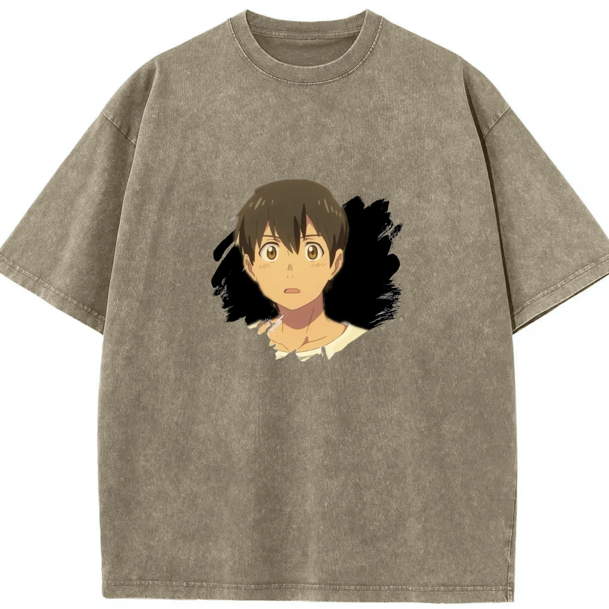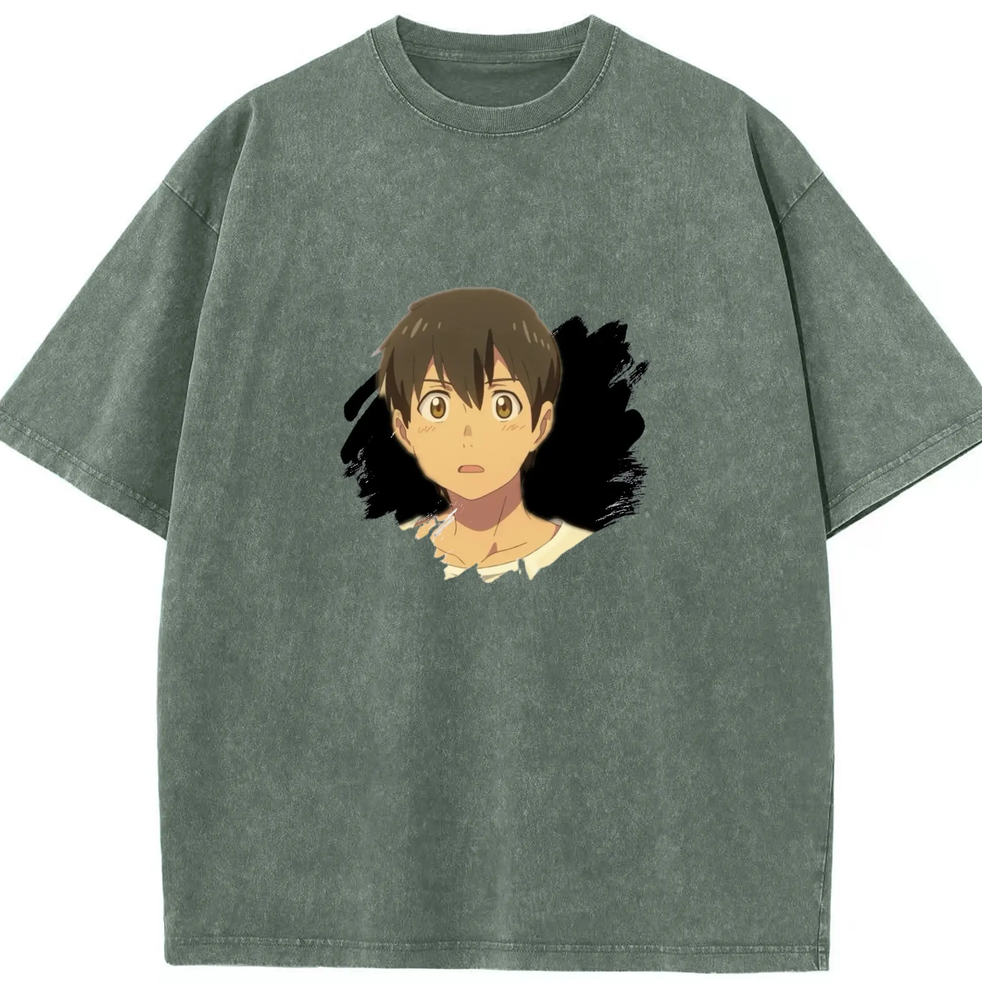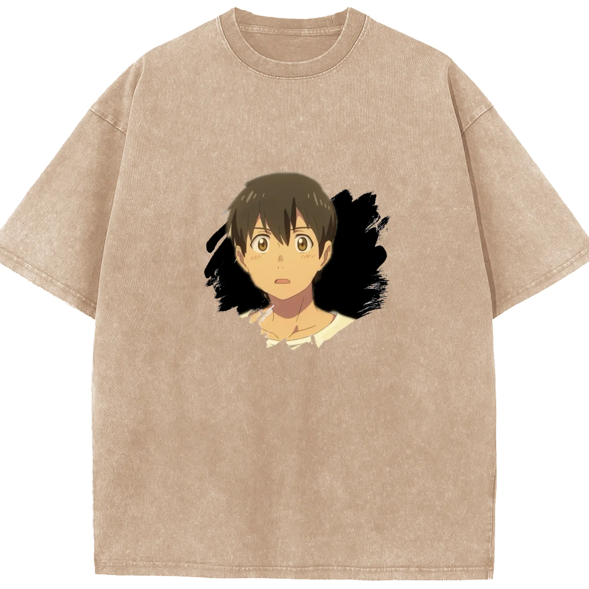 天気の子 森嶋帆高 - 綿100% 半袖Tシャツ ・ フロントプリント ・ 快適 通気性 ・ 日常使い 散歩 スポーツ用