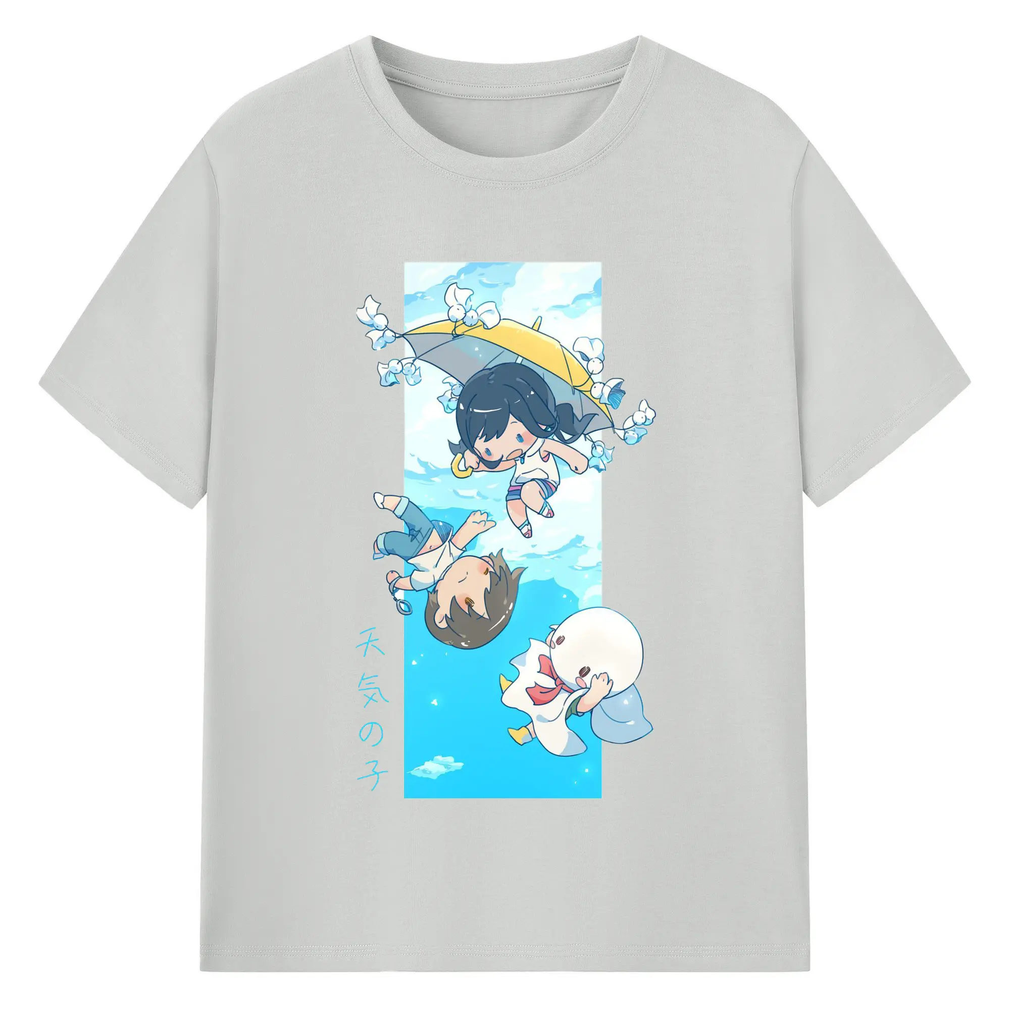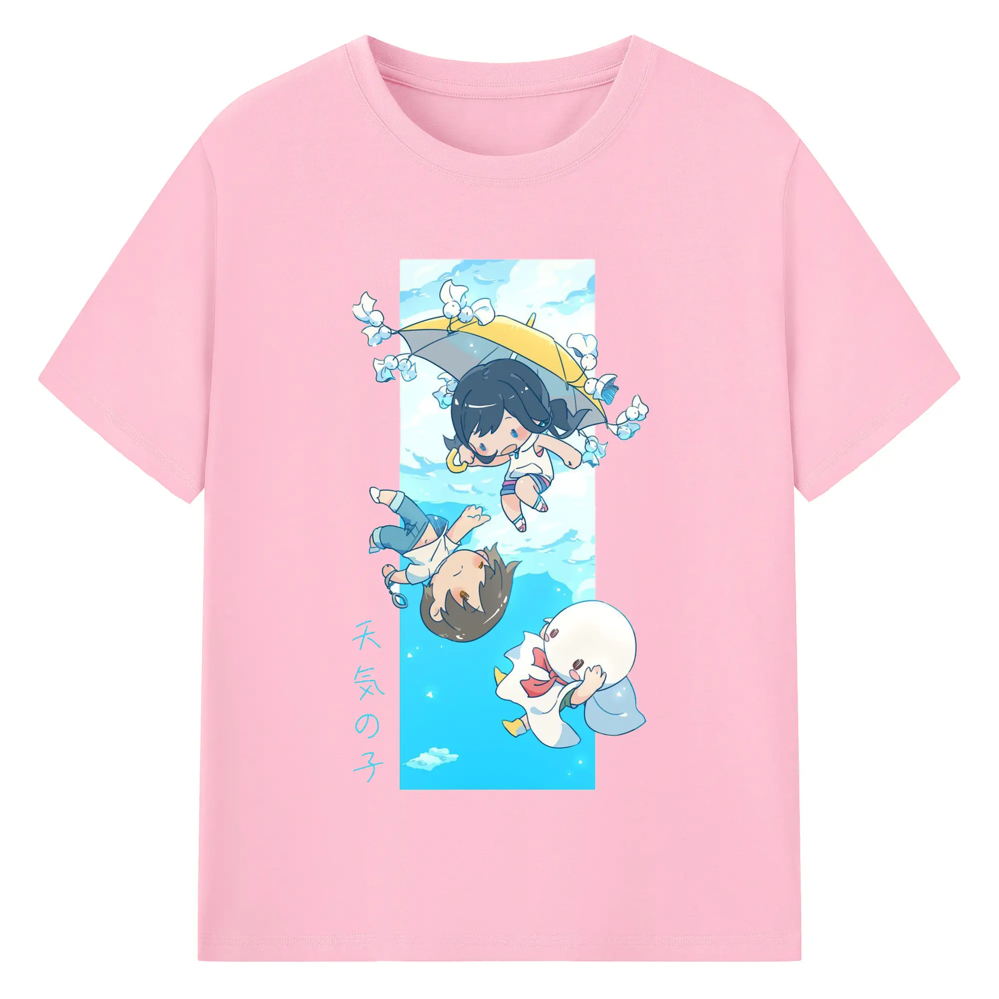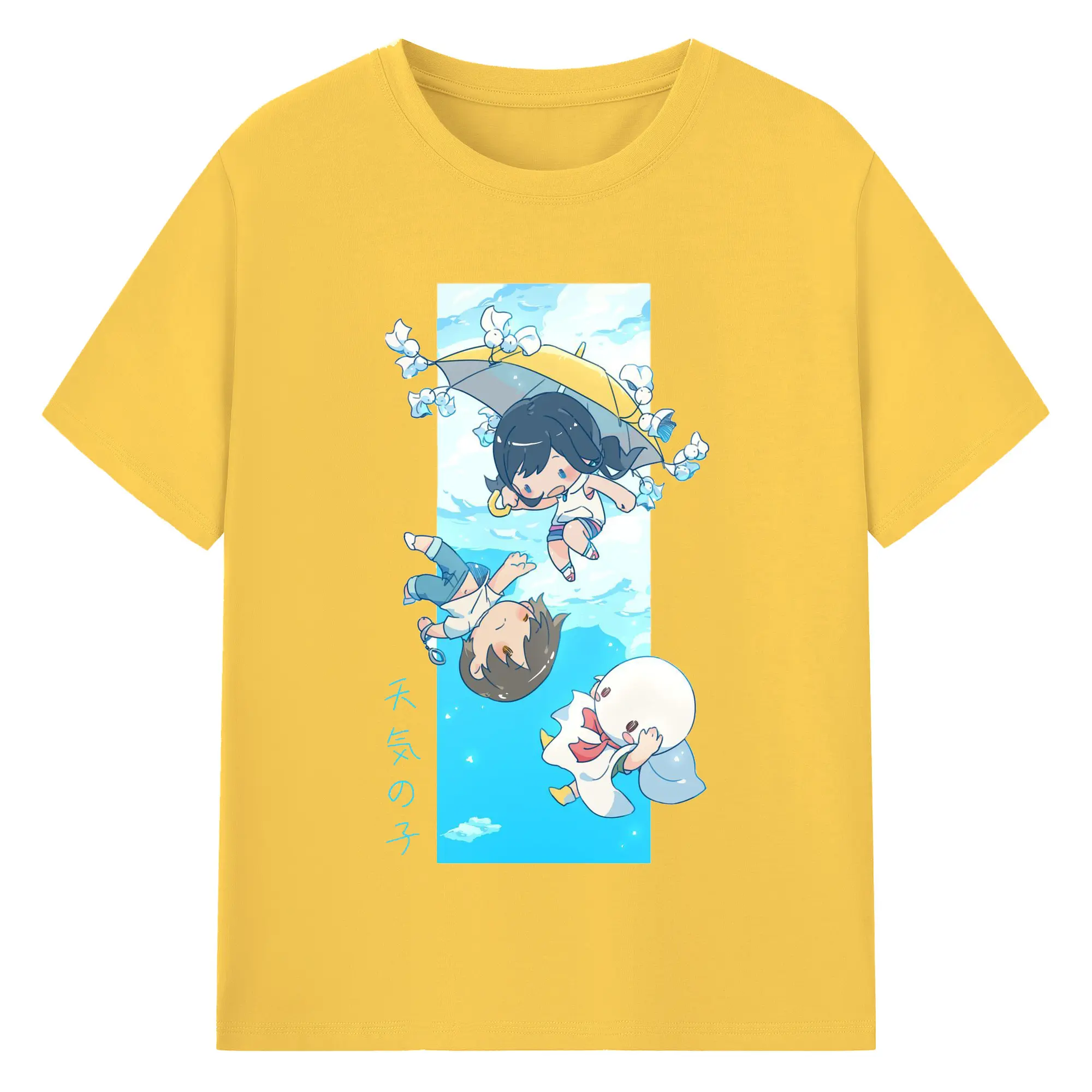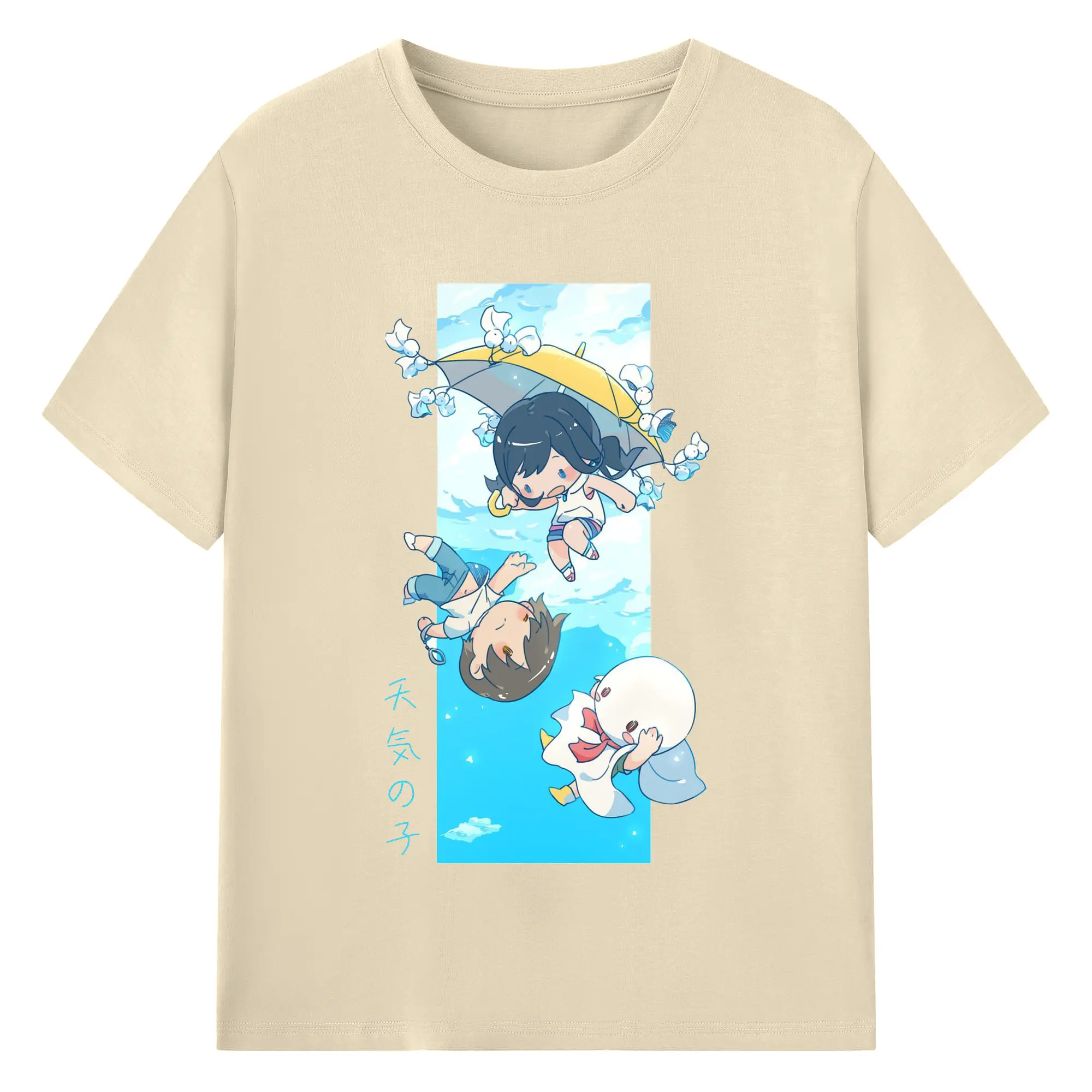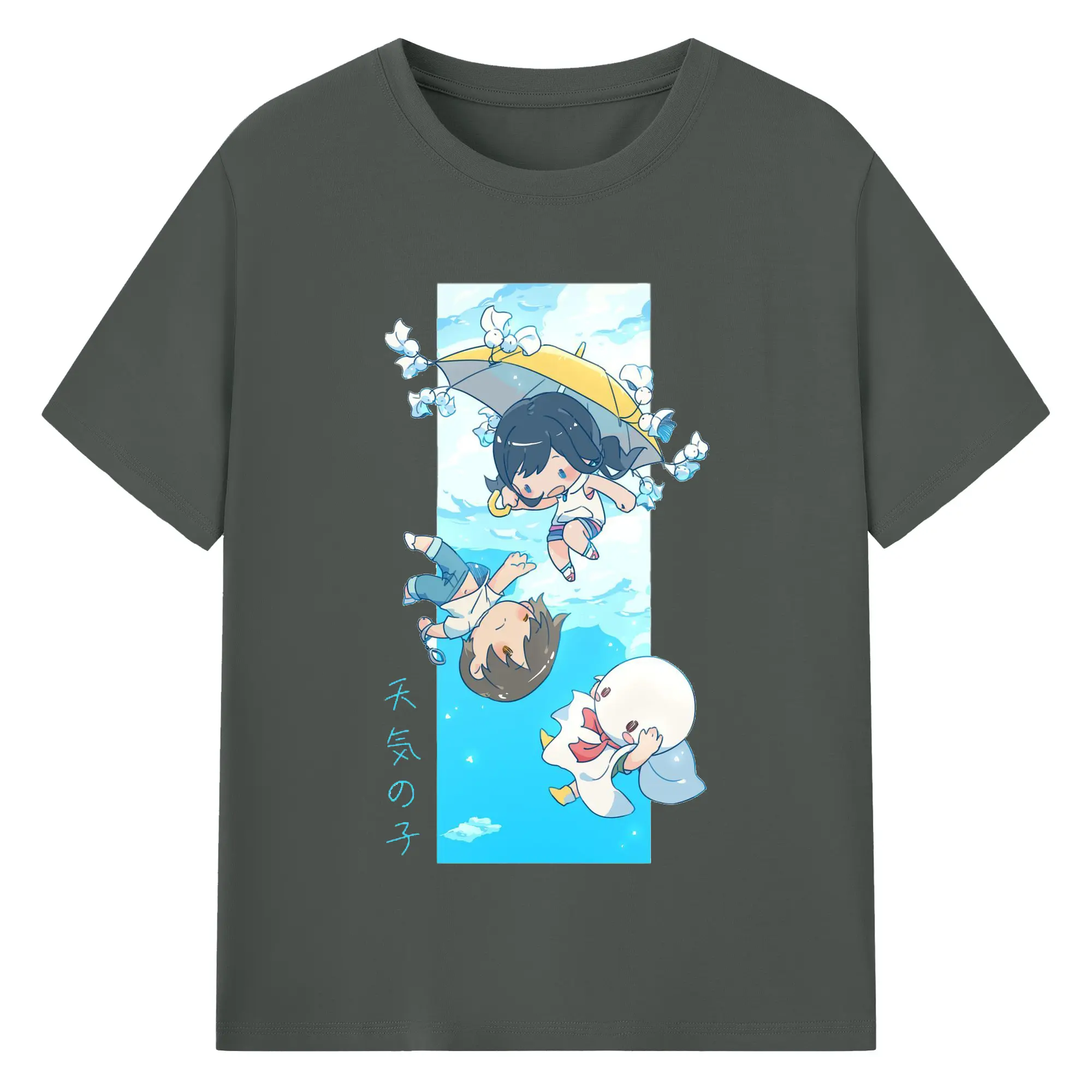 天気の子 WeatheringWithYou - 綿100% ヴィンテージ風 半袖Tシャツ ・ フロントプリント ・ 柔らか肌触り ・ 通気性 快適 ・ スポーツ カジュアル 外出用