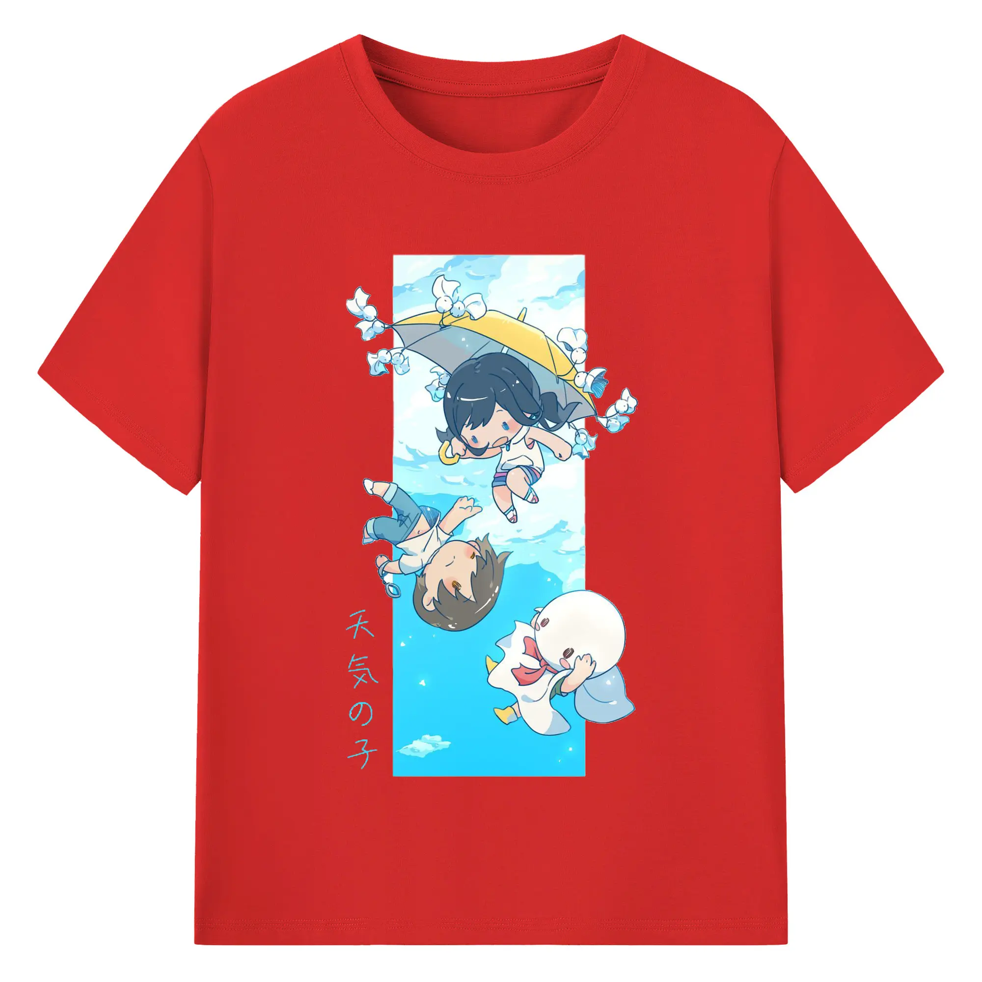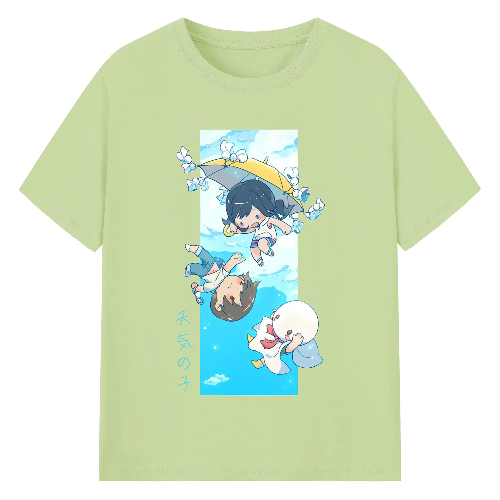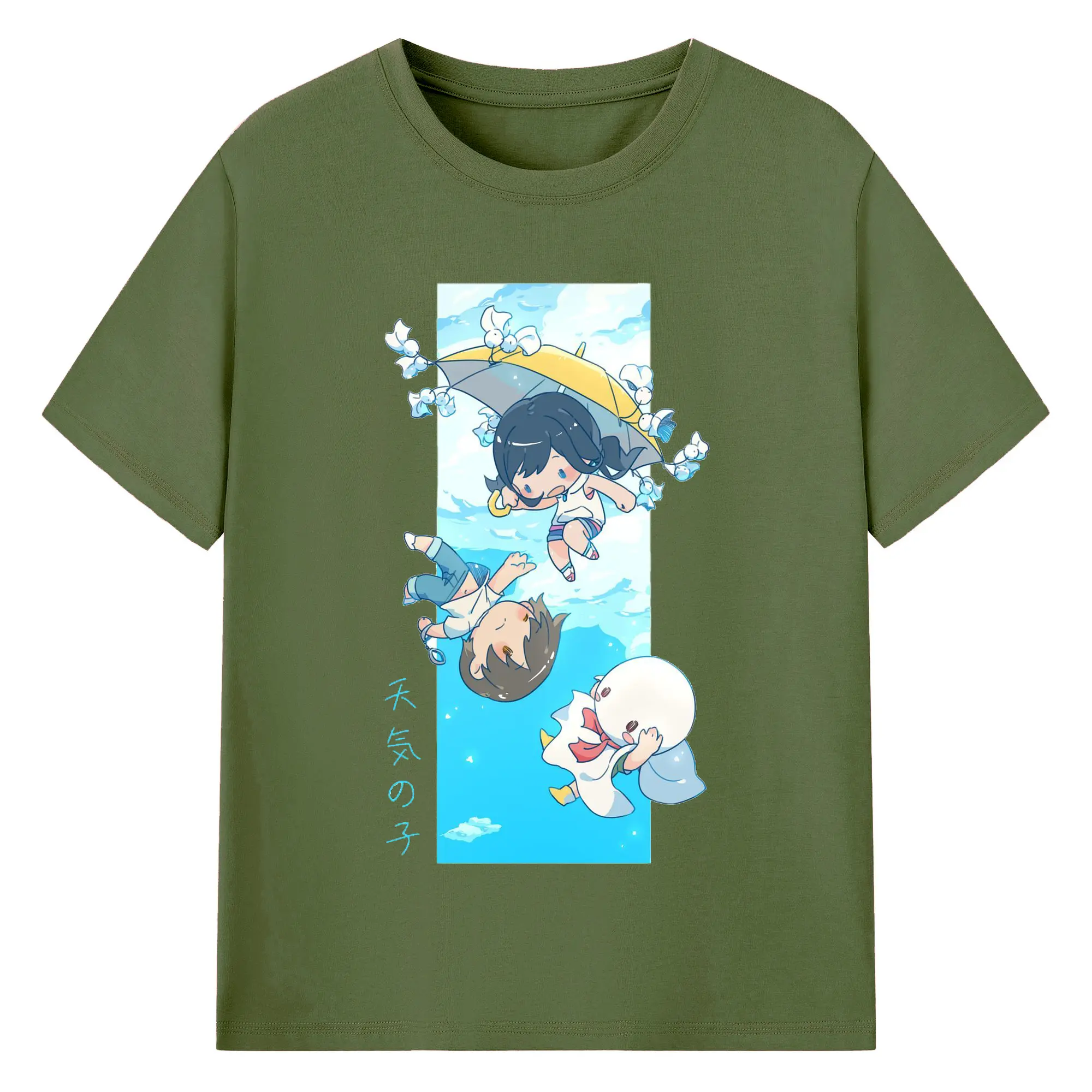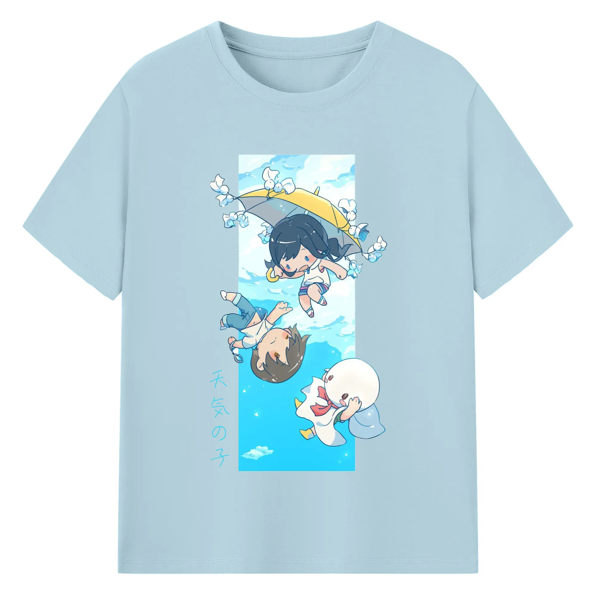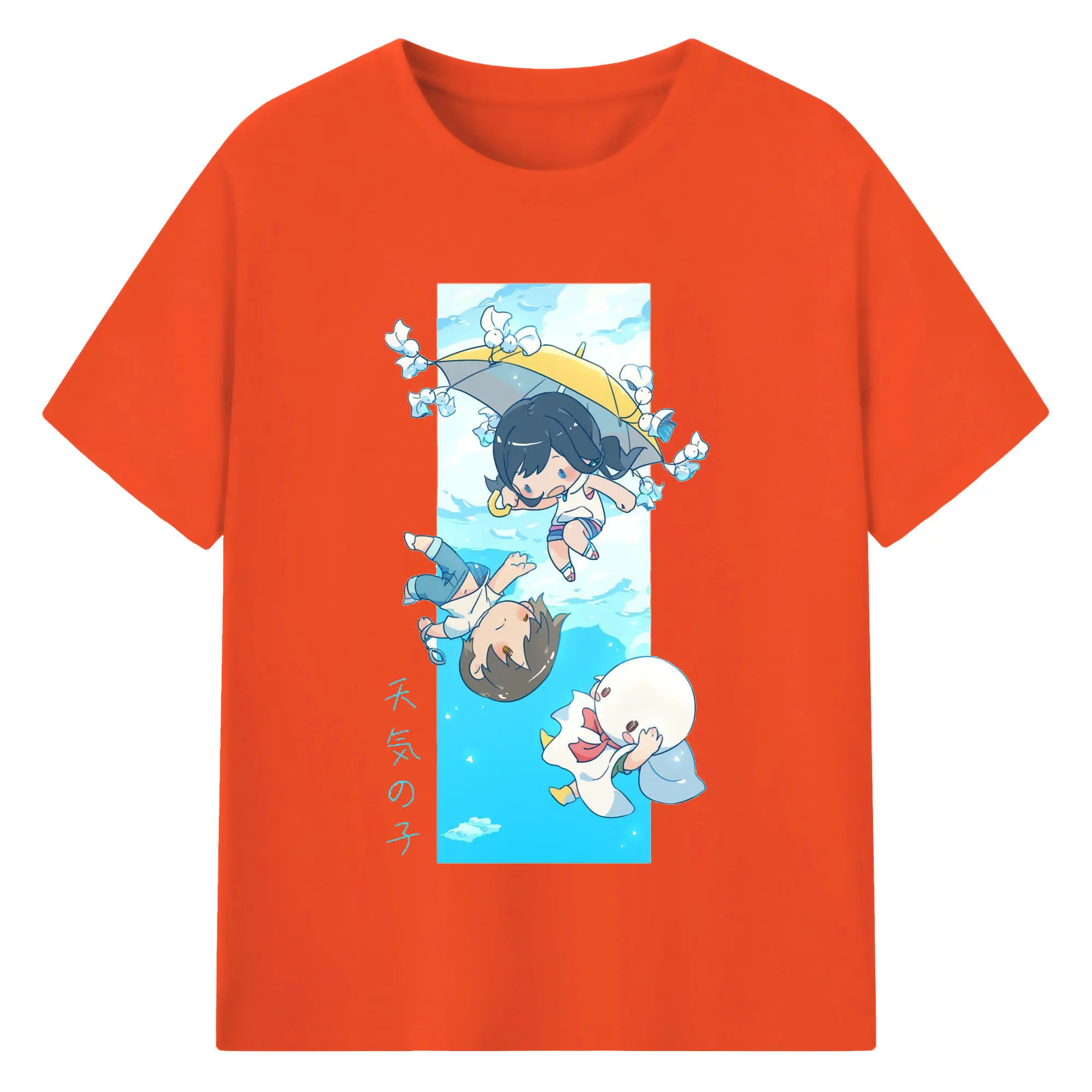 天気の子 WeatheringWithYou - 綿100% ヴィンテージ風 半袖Tシャツ ・ フロントプリント ・ 柔らか肌触り ・ 通気性 快適 ・ スポーツ カジュアル 外出用