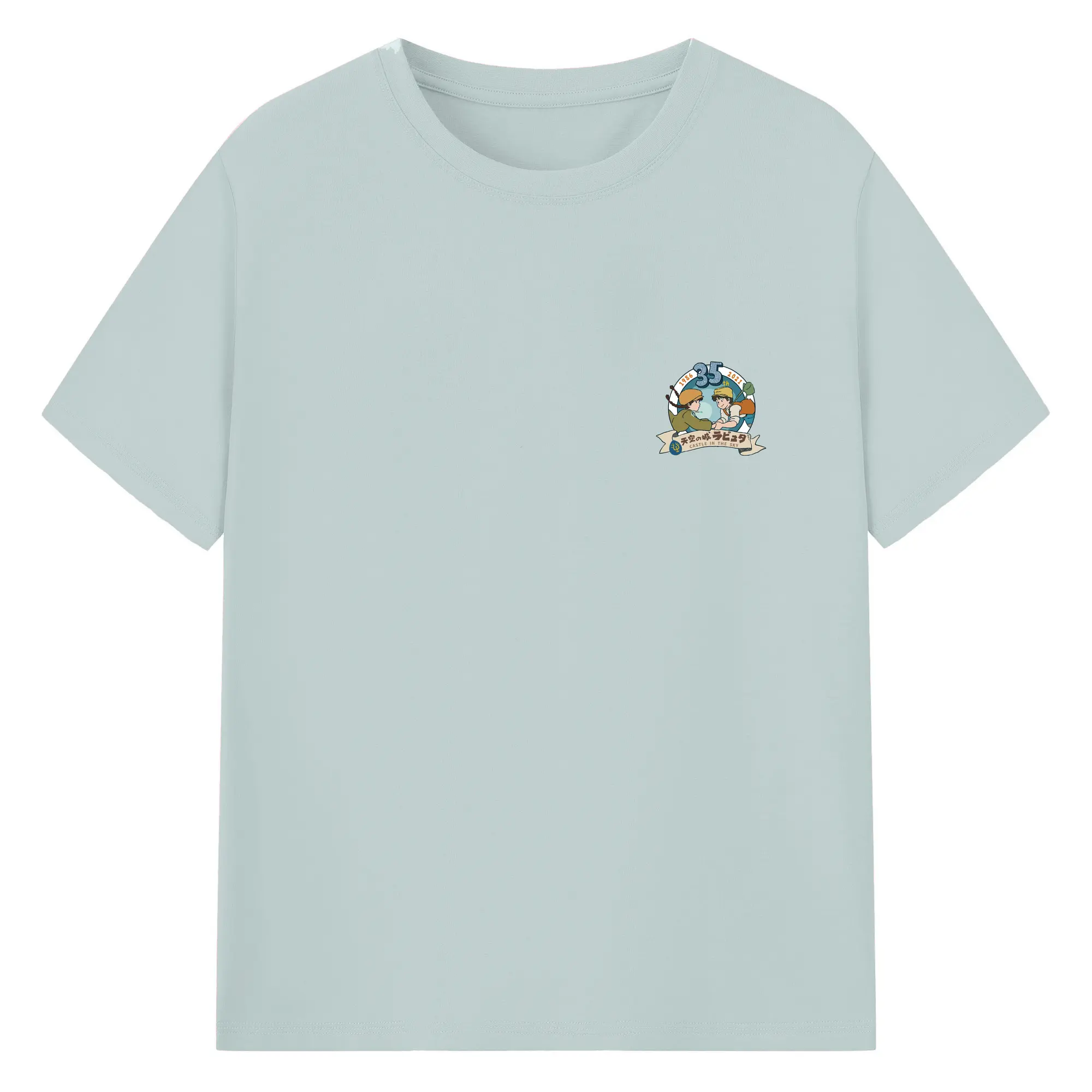 天空の城ラピュタ パズーシータ ラピュタ - 綿100% ヴィンテージ風 半袖Tシャツ ・ フロントプリント ・ 柔らか肌触り ・ 通気性 快適 ・ スポーツ カジュアル 外出用