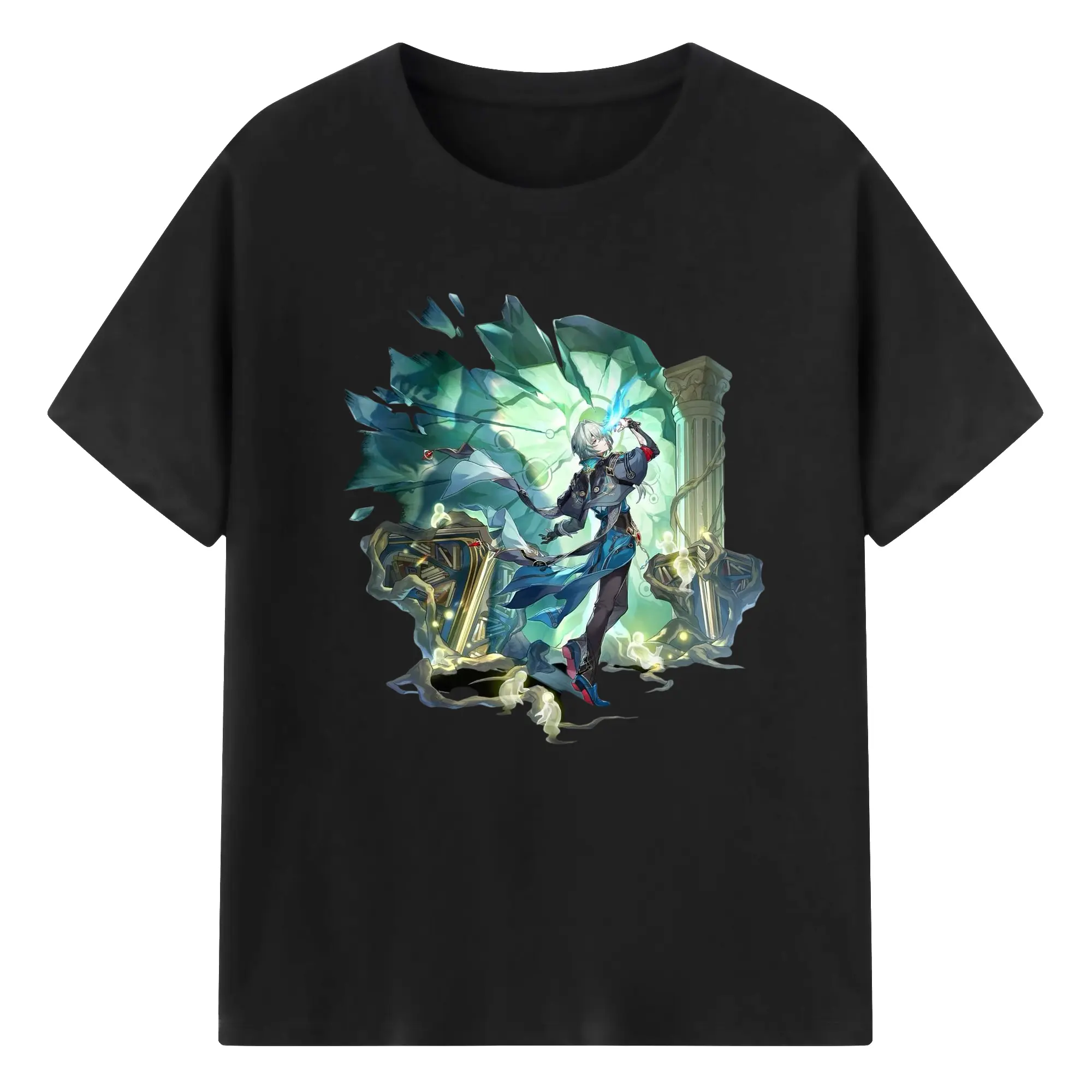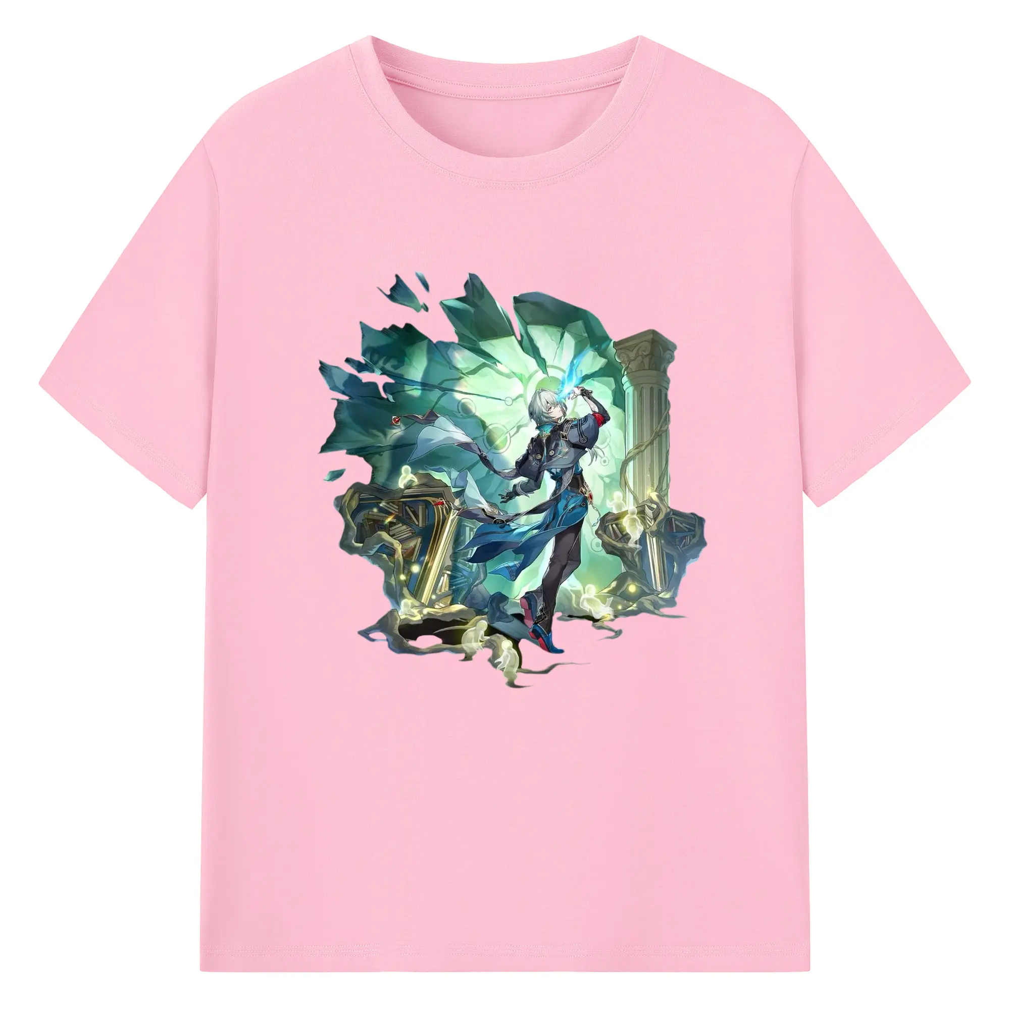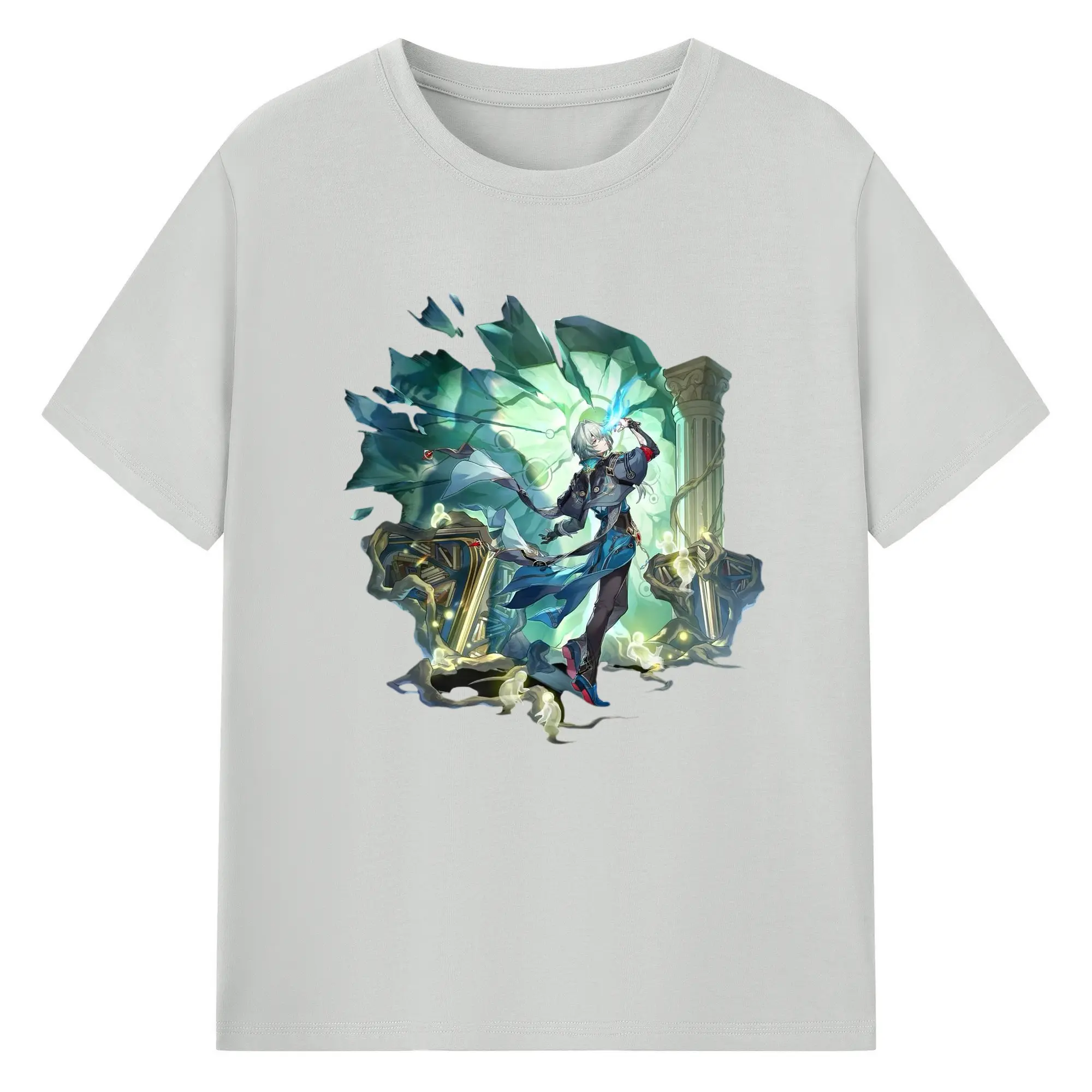Genshin フォンテーヌ 水神すいじんフォカロルス フリーナ - 綿100% 半袖Tシャツ ・ フロントプリント ・ 快適 通気性 ・ 日常使い 散歩 スポーツ用