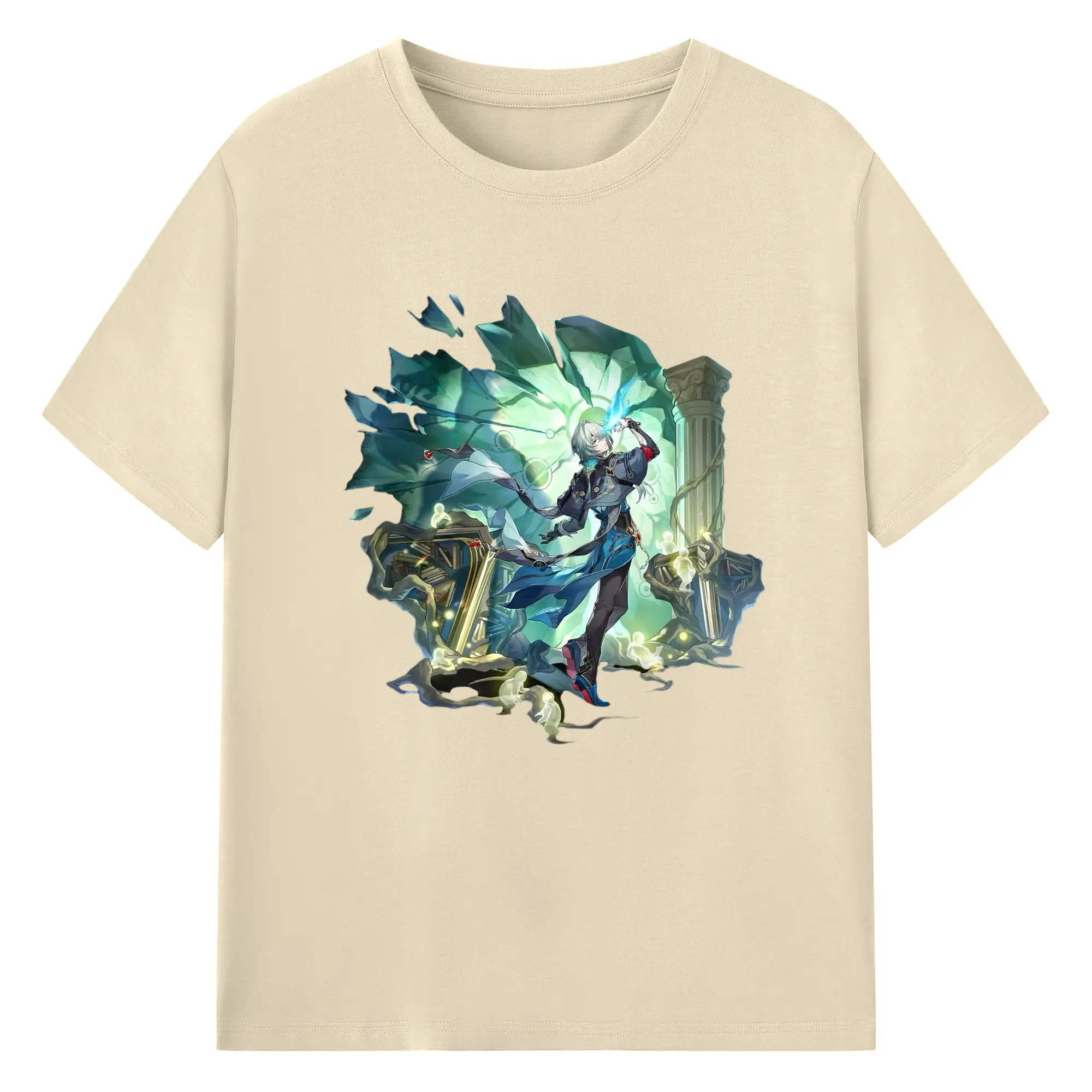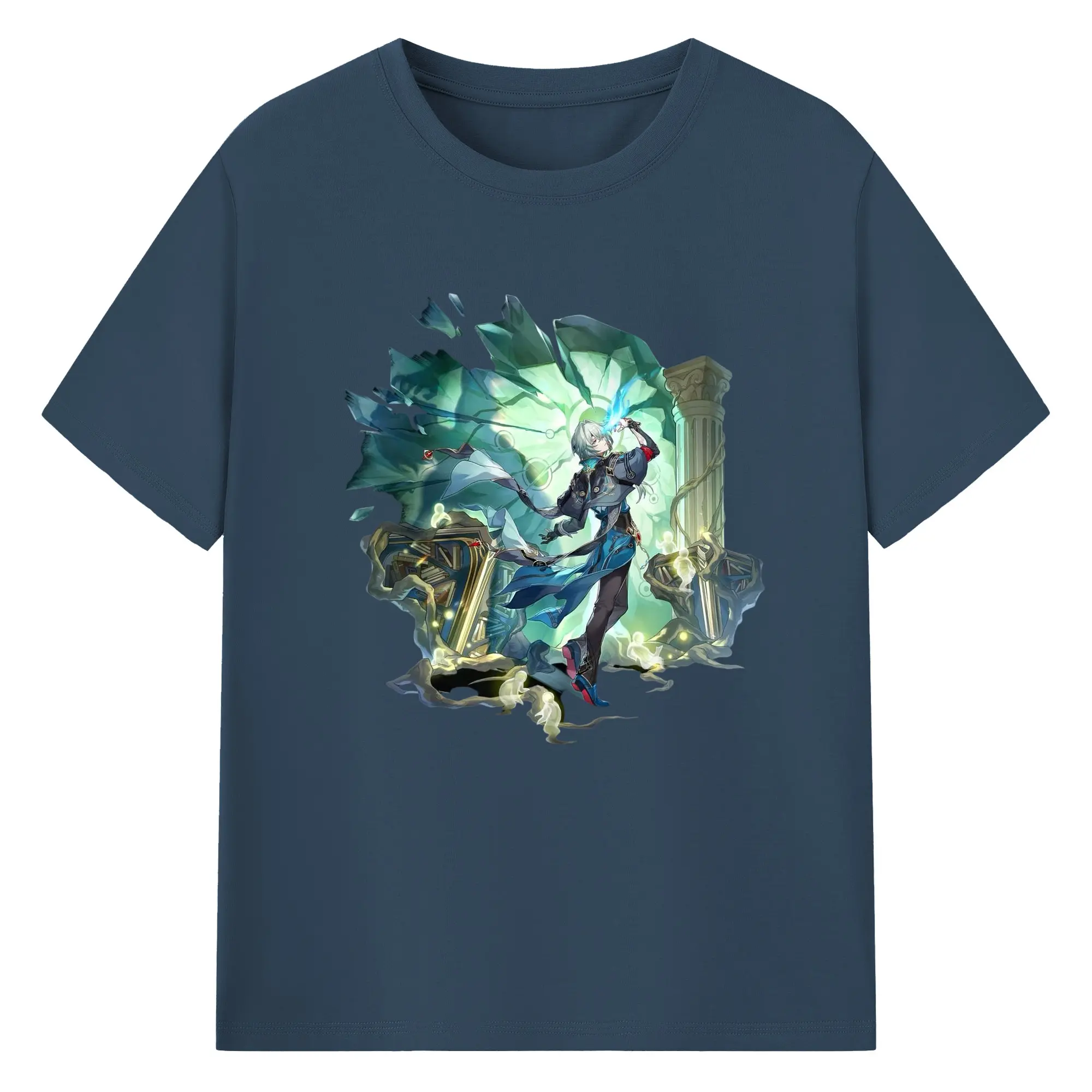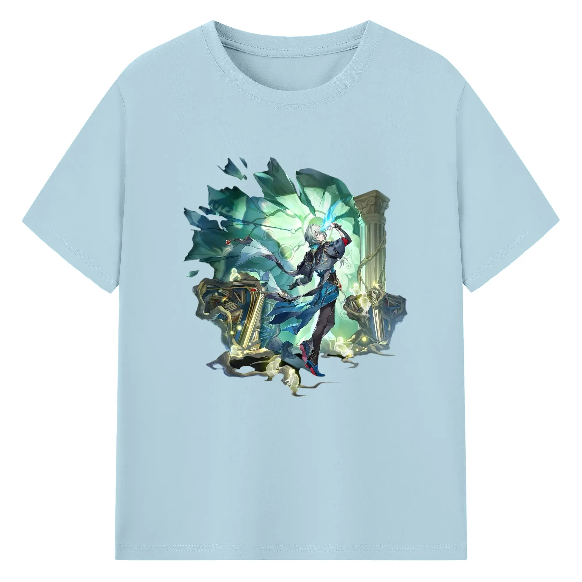 Genshin フォンテーヌ 水神すいじんフォカロルス フリーナ - 綿100% 半袖Tシャツ ・ フロントプリント ・ 快適 通気性 ・ 日常使い 散歩 スポーツ用