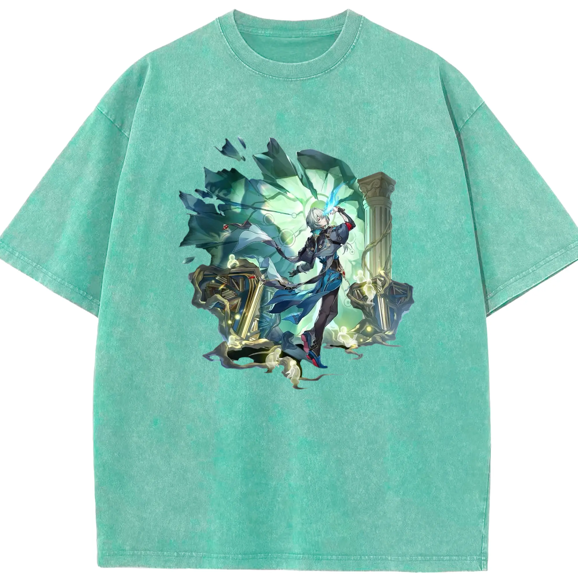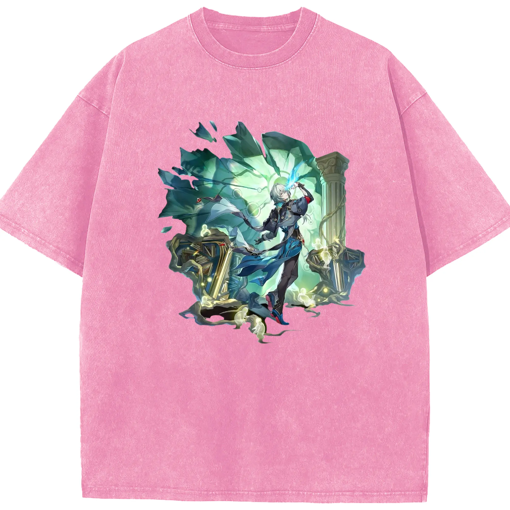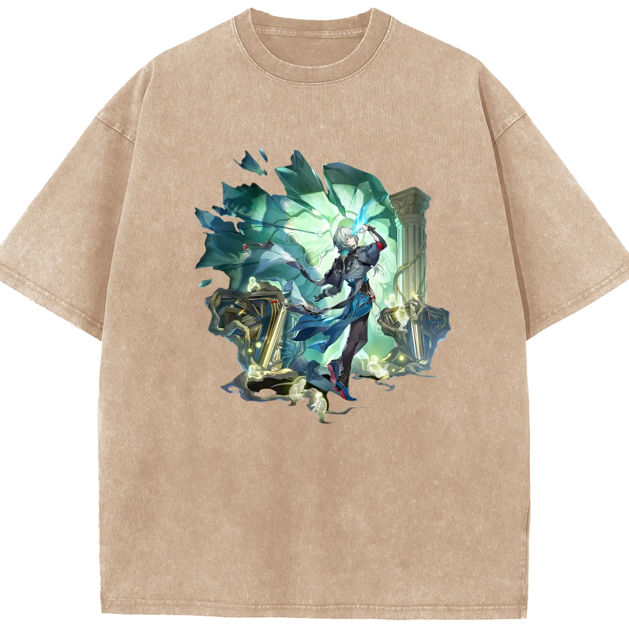 崩壊 星核ハンター カフカ - 綿100% ヴィンテージ風 半袖Tシャツ ・ フロントプリント ・ 柔らか肌触り ・ 通気性 快適 ・ スポーツ カジュアル 外出用
