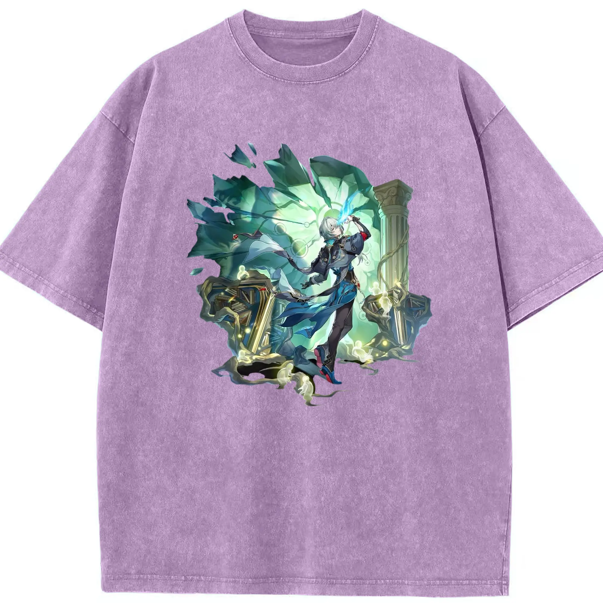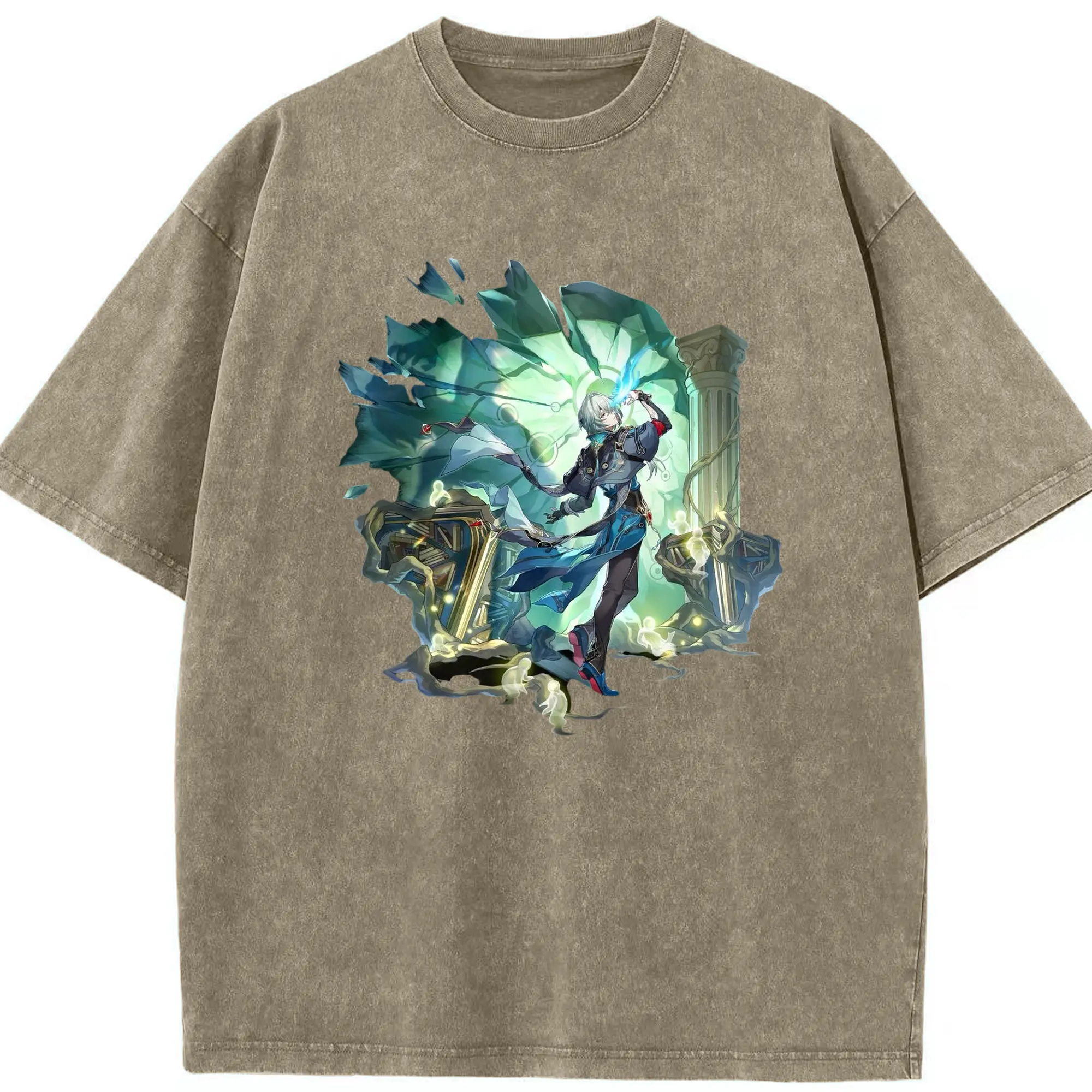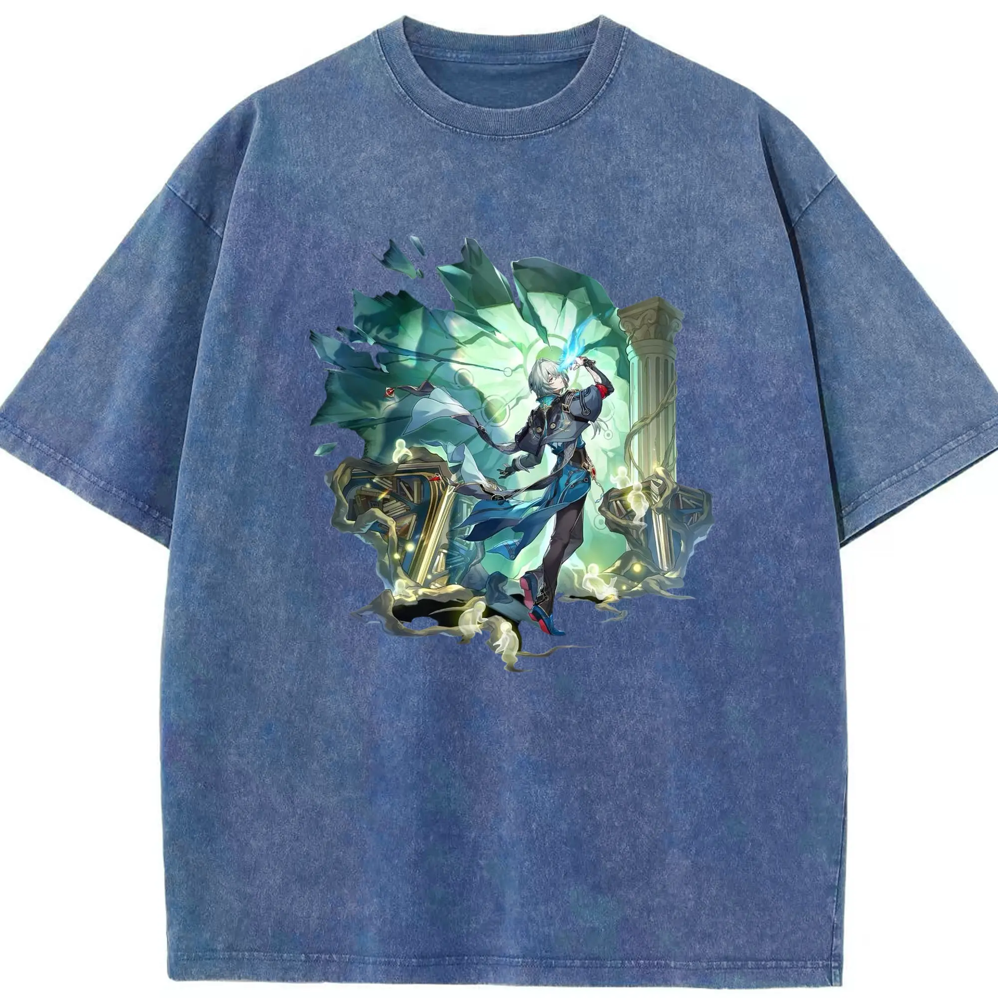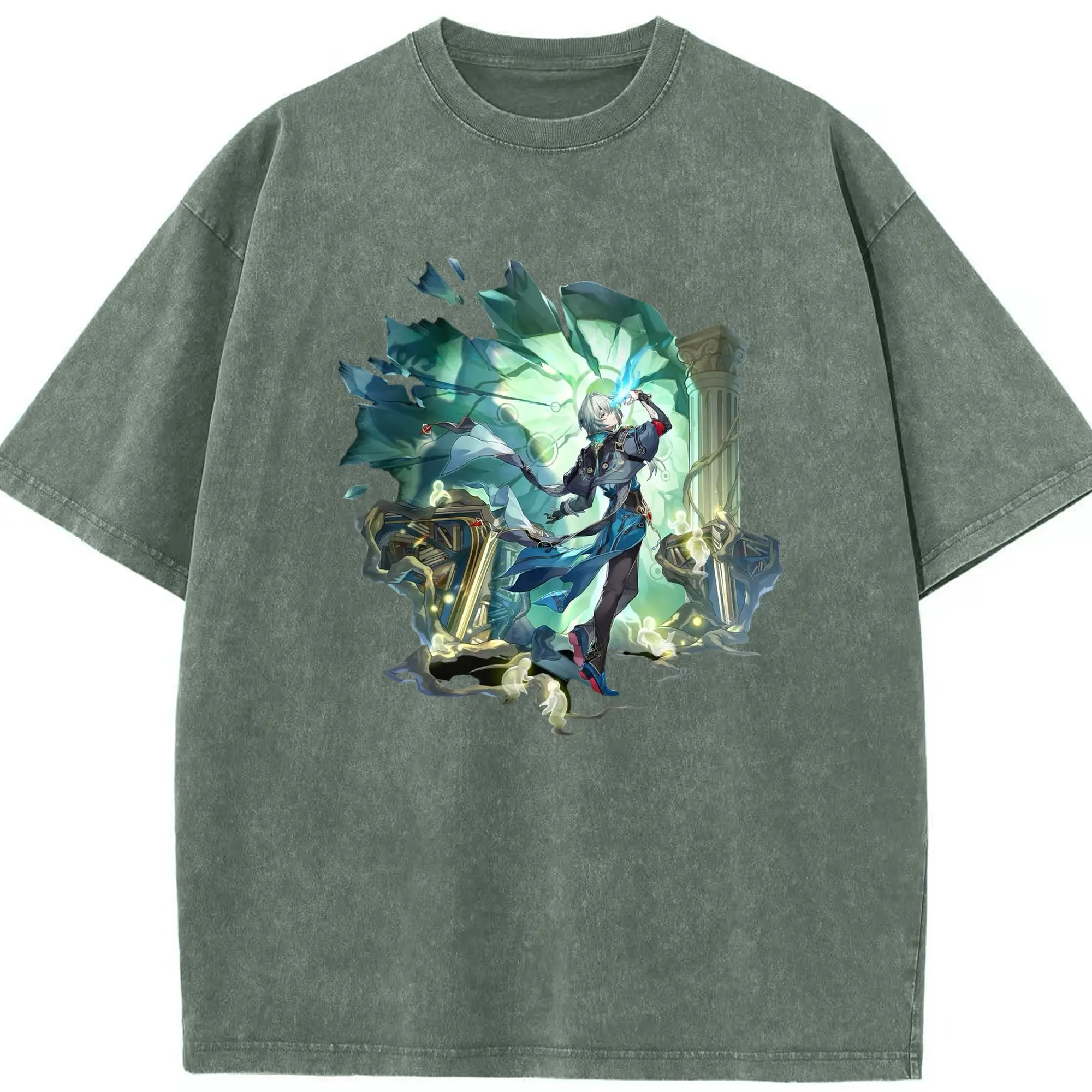 崩壊 星核ハンター カフカ - 綿100% ヴィンテージ風 半袖Tシャツ ・ フロントプリント ・ 柔らか肌触り ・ 通気性 快適 ・ スポーツ カジュアル 外出用