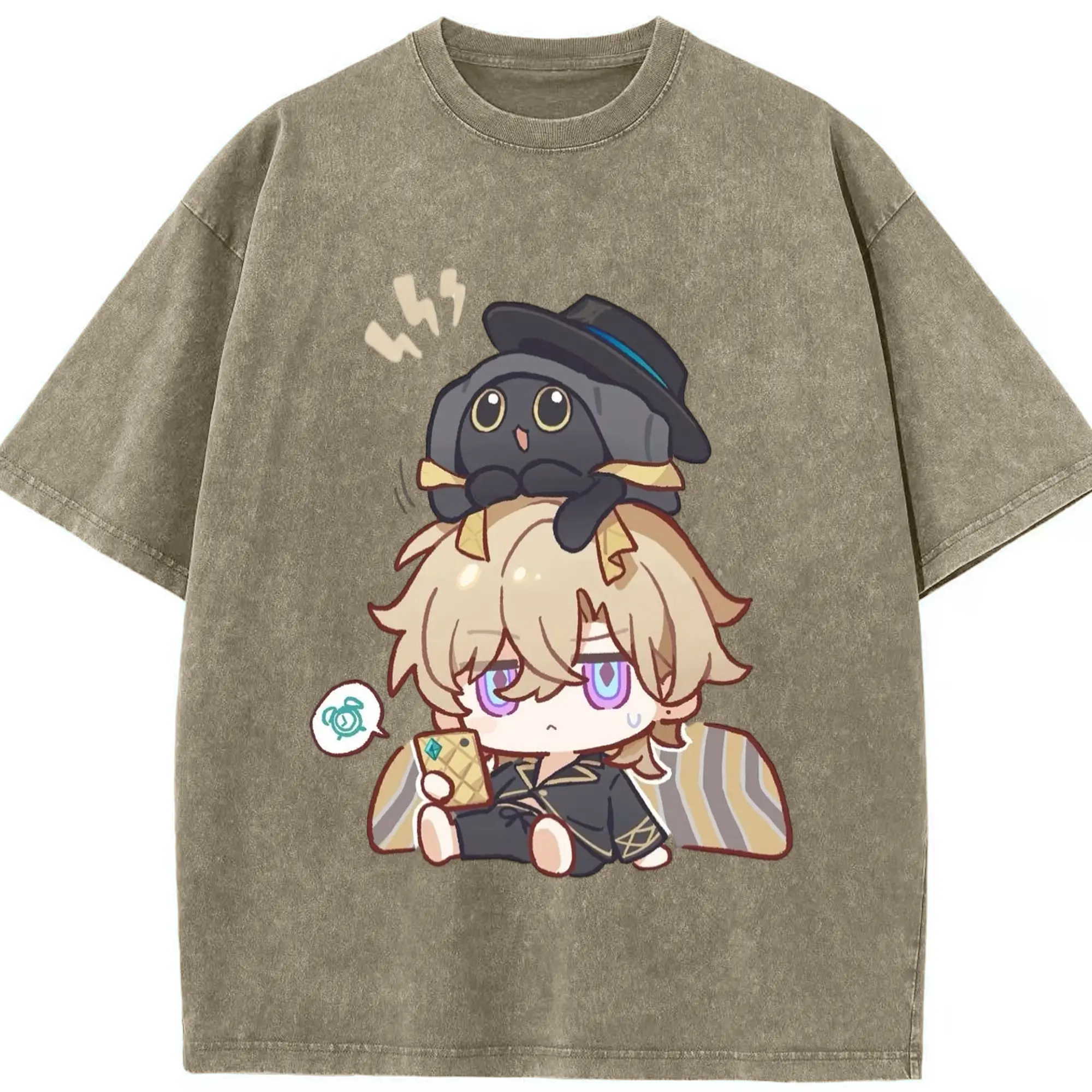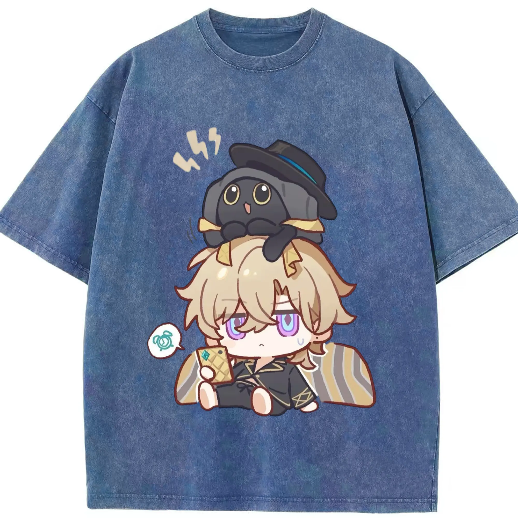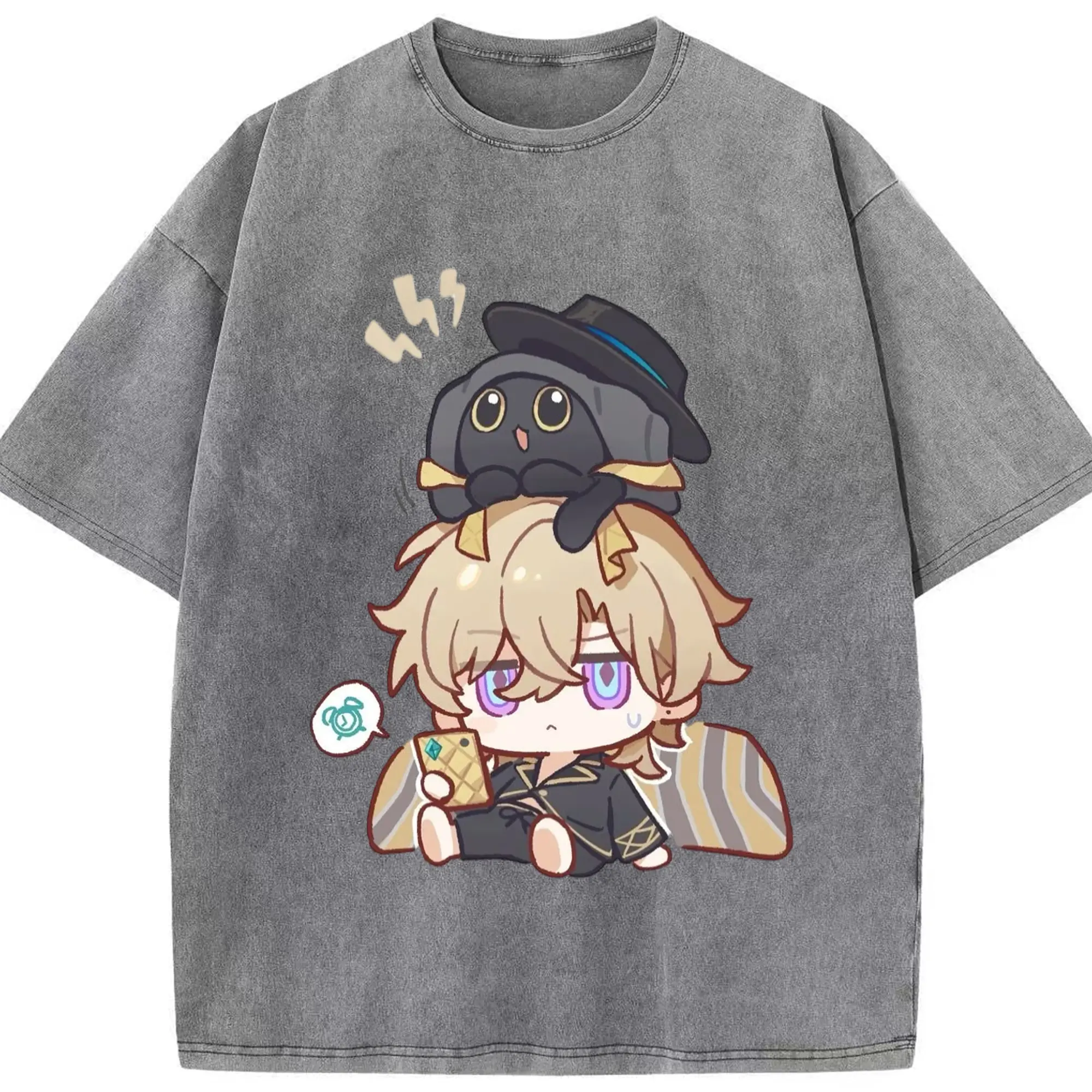 Genshin クレーちゃん - 綿100% ヴィンテージ風 半袖Tシャツ ・ フロントプリント ・ 柔らか肌触り ・ 通気性 快適 ・ スポーツ カジュアル 外出用