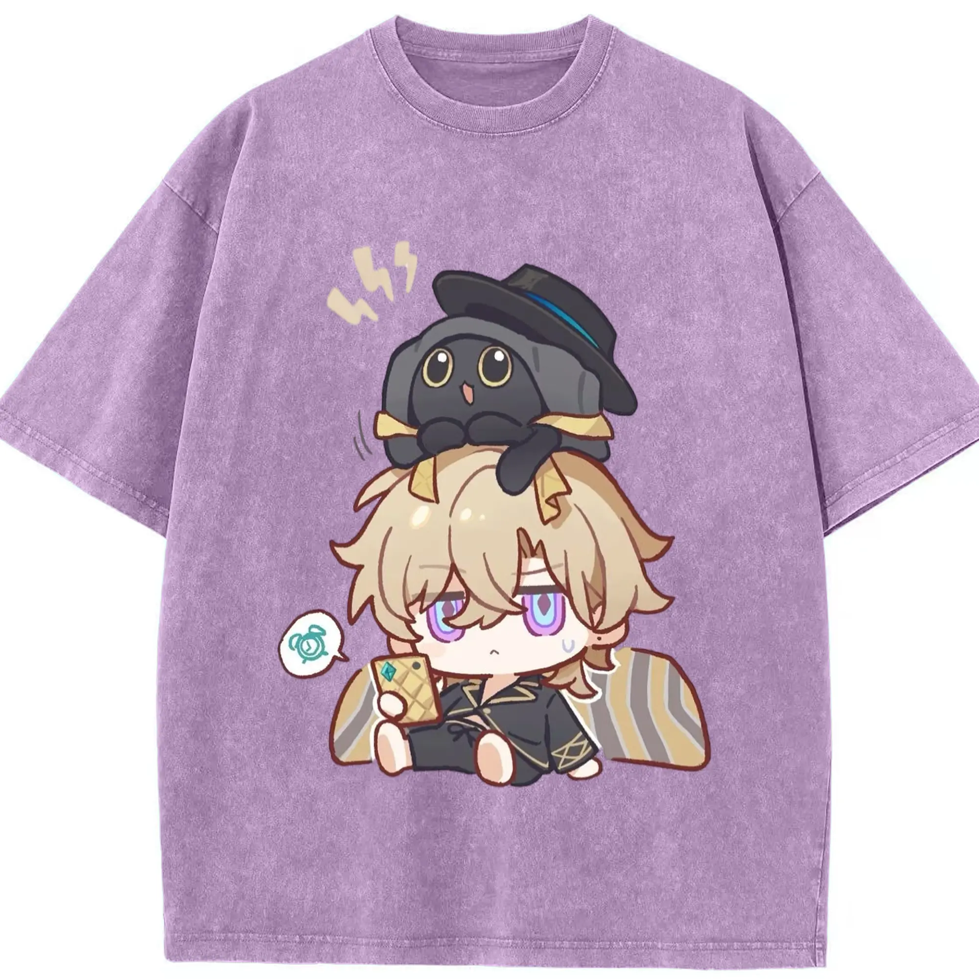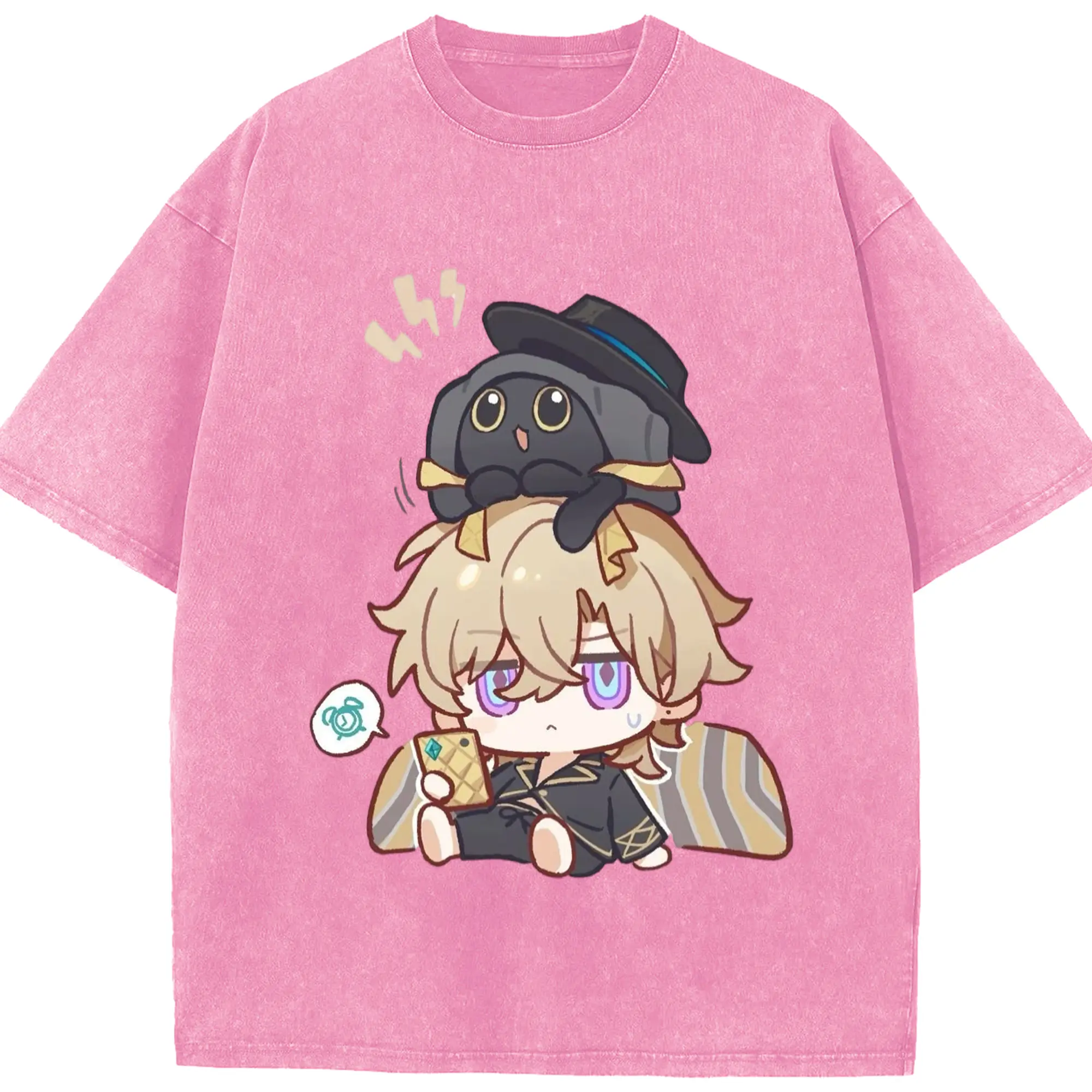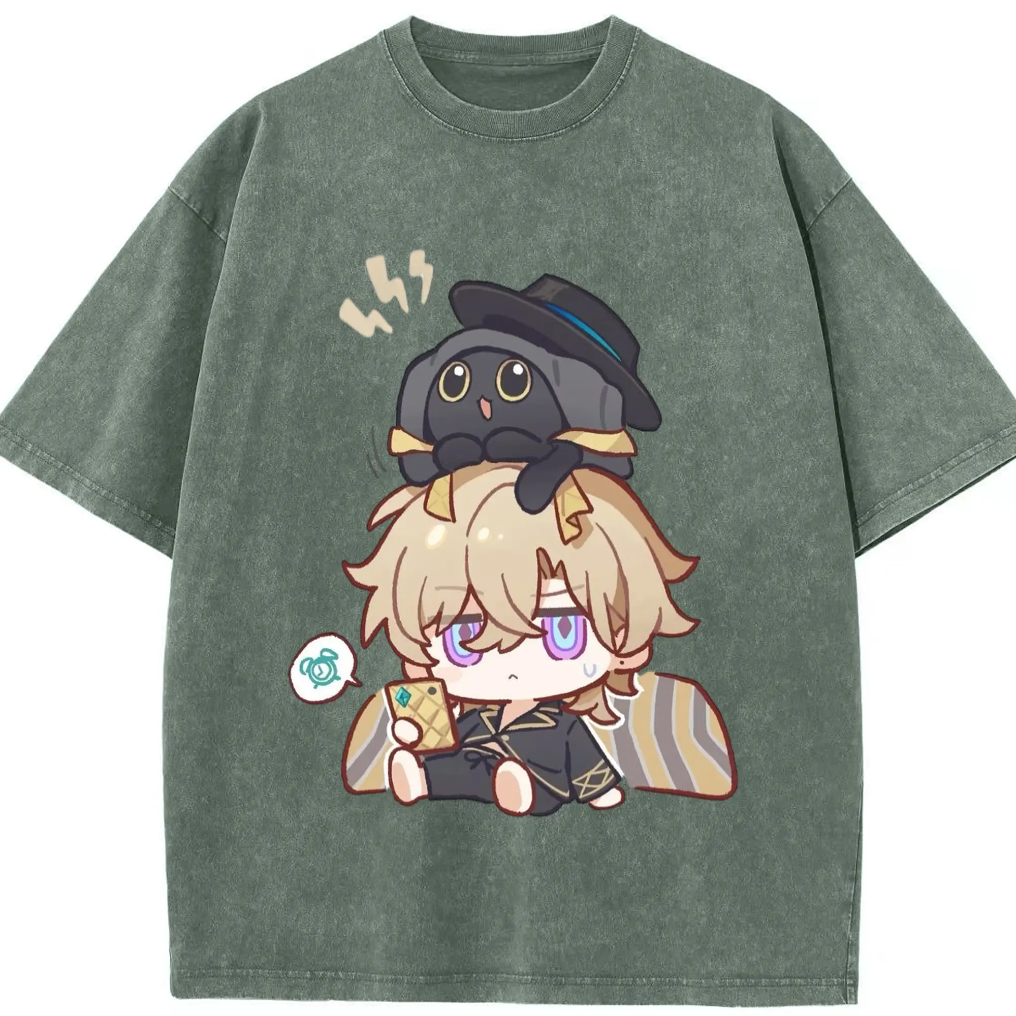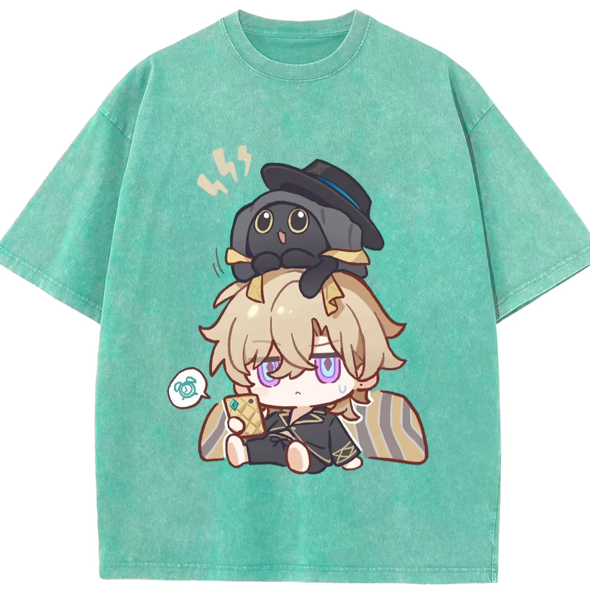Genshin クレーちゃん - 綿100% ヴィンテージ風 半袖Tシャツ ・ フロントプリント ・ 柔らか肌触り ・ 通気性 快適 ・ スポーツ カジュアル 外出用