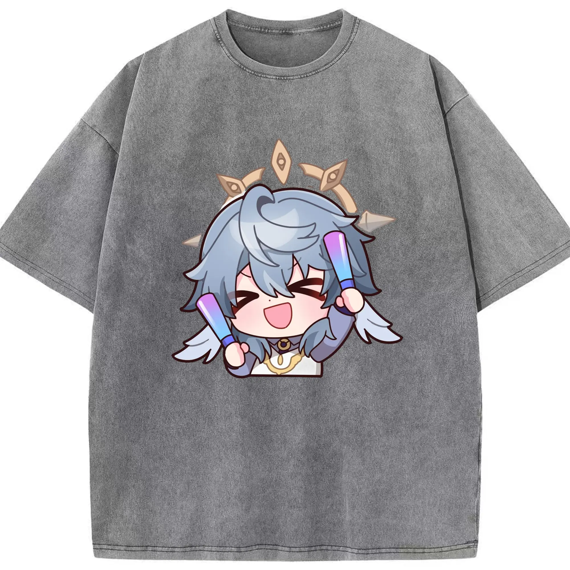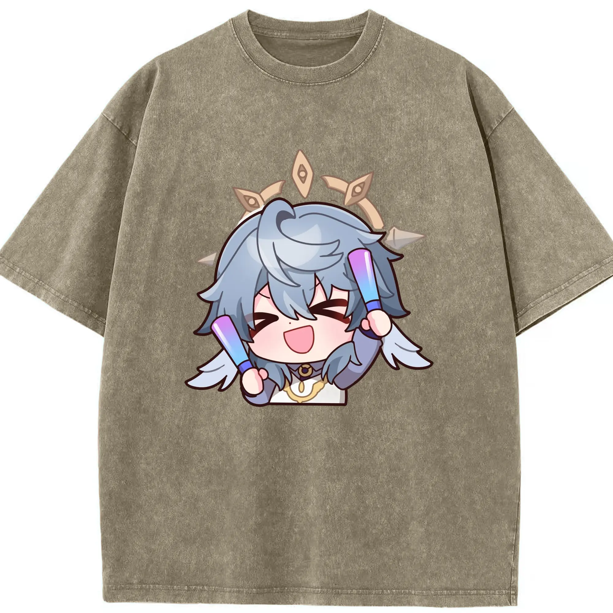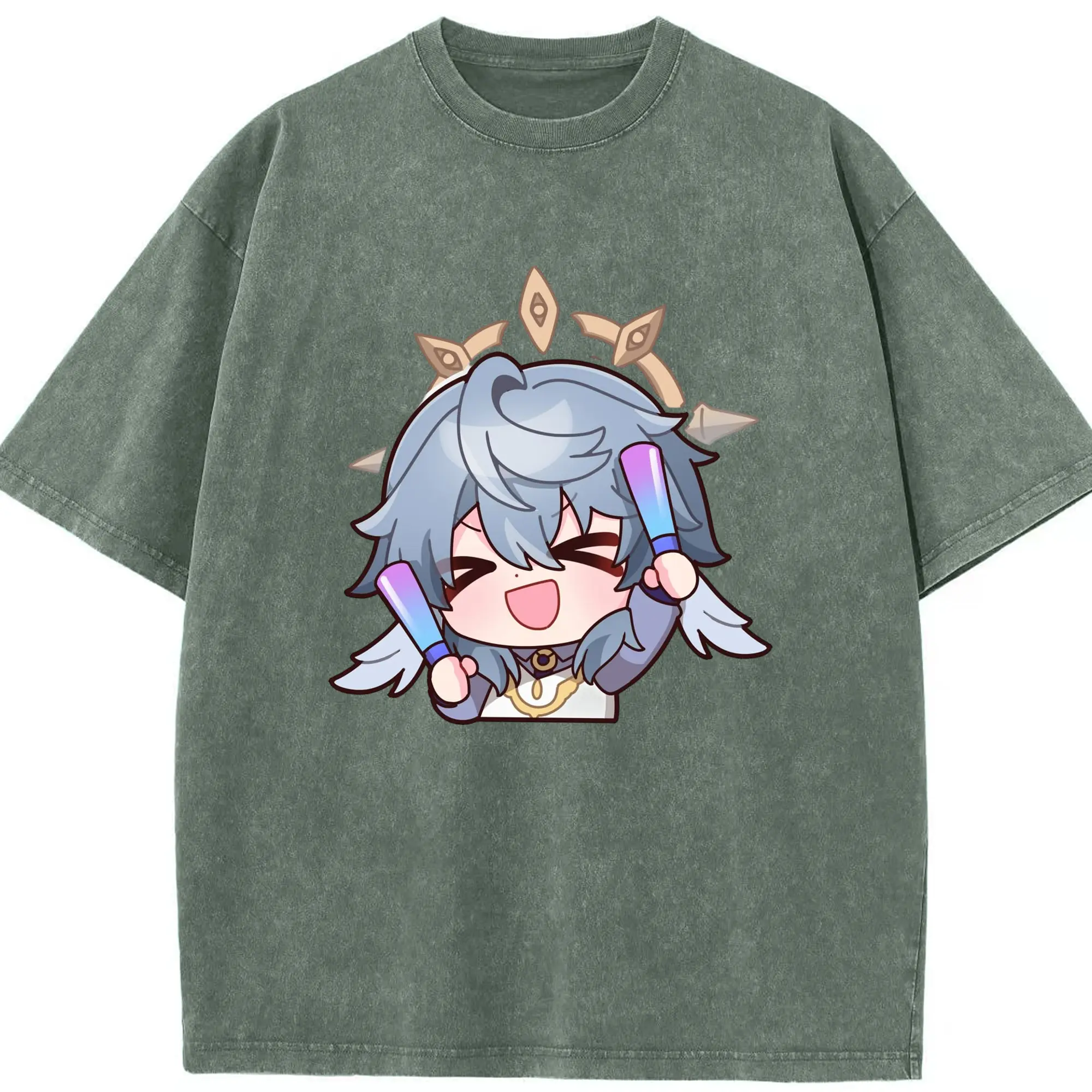 Genshin スメール 草神そうしん ナヒーダ - 綿100% ヴィンテージ風 半袖Tシャツ ・ フロントプリント ・ 柔らか肌触り ・ 通気性 快適 ・ スポーツ カジュアル 外出用