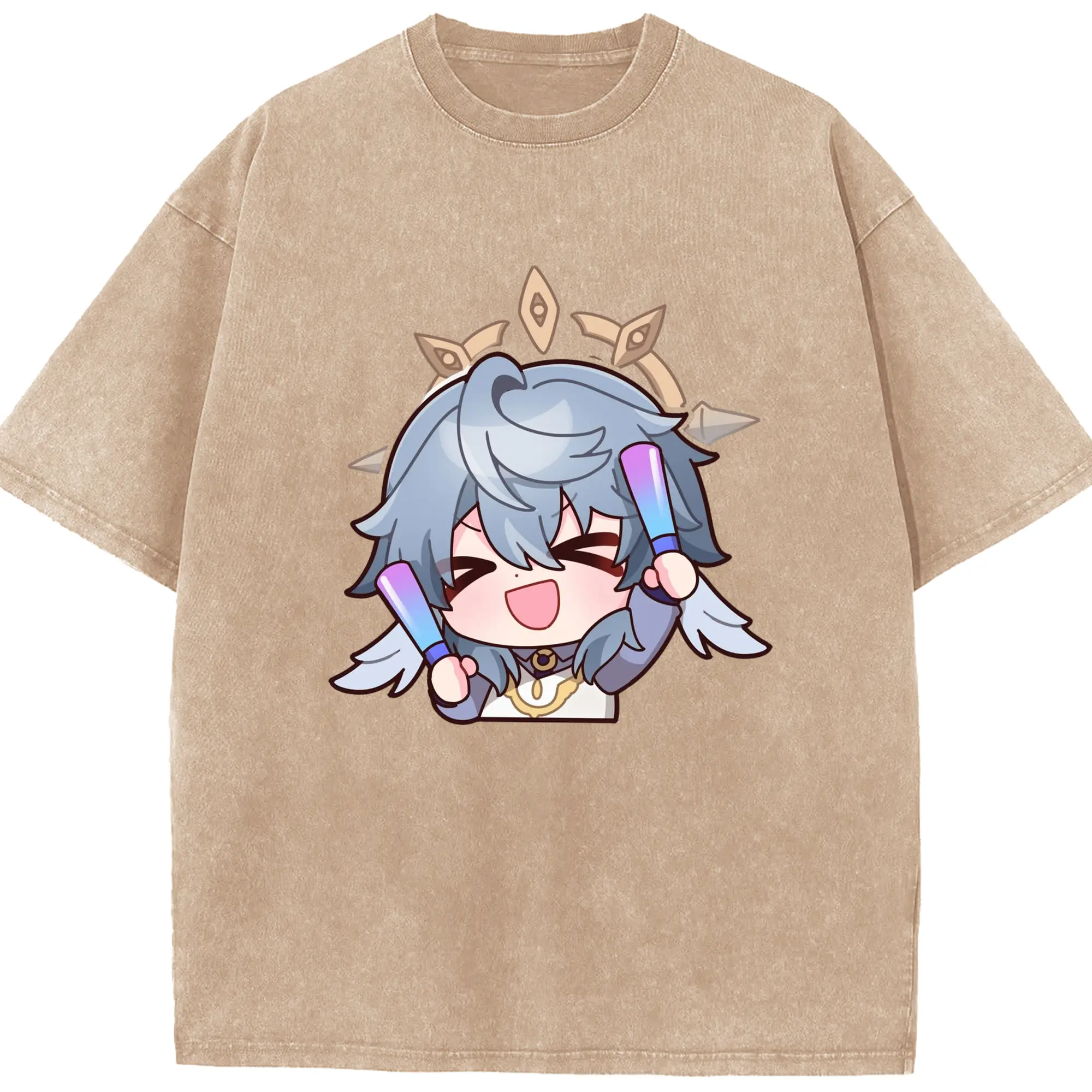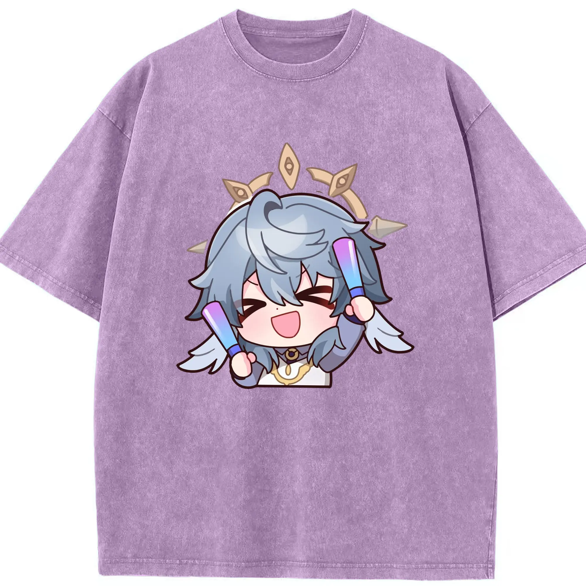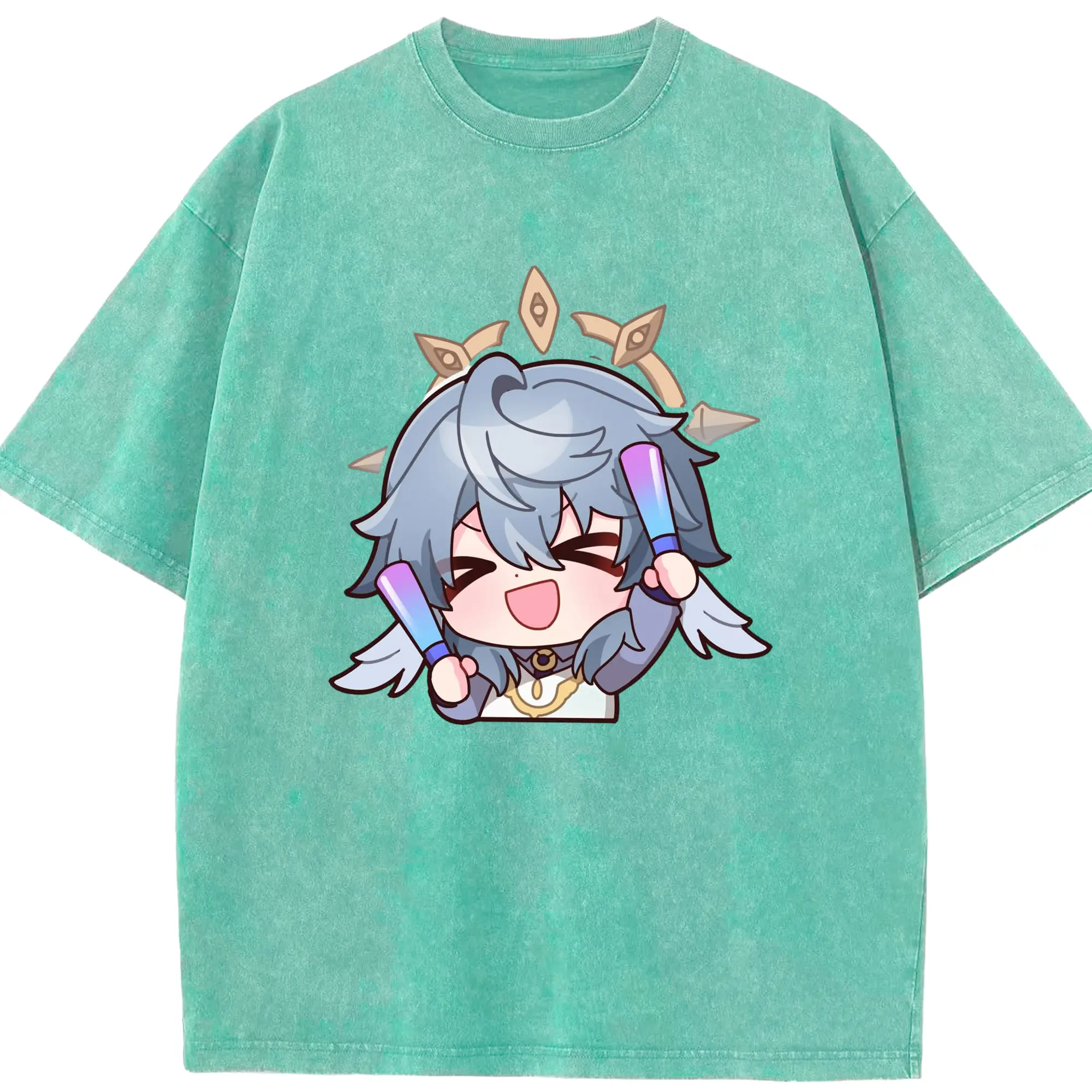 Genshin スメール 草神そうしん ナヒーダ - 綿100% ヴィンテージ風 半袖Tシャツ ・ フロントプリント ・ 柔らか肌触り ・ 通気性 快適 ・ スポーツ カジュアル 外出用