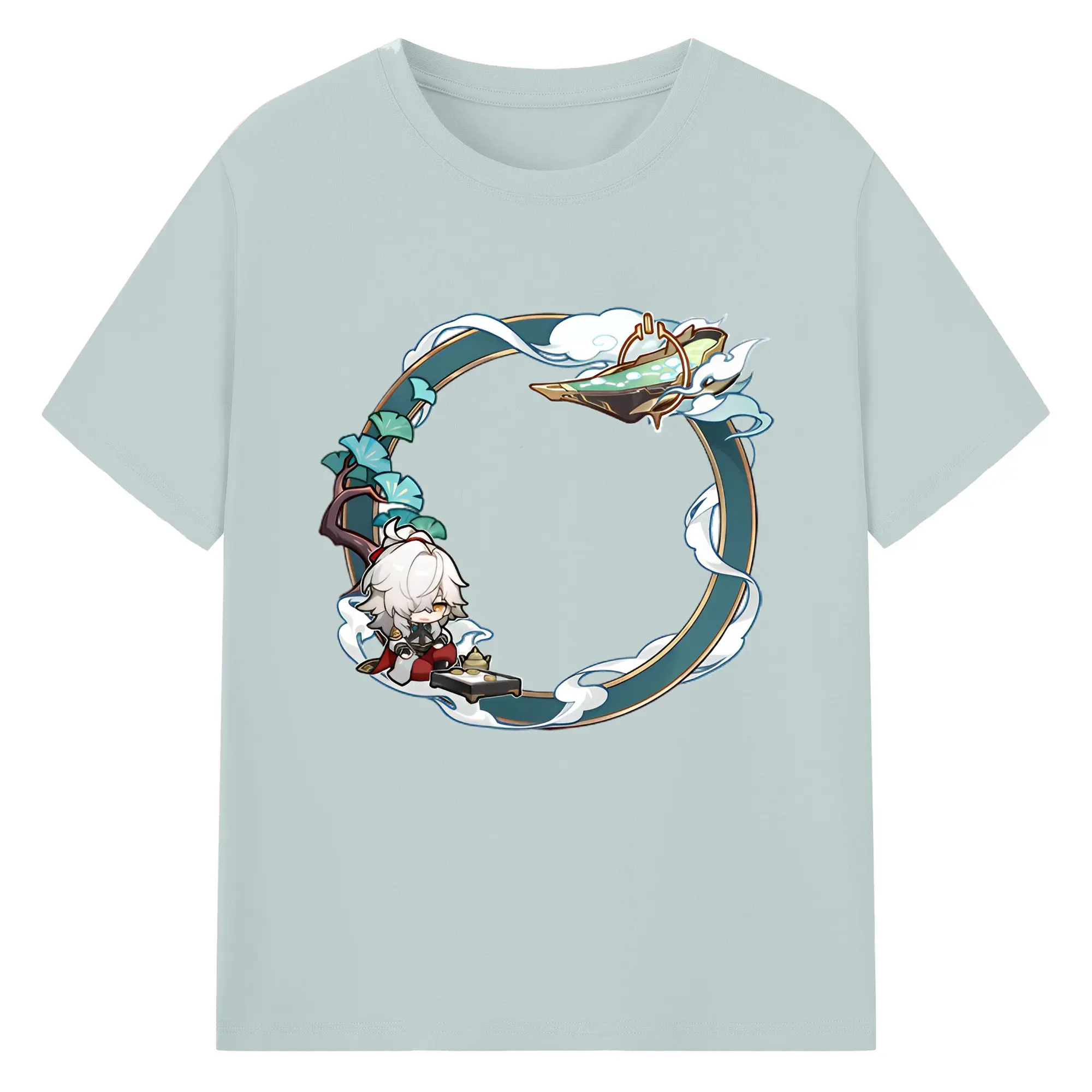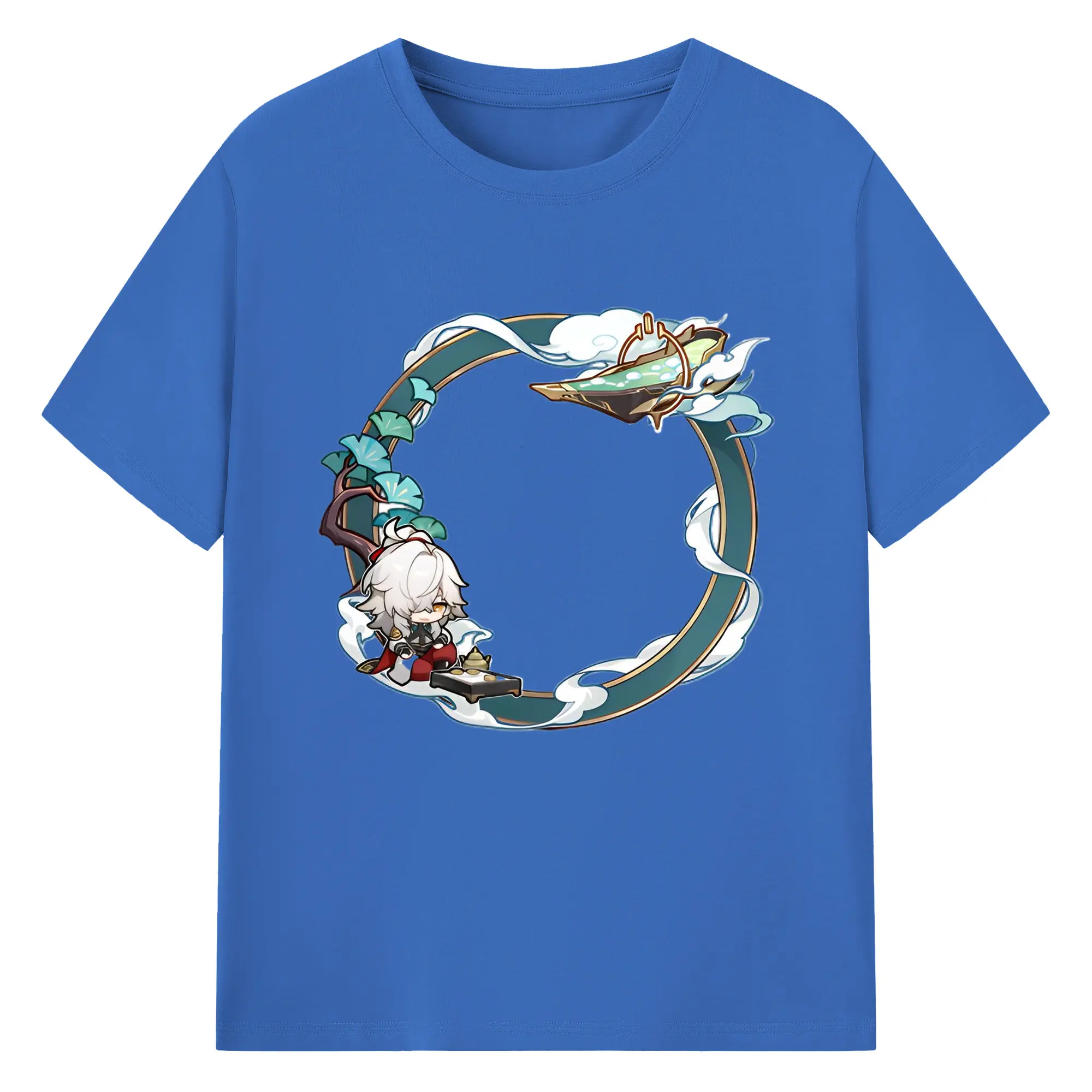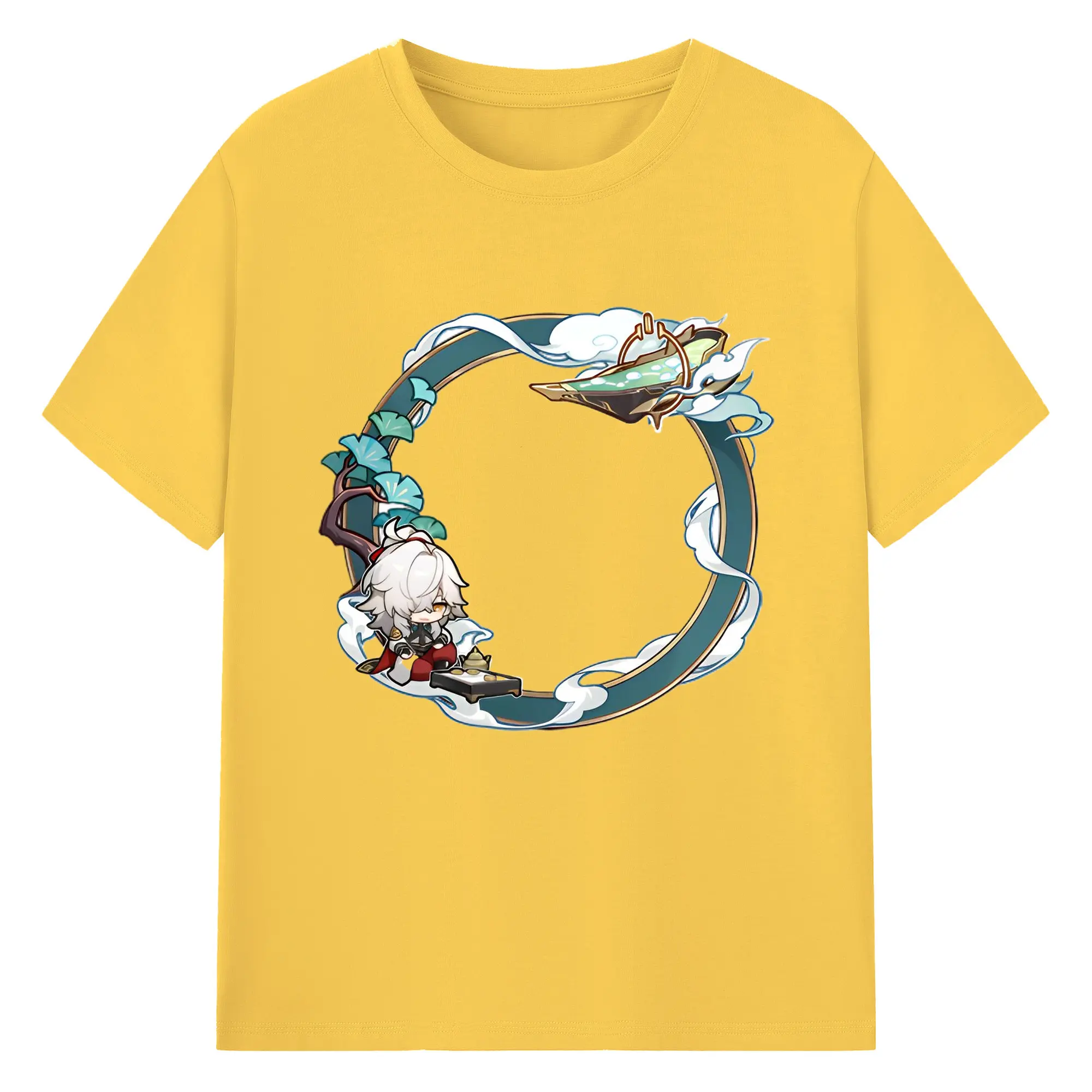 崩壊 仙舟同盟 ケイゲン デフォルメ キャラクター - 綿100% ヴィンテージ風 半袖Tシャツ ・ フロントプリント ・ 柔らか肌触り ・ 通気性 快適 ・ スポーツ カジュアル 外出用