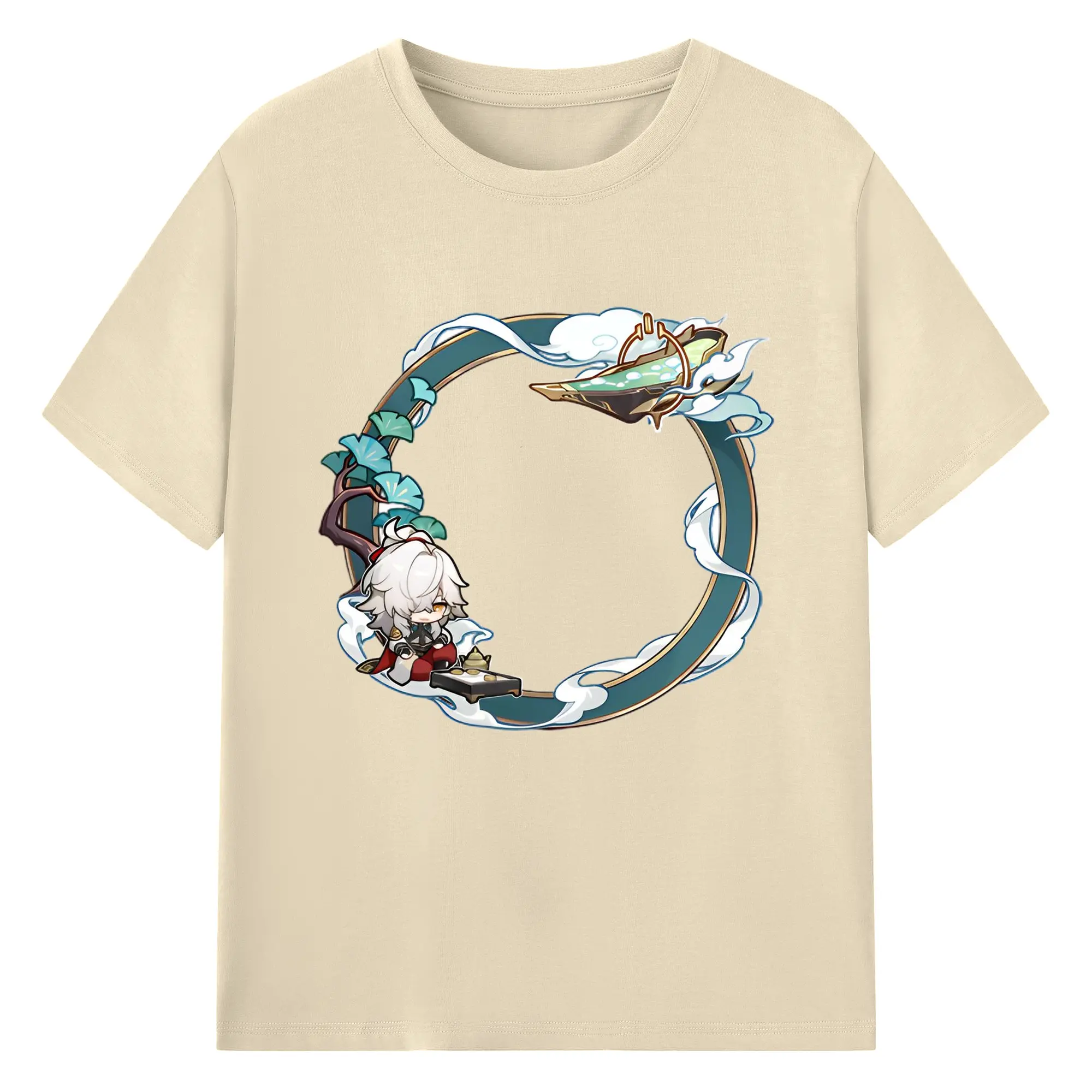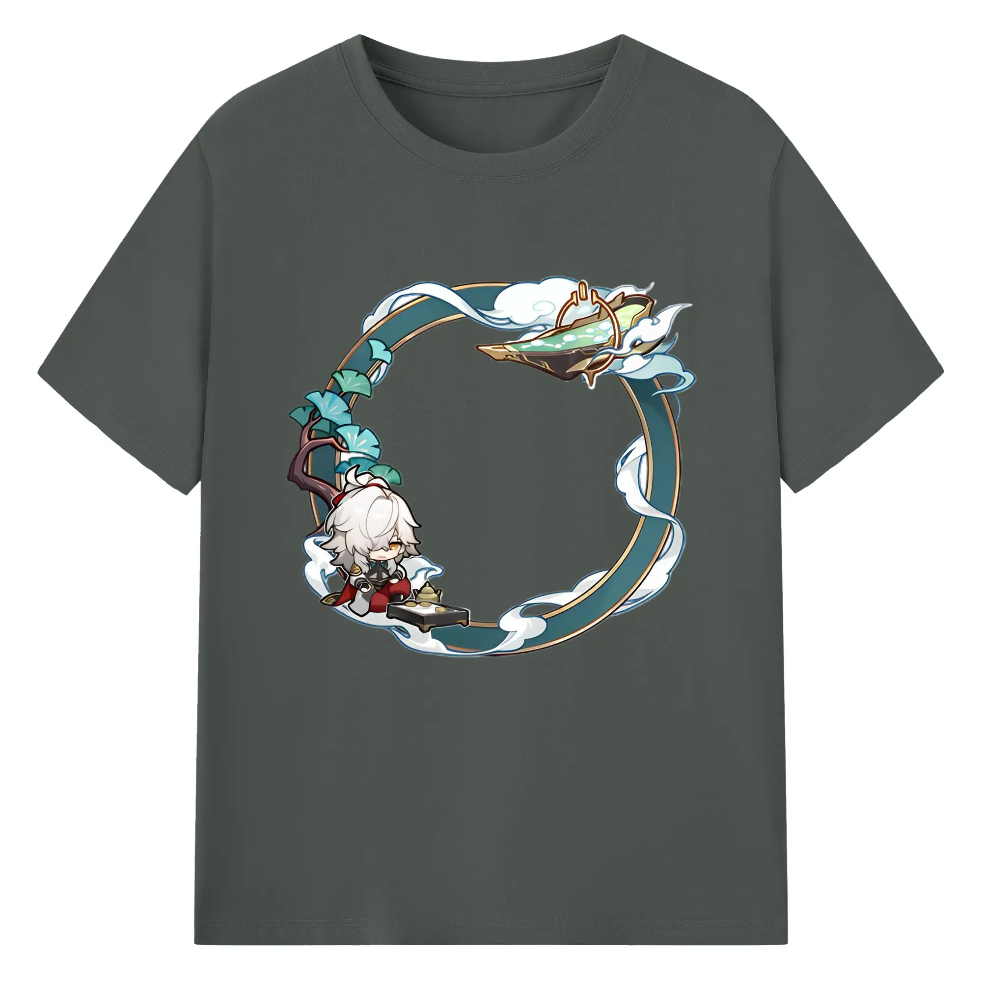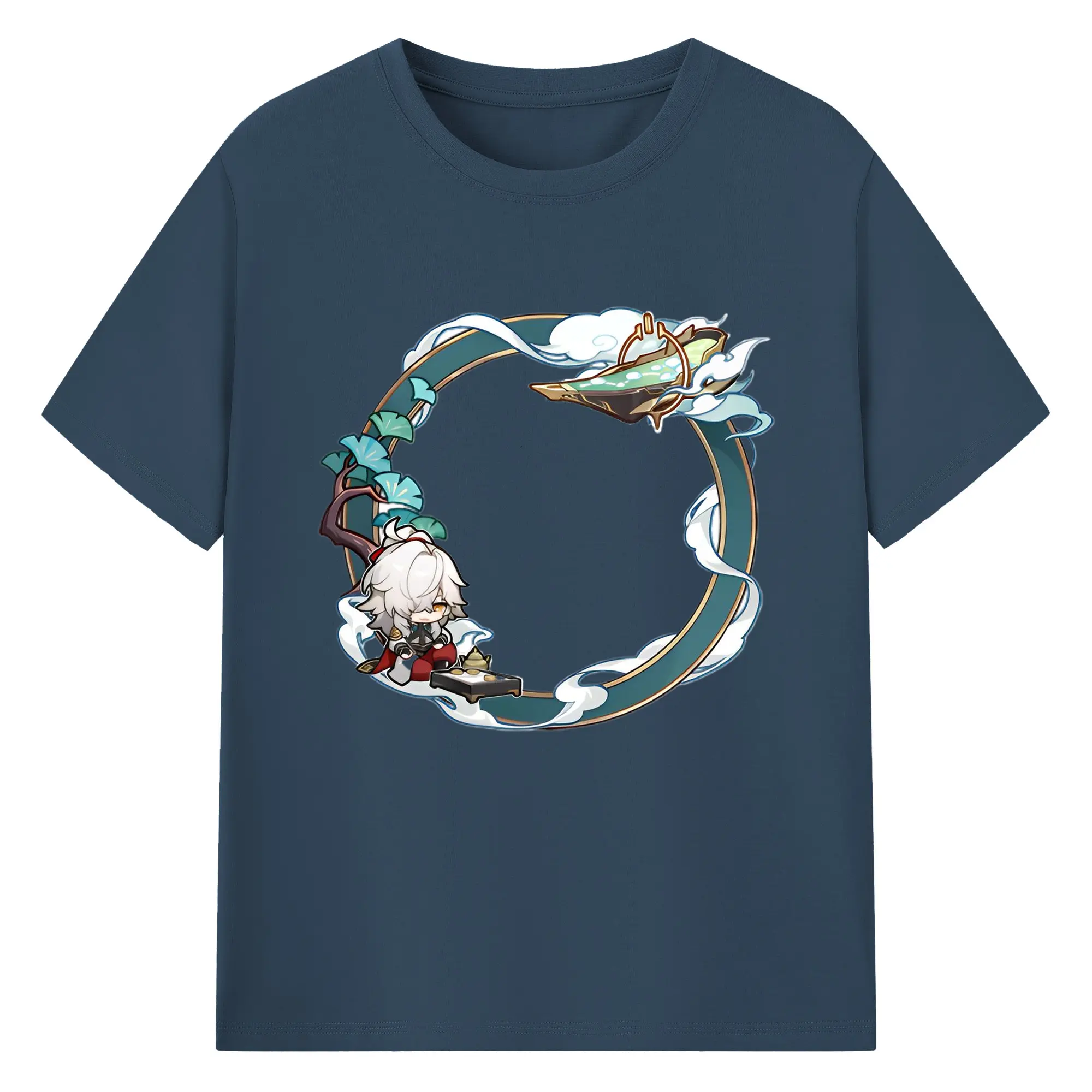 崩壊 仙舟同盟 ケイゲン デフォルメ キャラクター - 綿100% ヴィンテージ風 半袖Tシャツ ・ フロントプリント ・ 柔らか肌触り ・ 通気性 快適 ・ スポーツ カジュアル 外出用