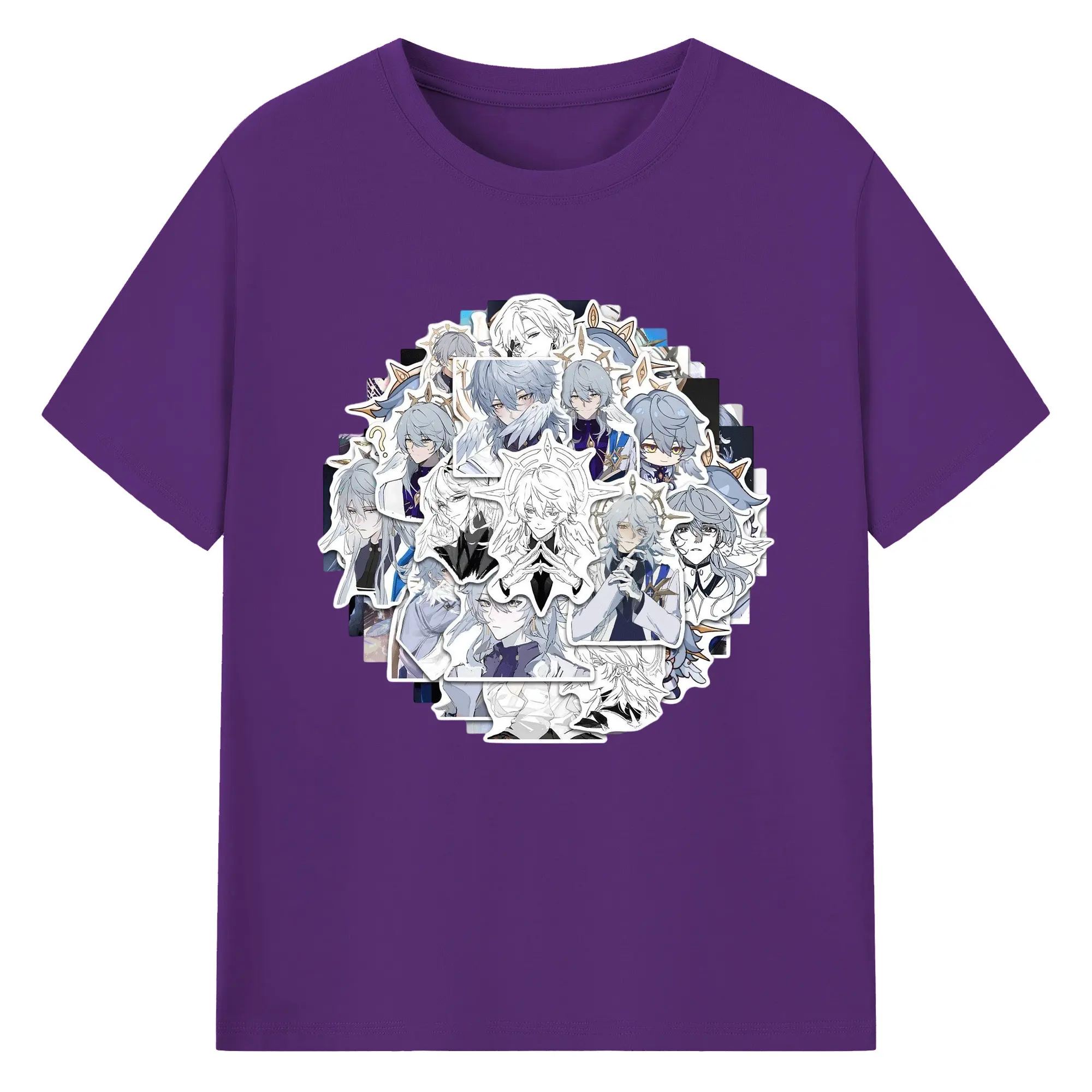 Genshin 稲妻 雷神らいじん ライデンショウグン - 綿100% 半袖Tシャツ ・ フロントプリント ・ 快適 通気性 ・ 日常使い 散歩 スポーツ用