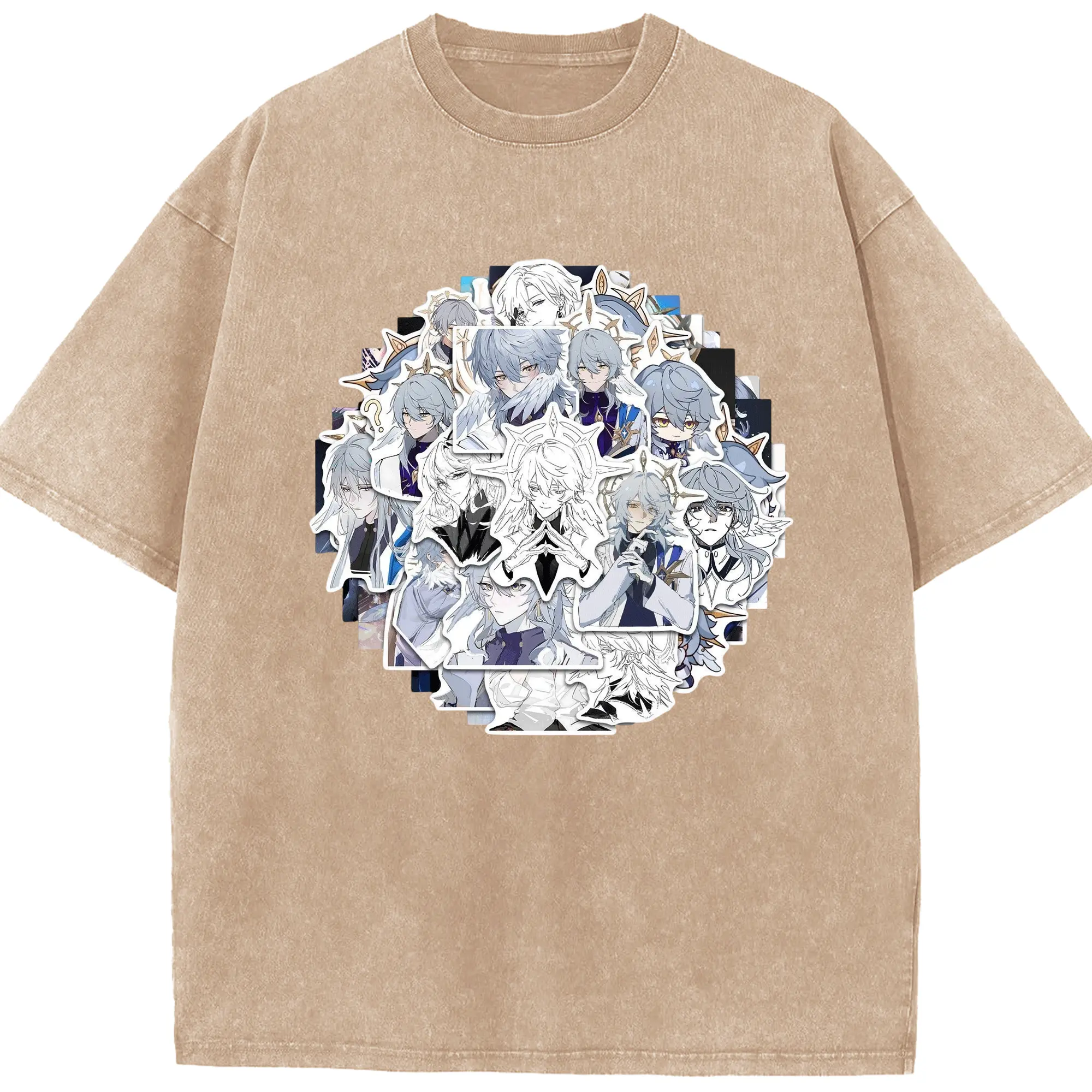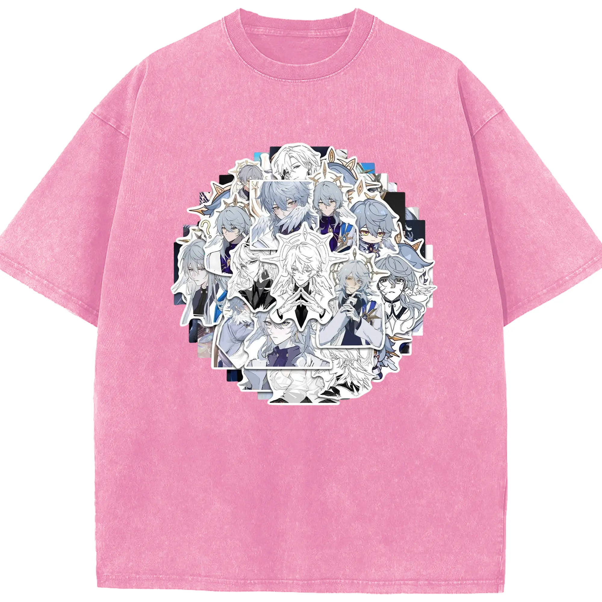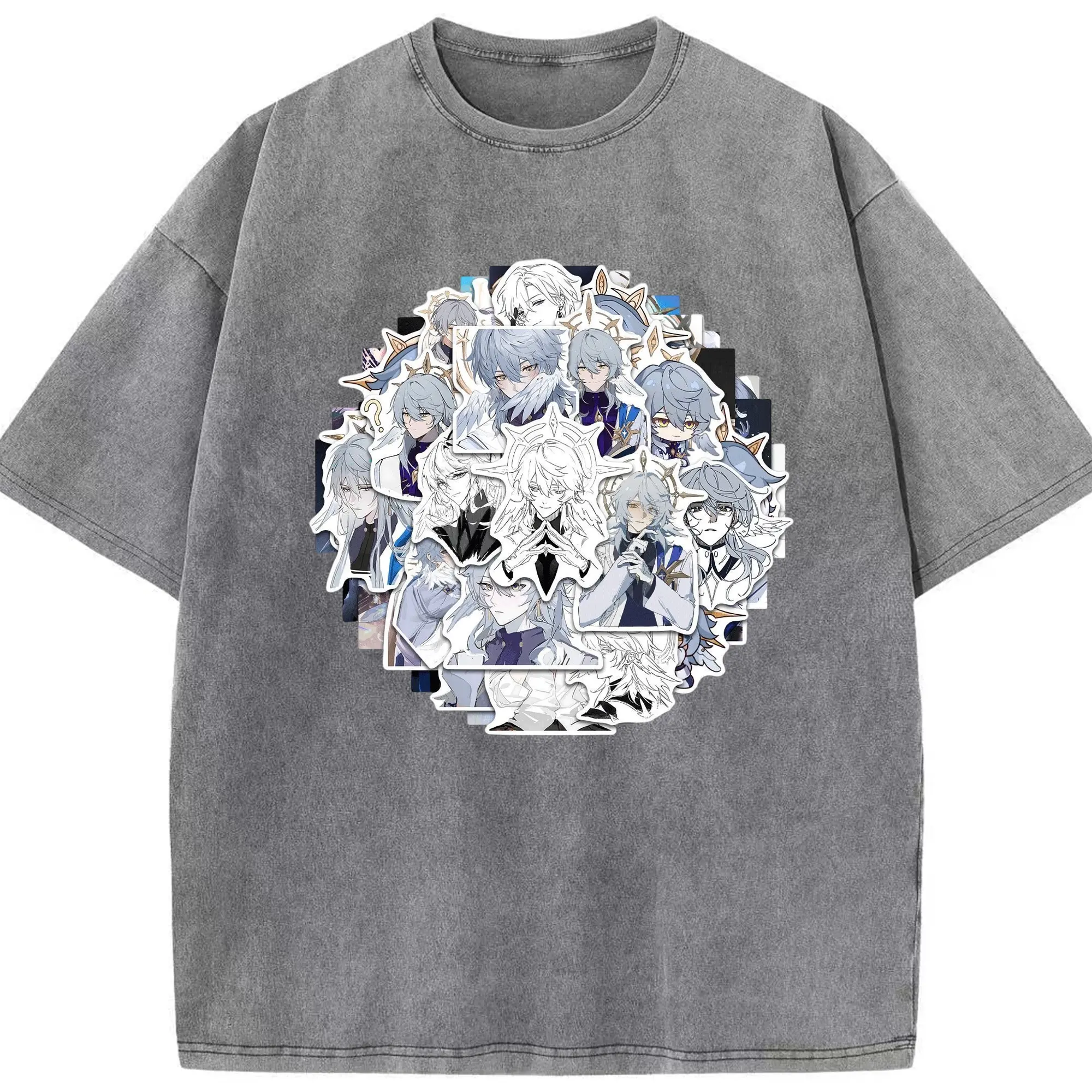 Genshin ナド・クライ 月神 げっしん コロンビーナ - 綿100% ヴィンテージ風 半袖Tシャツ ・ フロントプリント ・ 柔らか肌触り ・ 通気性 快適 ・ スポーツ カジュアル 外出用