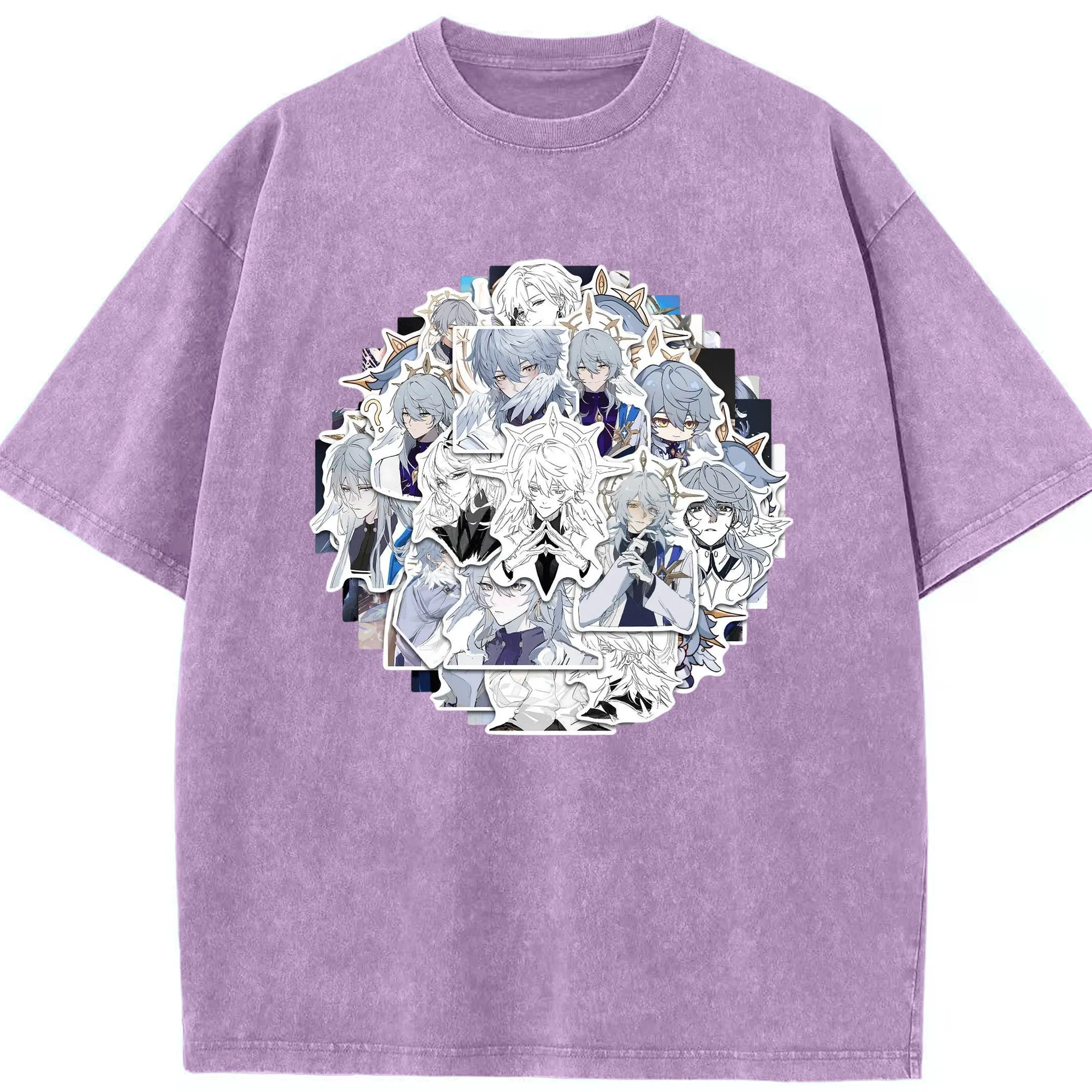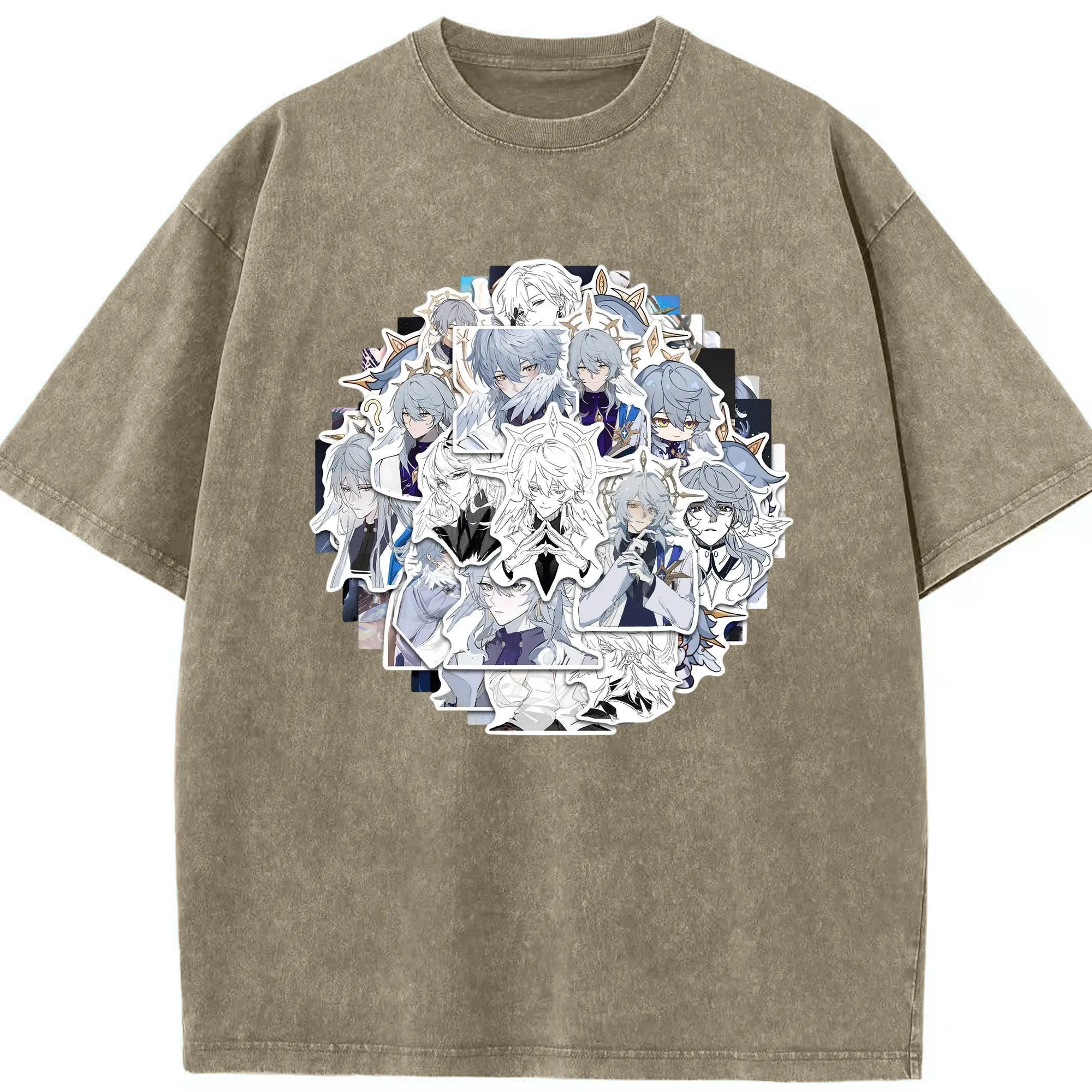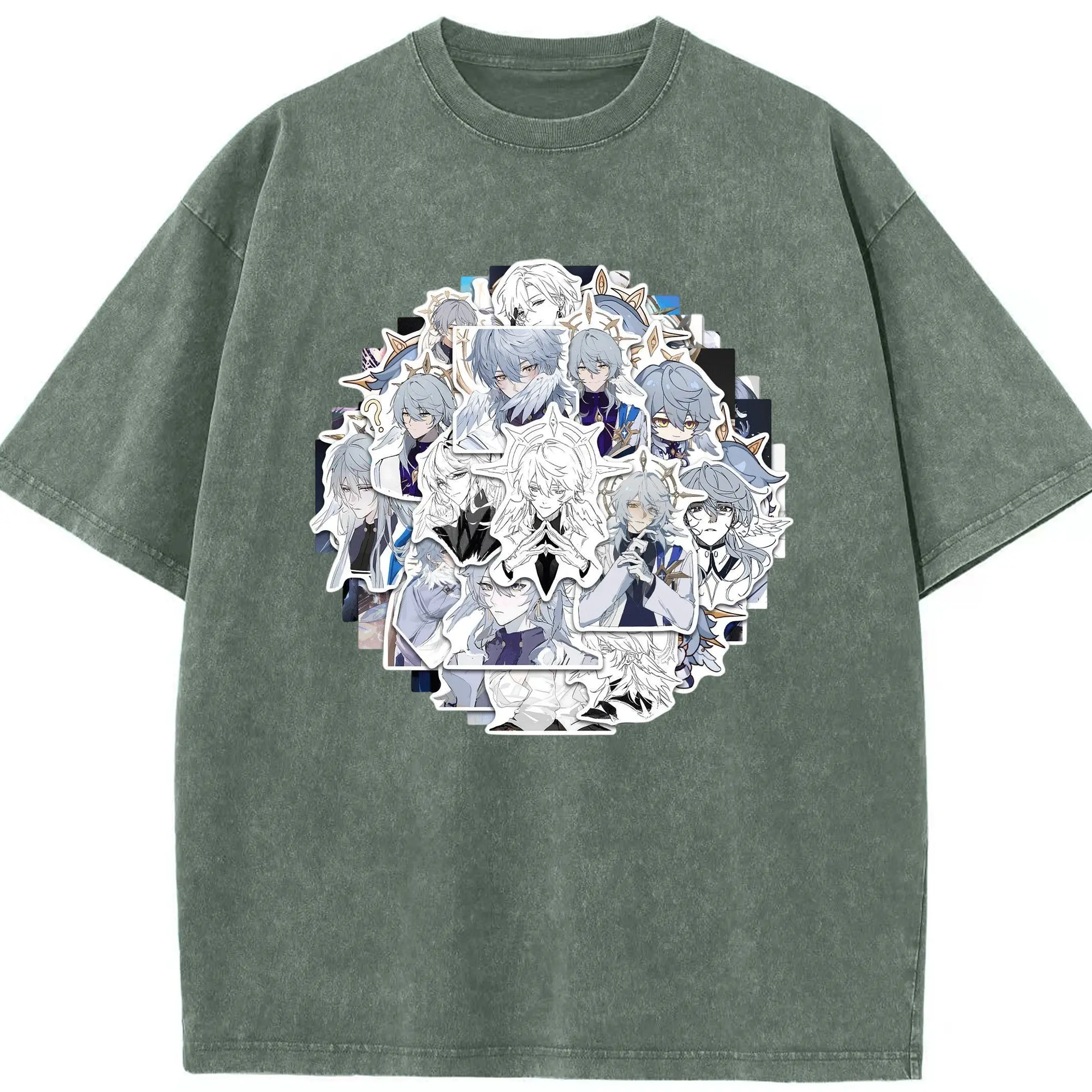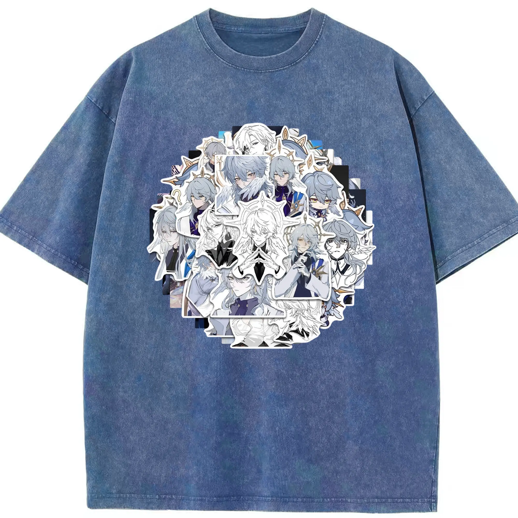 Genshin ナド・クライ 月神 げっしん コロンビーナ - 綿100% ヴィンテージ風 半袖Tシャツ ・ フロントプリント ・ 柔らか肌触り ・ 通気性 快適 ・ スポーツ カジュアル 外出用