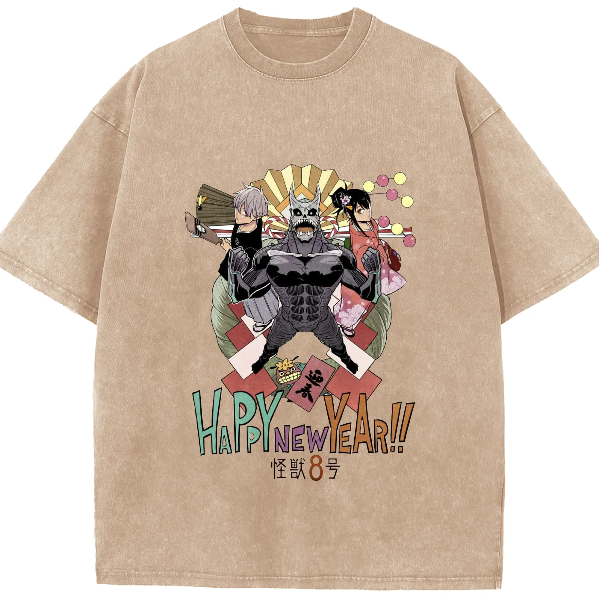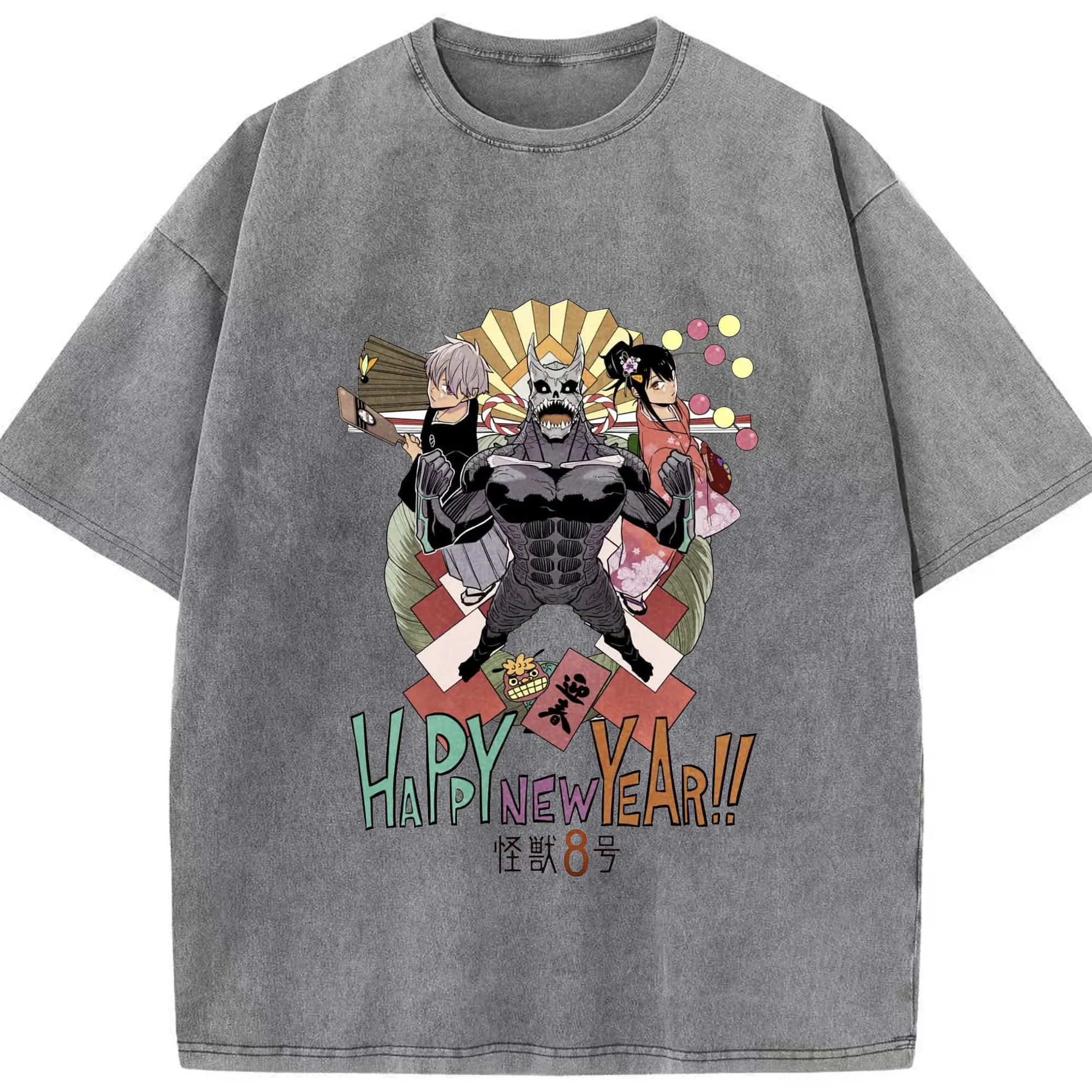 怪獣8号 あけまして特別限定 - 綿100% 半袖Tシャツ ・ フロントプリント ・ 快適 通気性 ・ 日常使い 散歩 スポーツ用