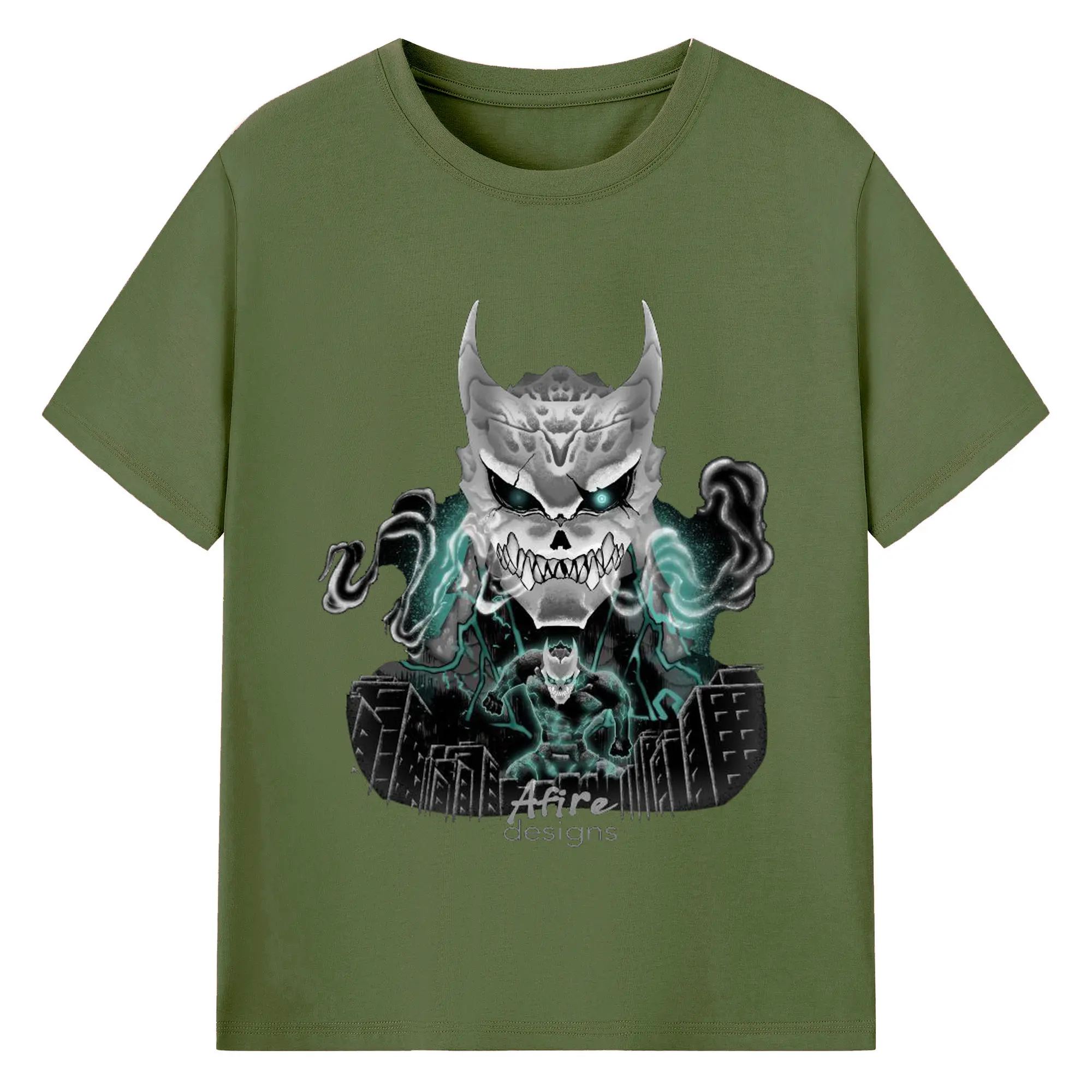 ゴジラの食事タイム - 綿100% 半袖Tシャツ ・ フロントプリント ・ 快適 通気性 ・ 日常使い 散歩 スポーツ用