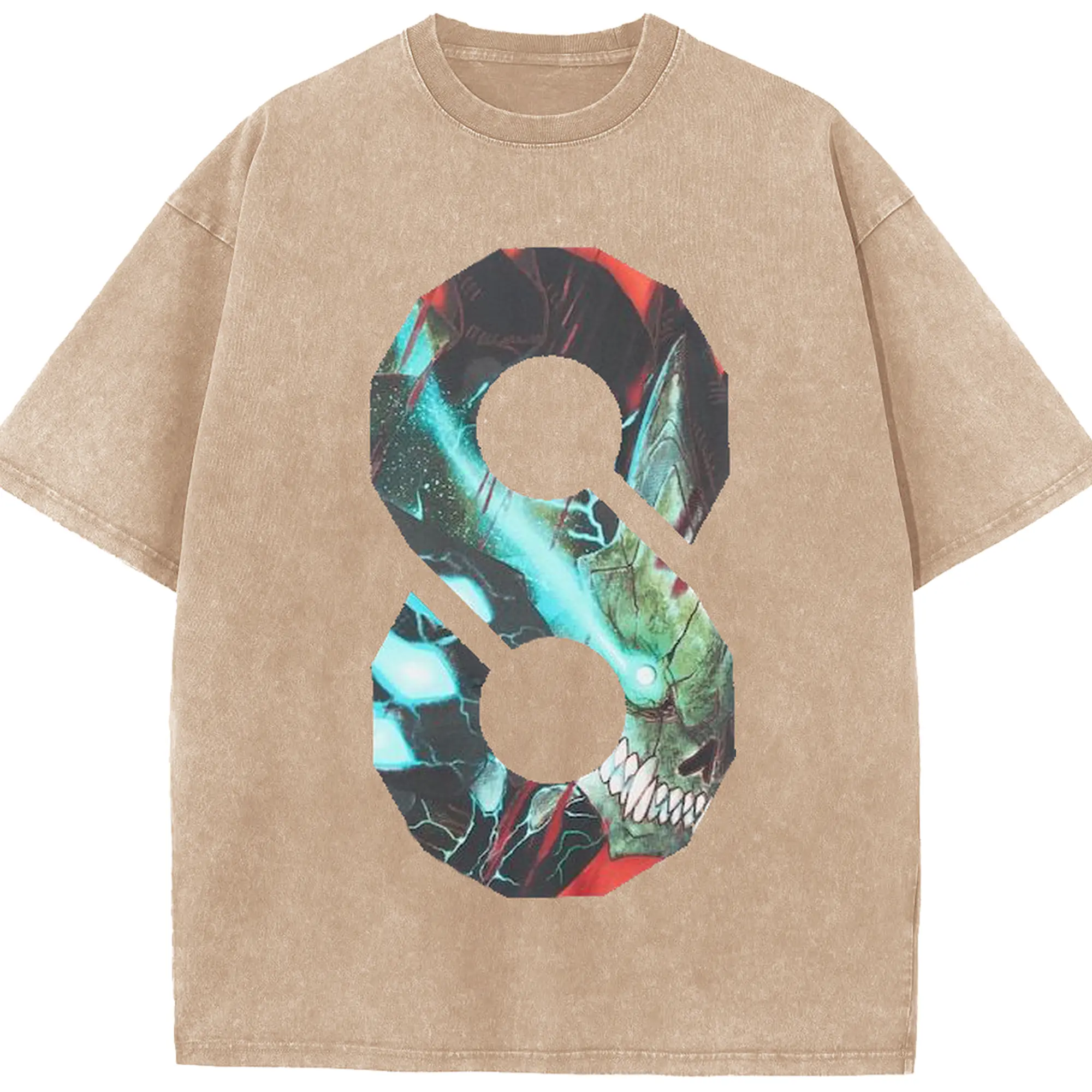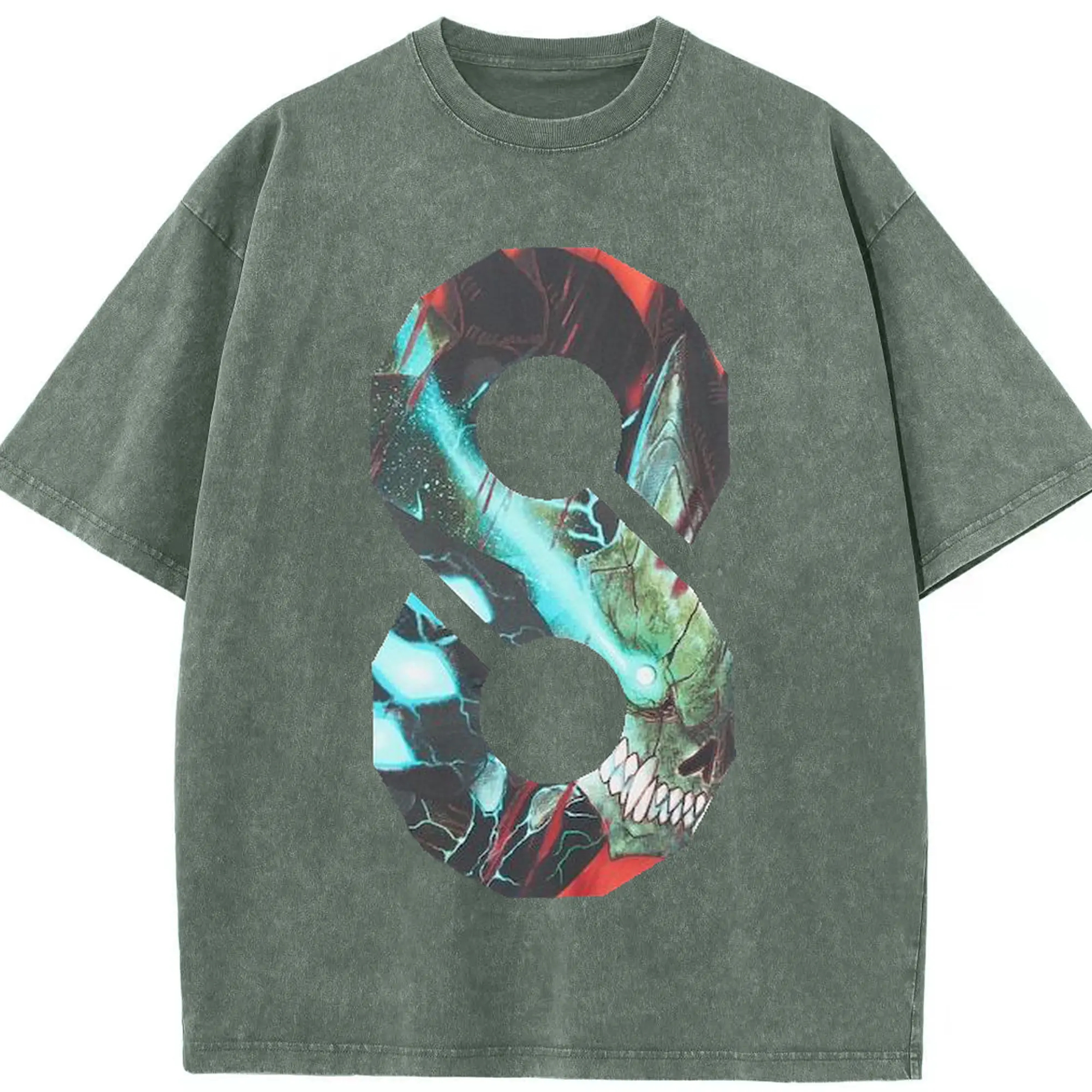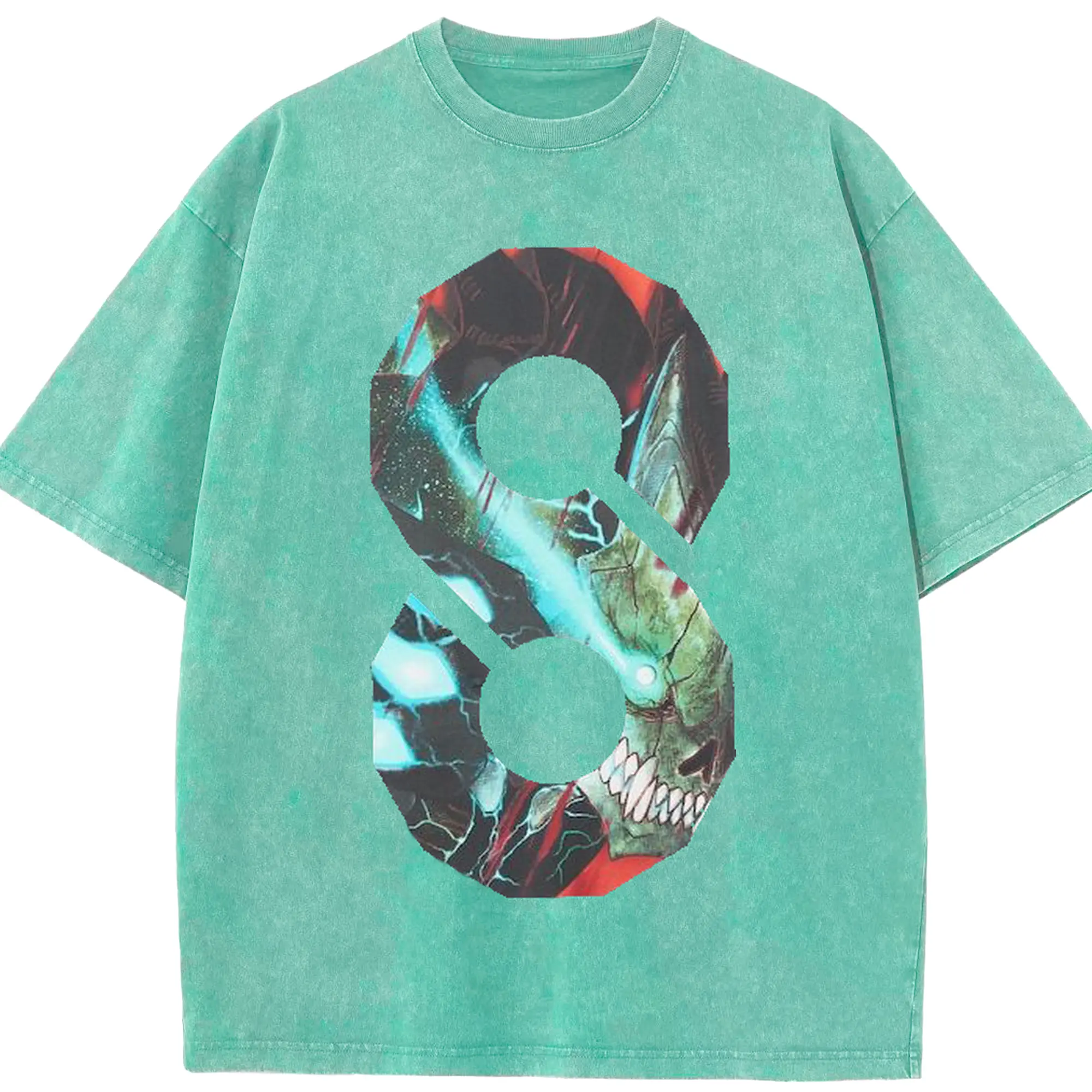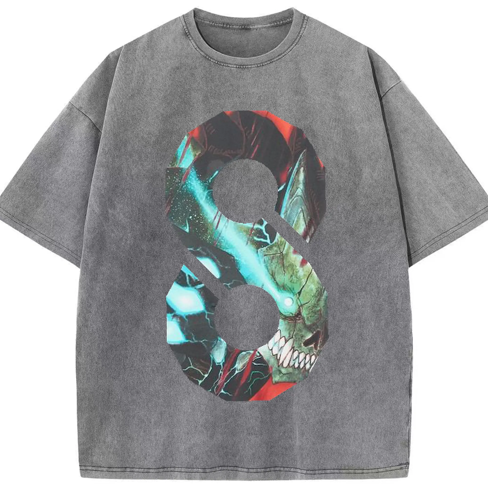 怪獣8号 日比野カフカ 番号8ロゴ - 綿100% 半袖Tシャツ ・ フロントプリント ・ 快適 通気性 ・ 日常使い 散歩 スポーツ用