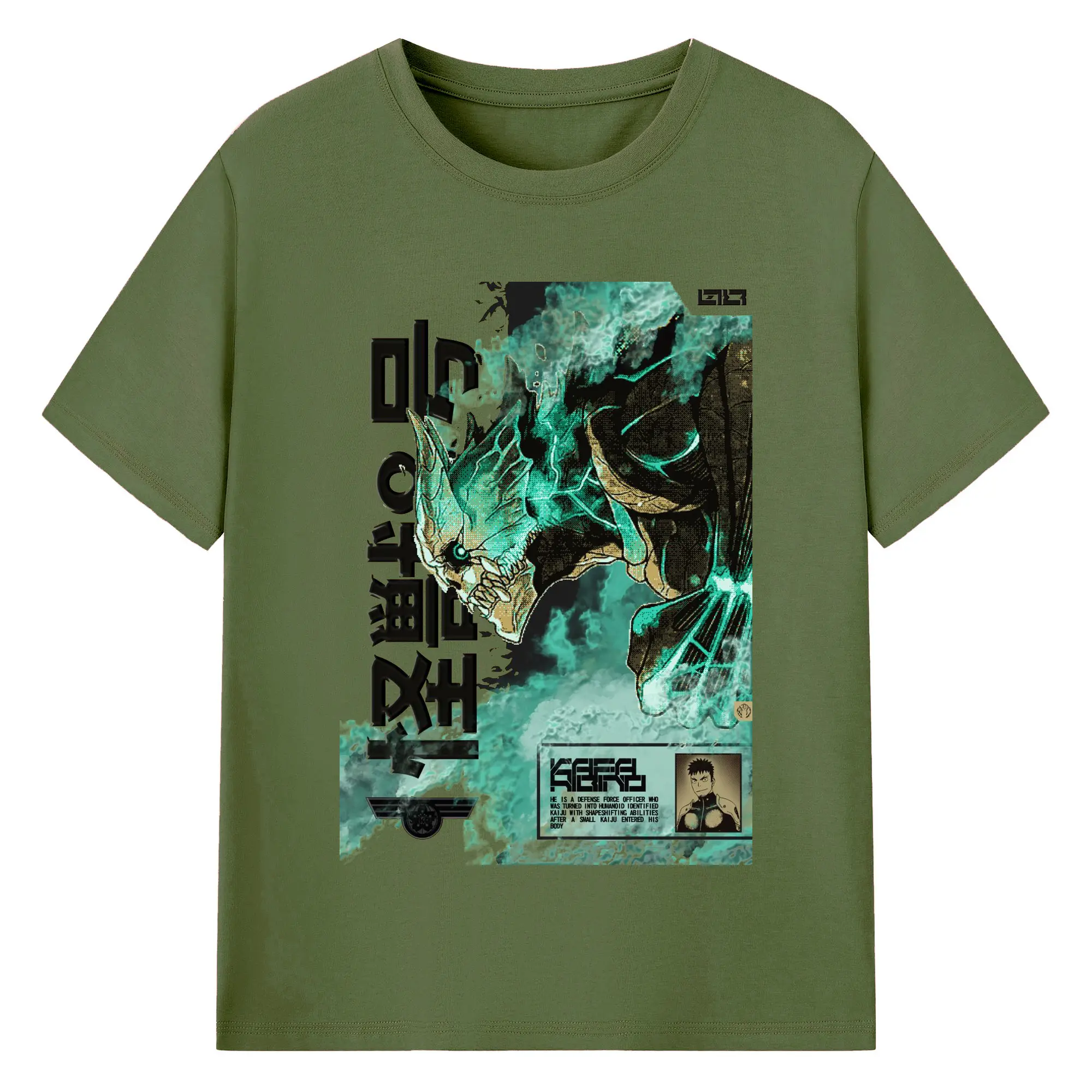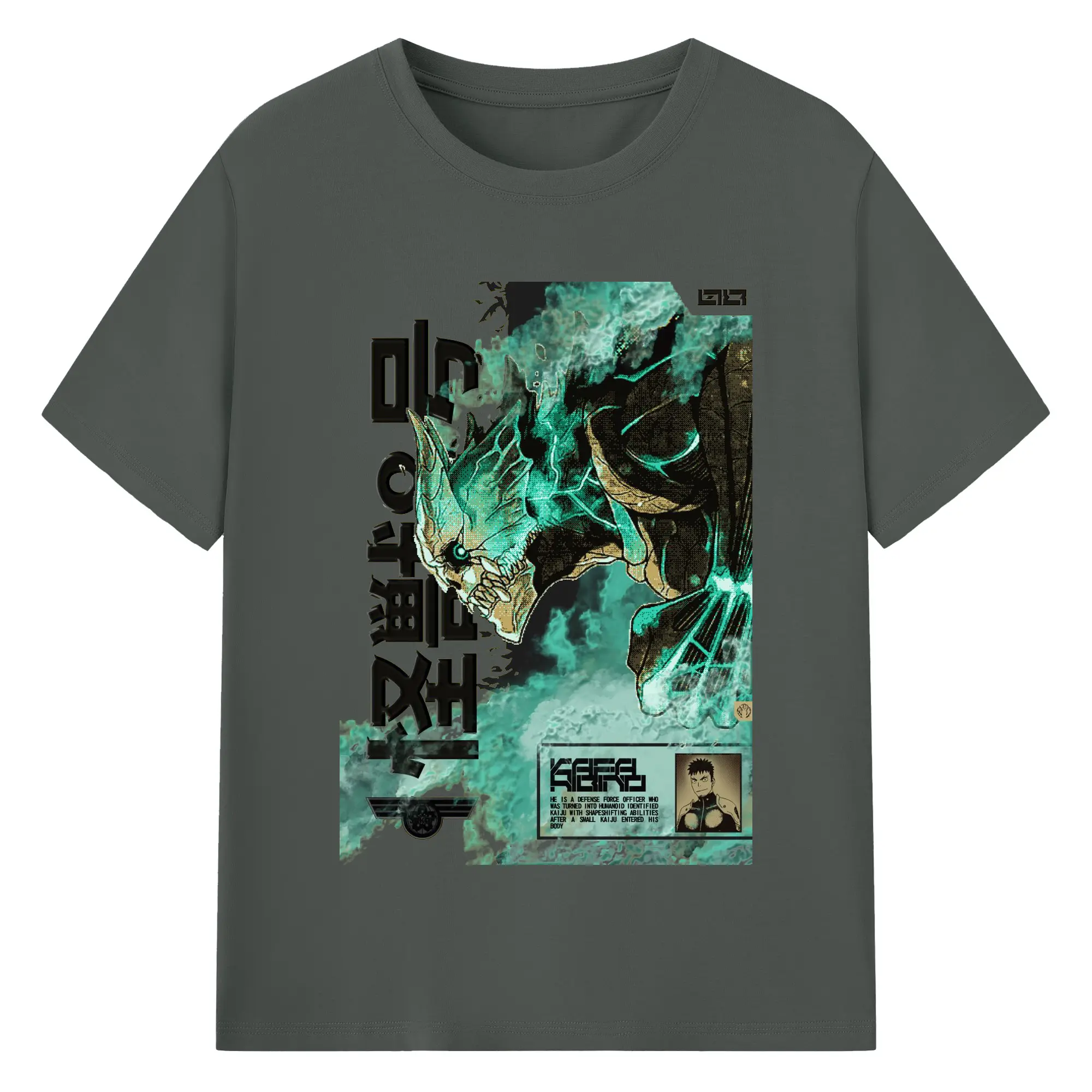 怪獣8号 8号怪獣化 - 綿100% ヴィンテージ風 半袖Tシャツ ・ フロントプリント ・ 柔らか肌触り ・ 通気性 快適 ・ スポーツ カジュアル 外出用