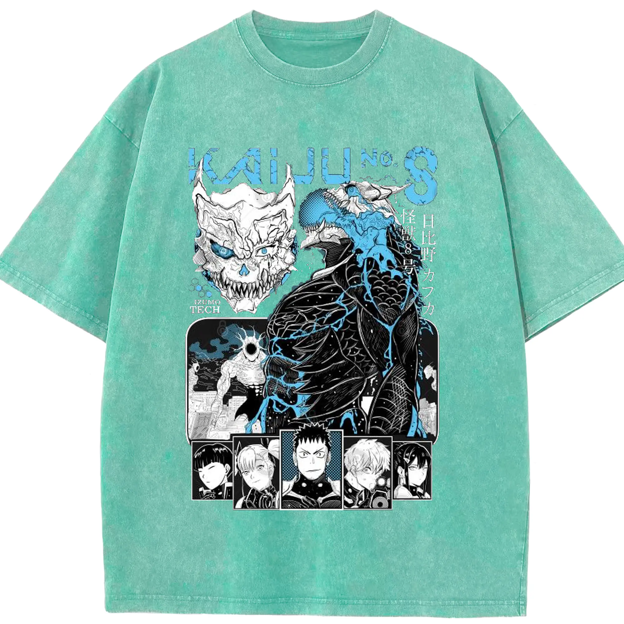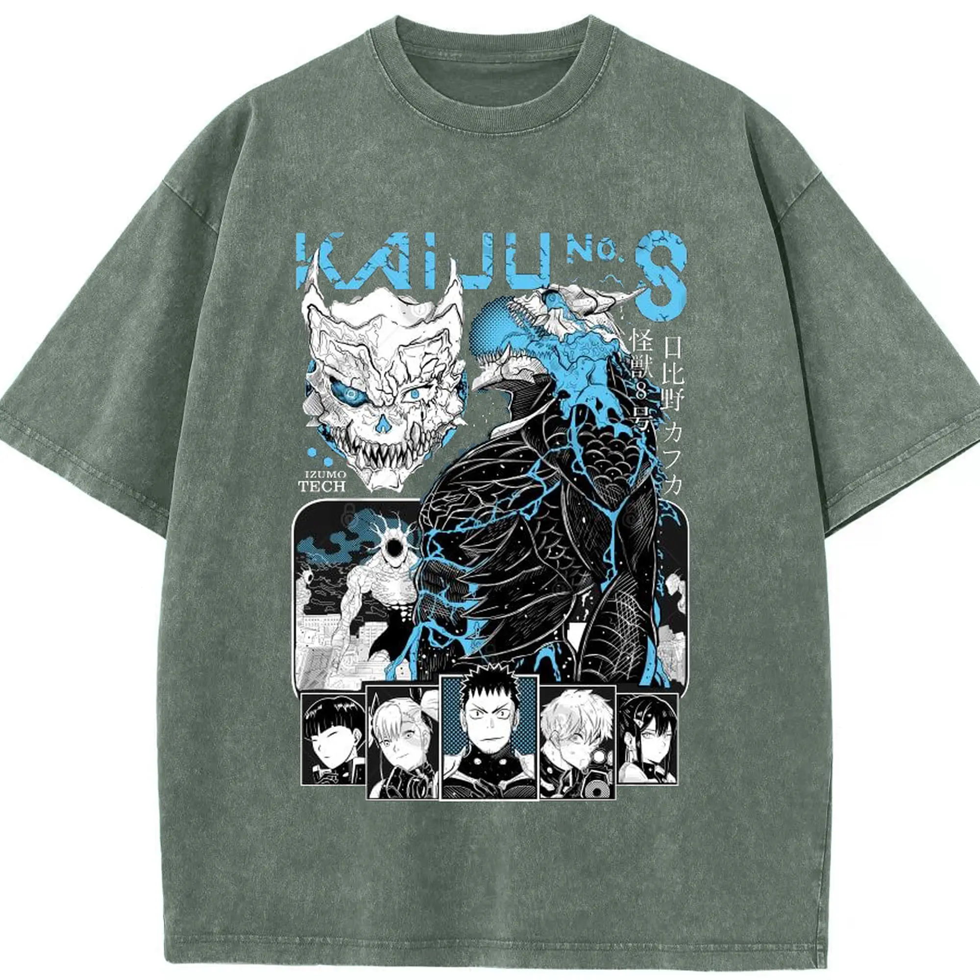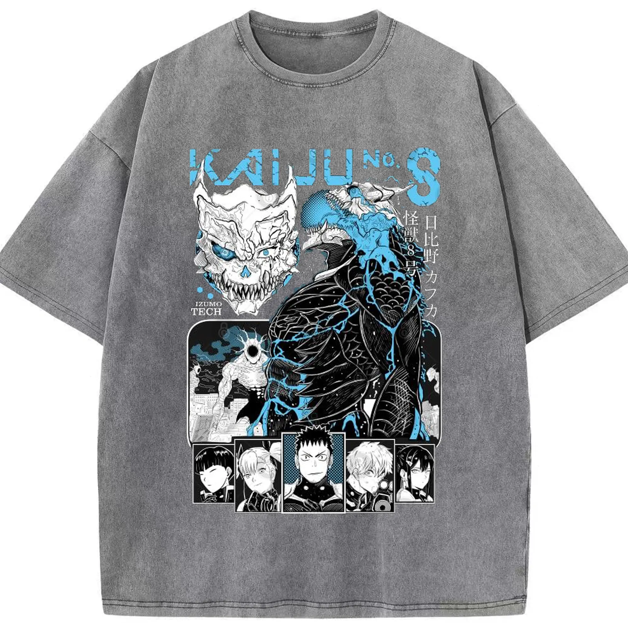 怪獣8号 日比野カフカ - 綿100% ヴィンテージ風 半袖Tシャツ ・ フロントプリント ・ 柔らか肌触り ・ 通気性 快適 ・ スポーツ カジュアル 外出用