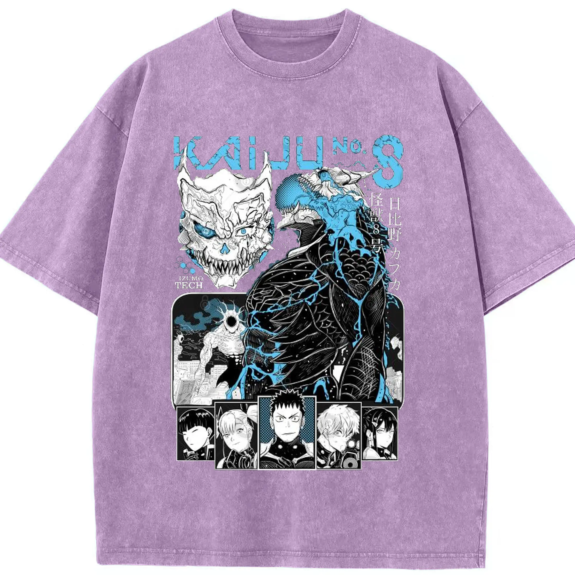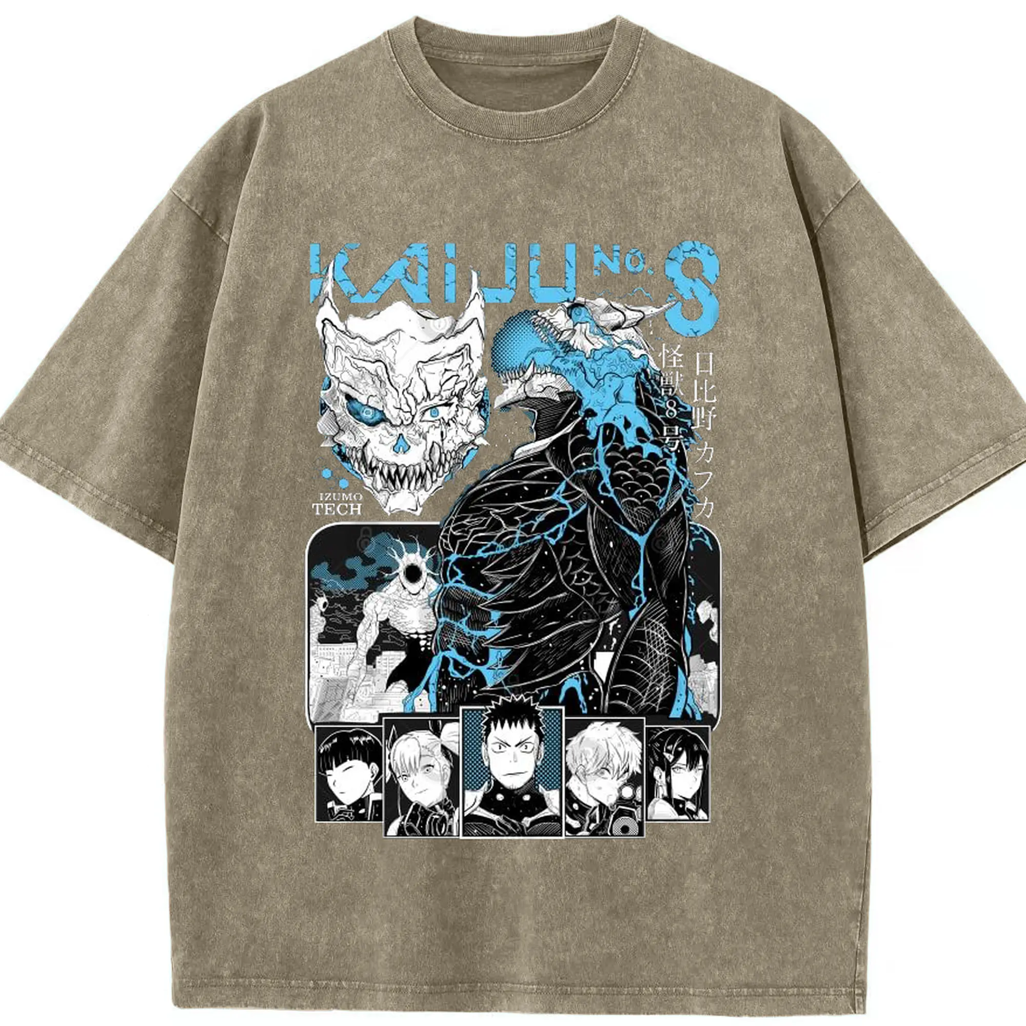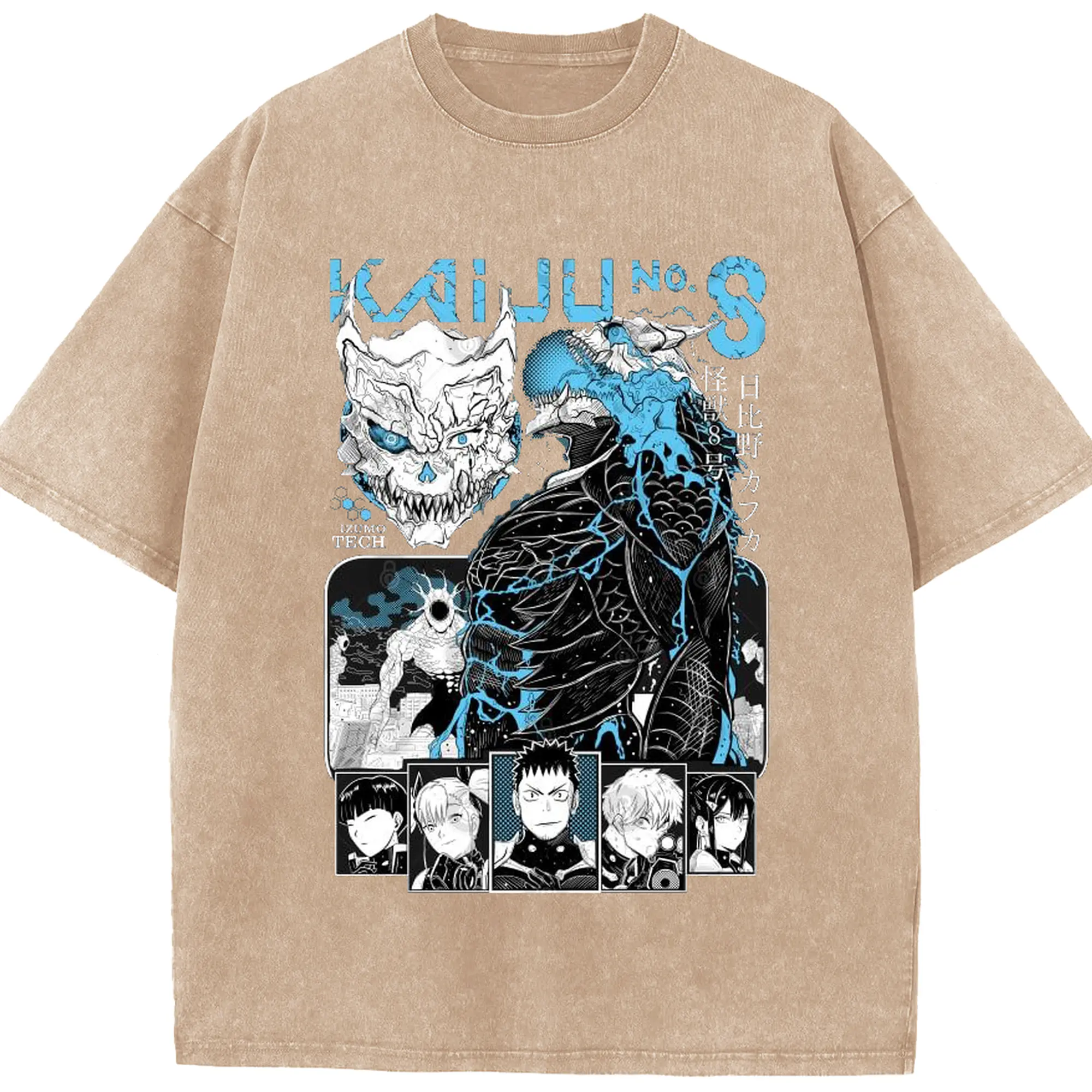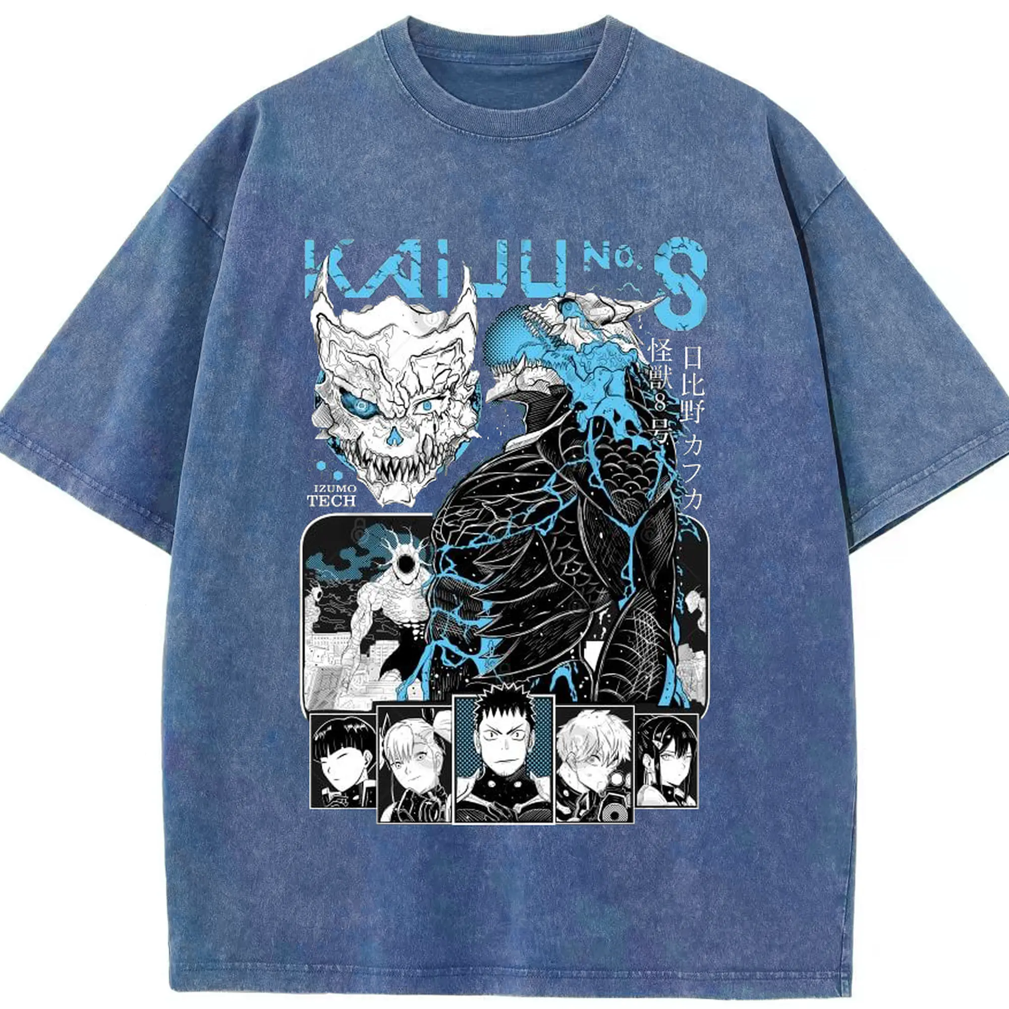 怪獣8号 日比野カフカ - 綿100% ヴィンテージ風 半袖Tシャツ ・ フロントプリント ・ 柔らか肌触り ・ 通気性 快適 ・ スポーツ カジュアル 外出用