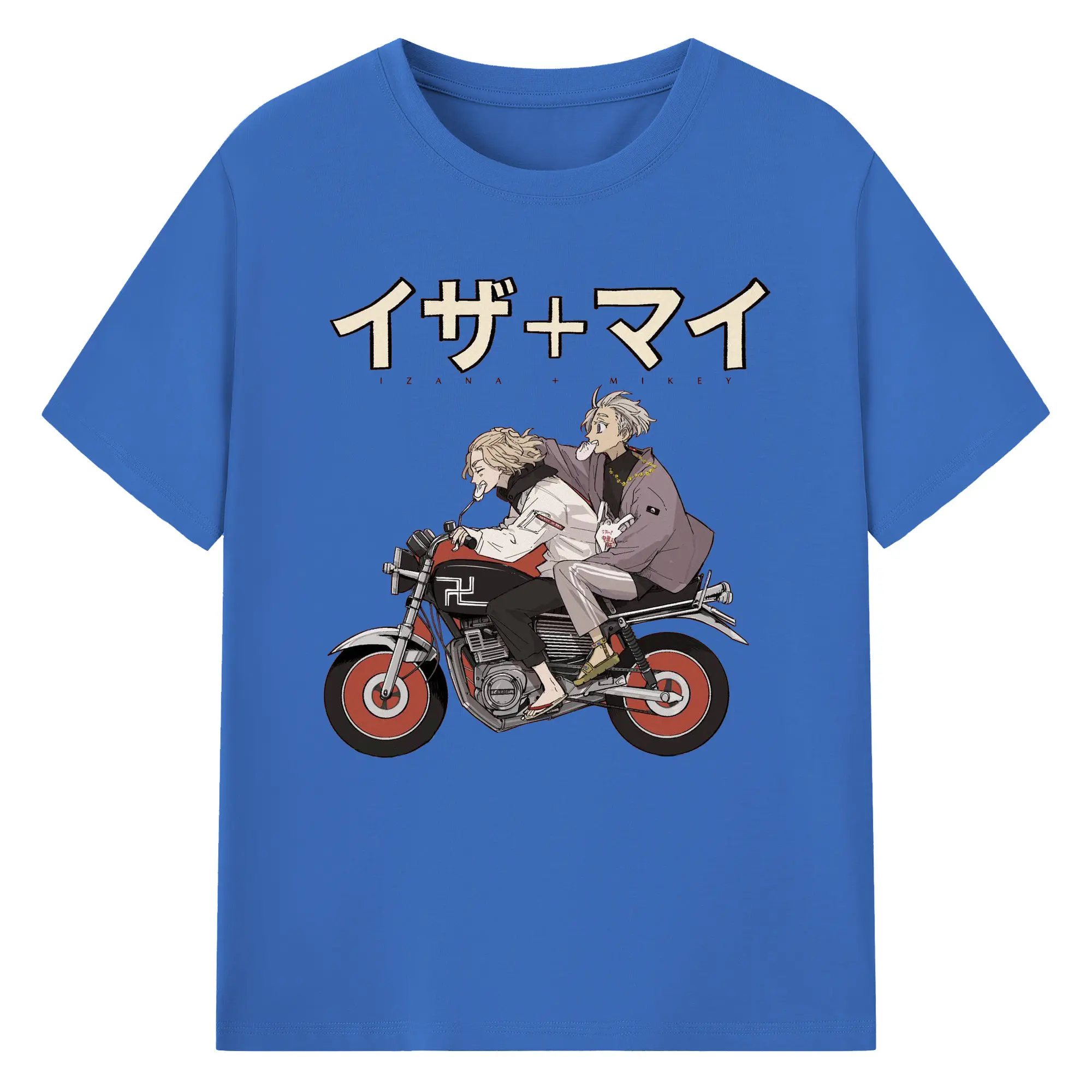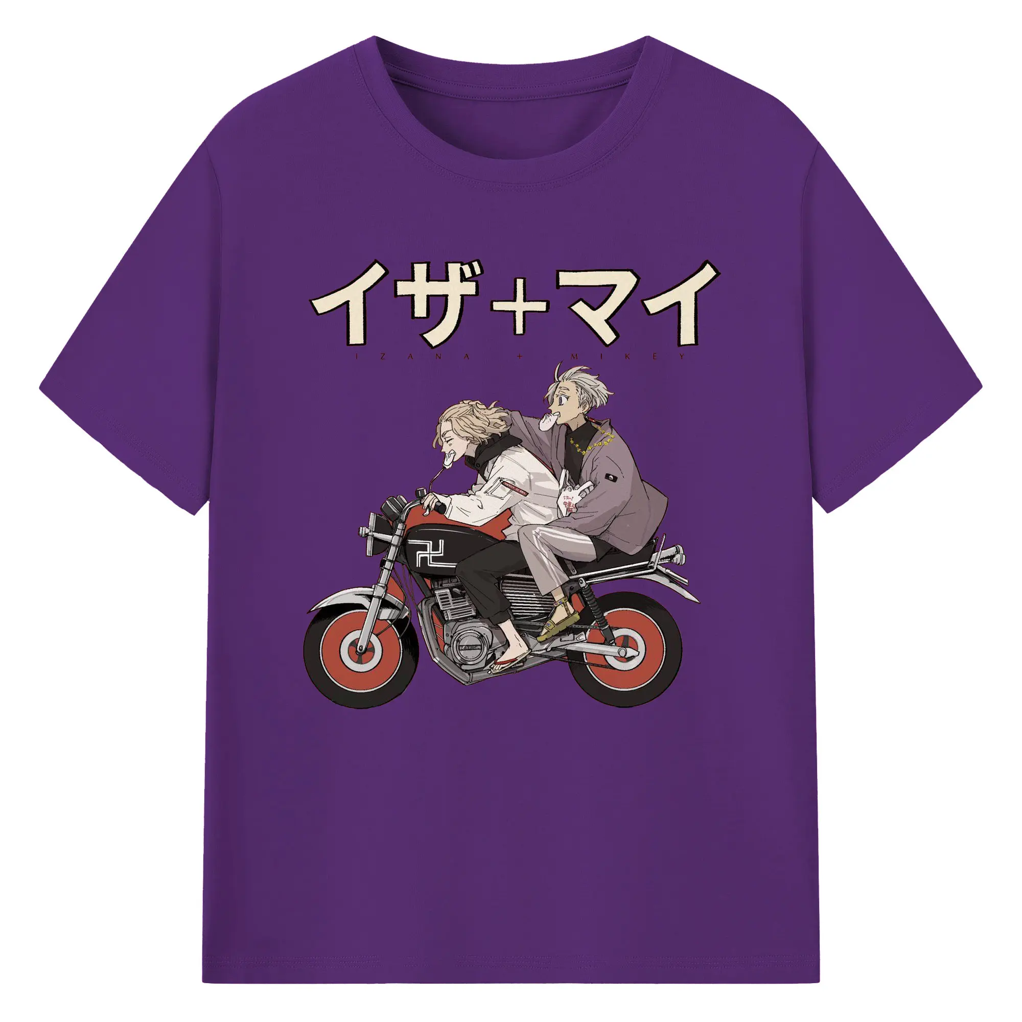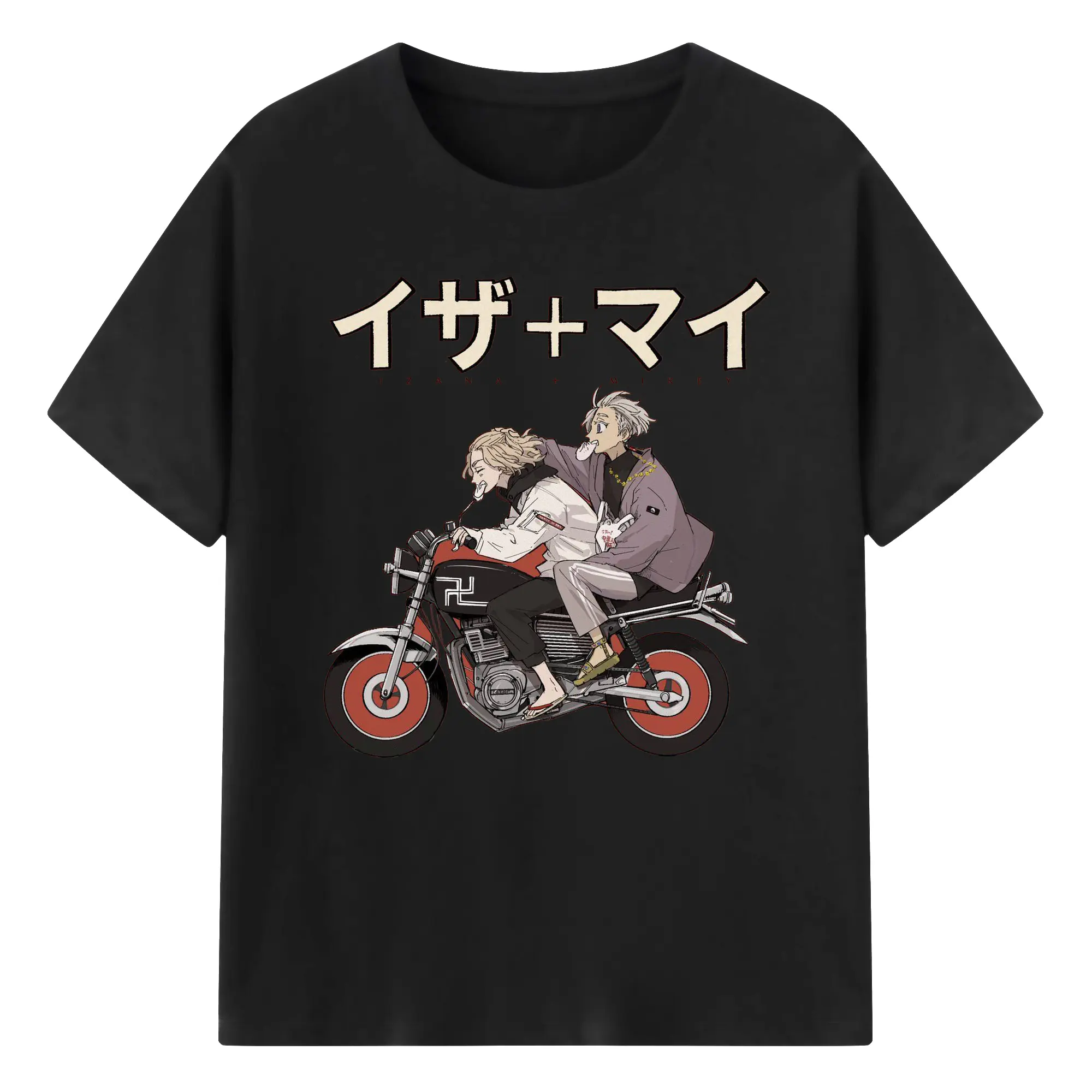 東京卍リベンジャーズ イザ+マイ - 綿100% 半袖Tシャツ ・ フロントプリント ・ 快適 通気性 ・ 日常使い 散歩 スポーツ用