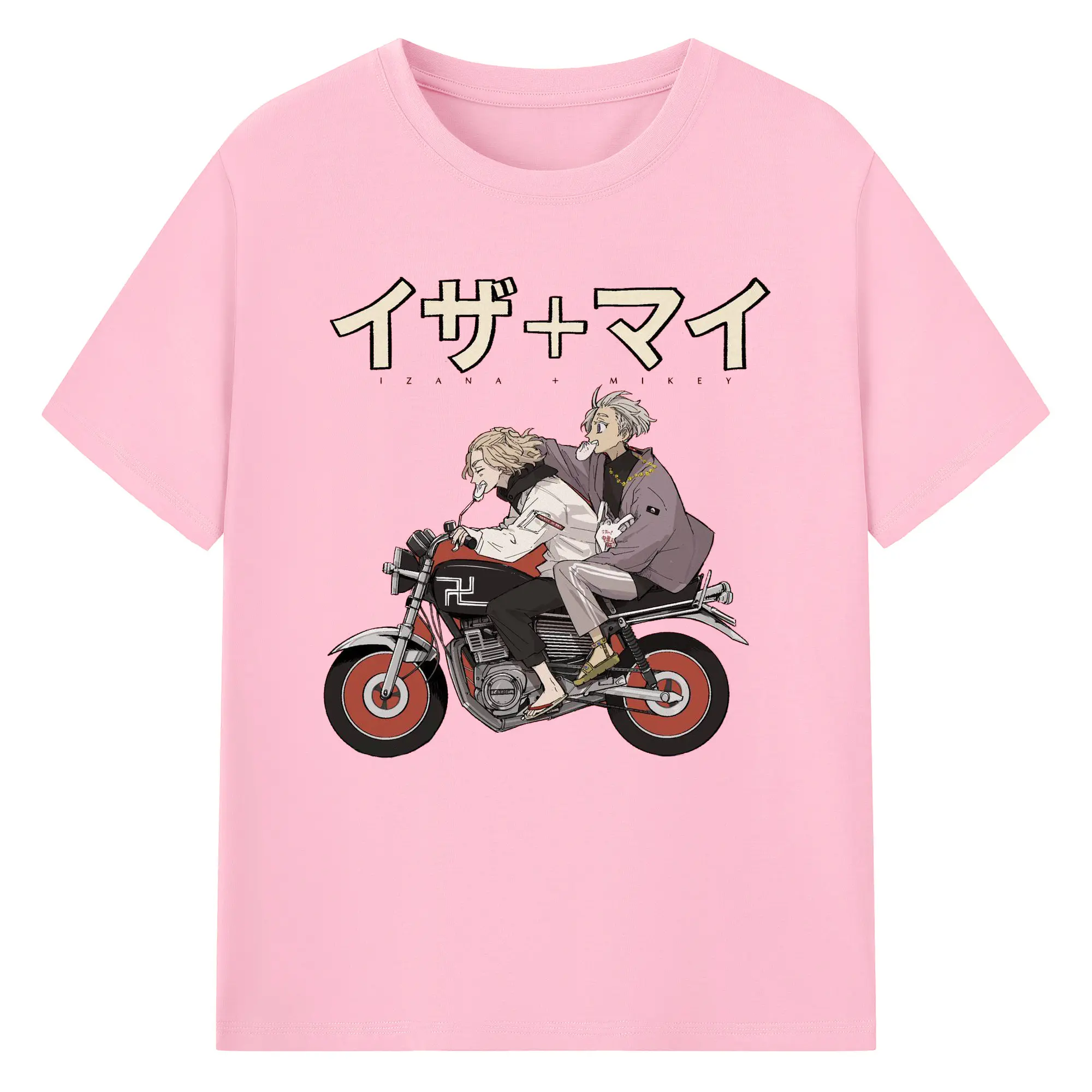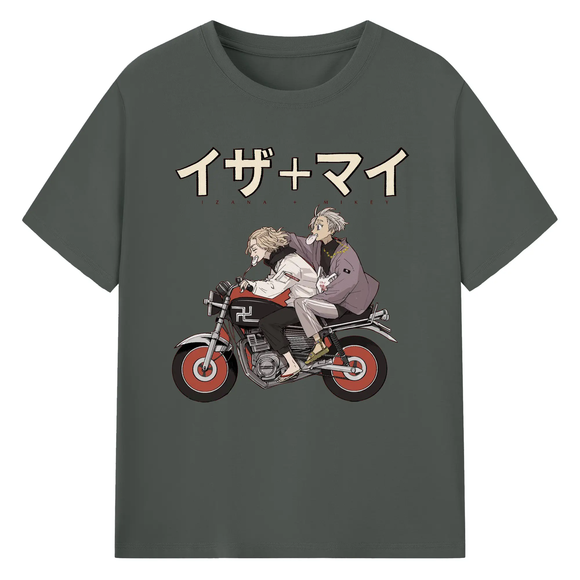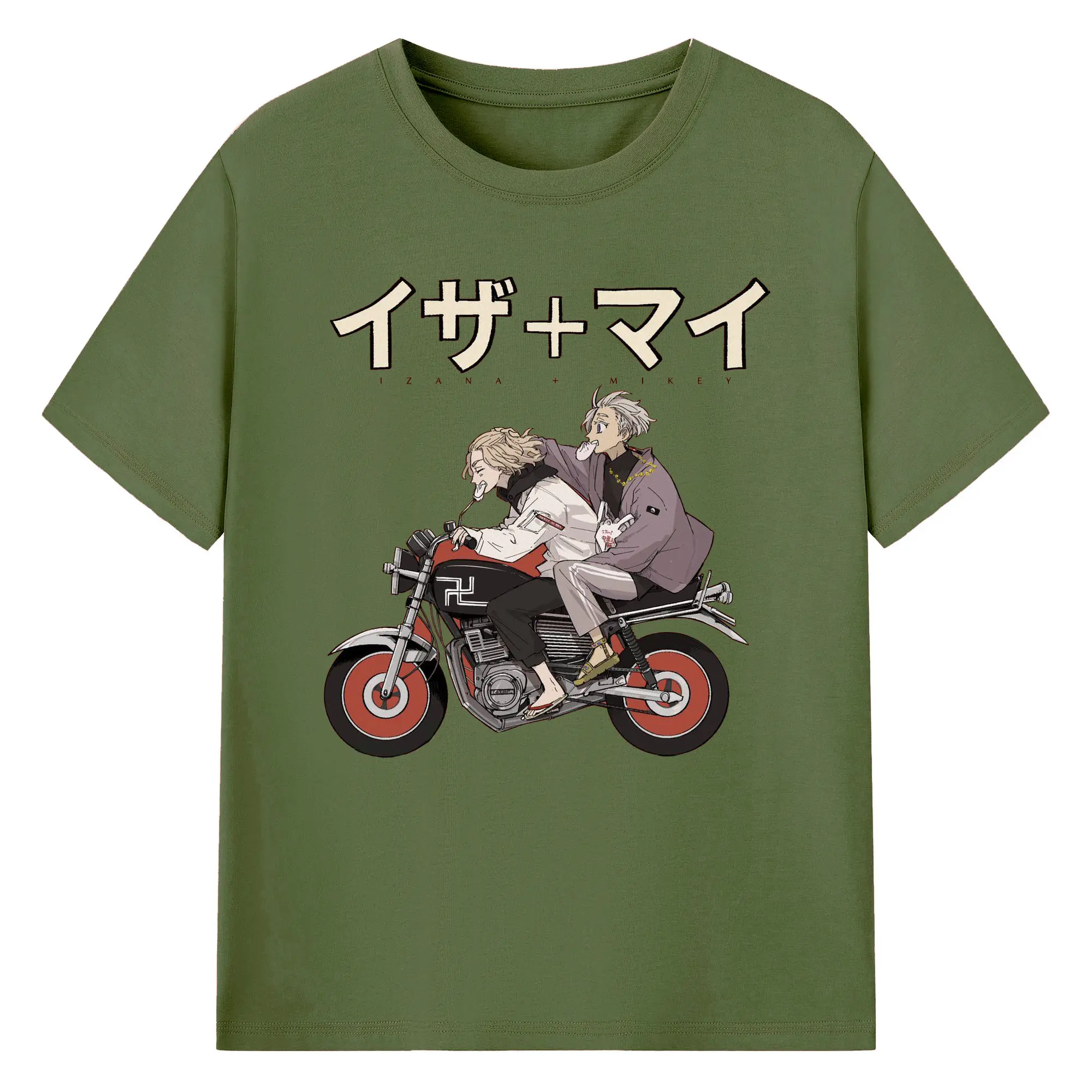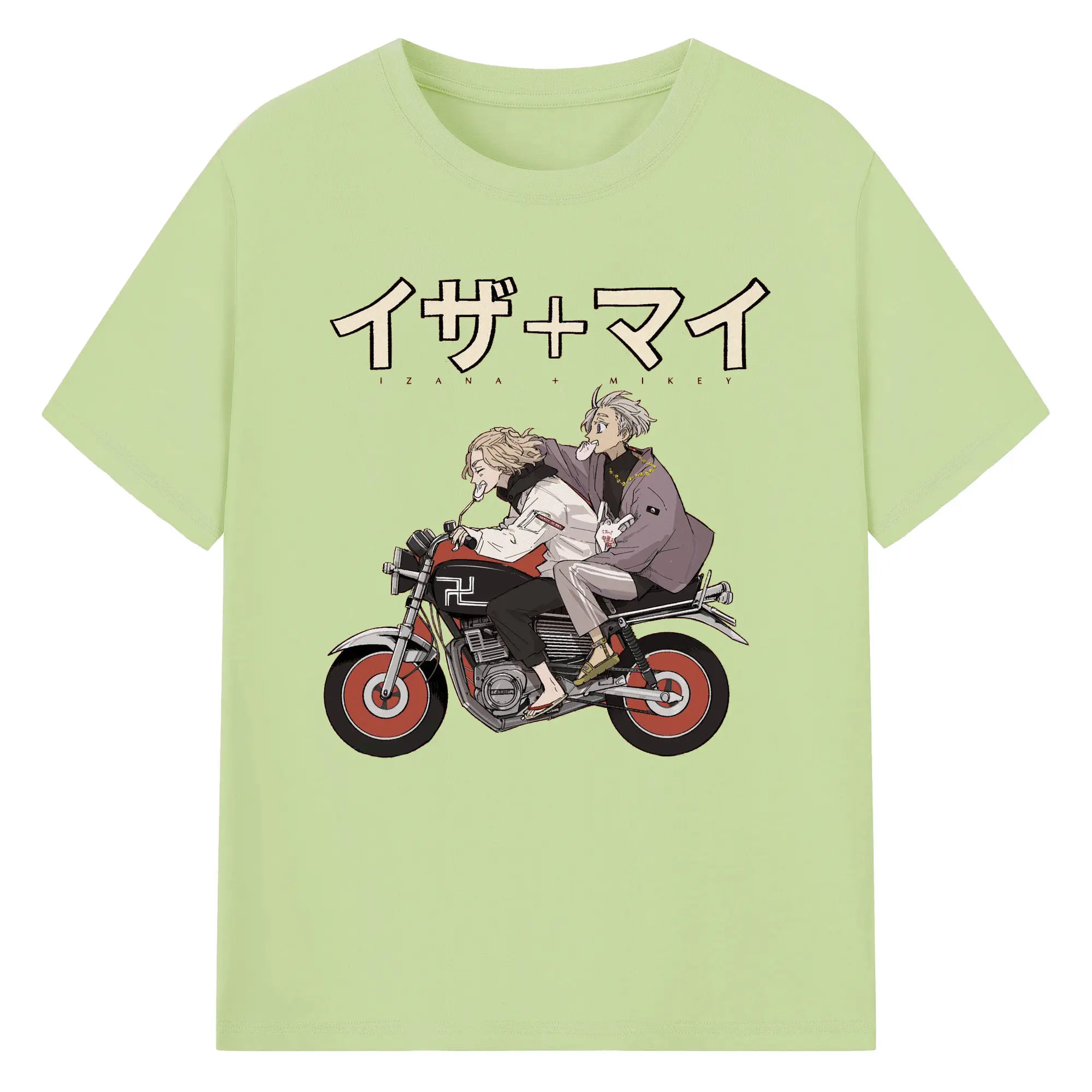 東京卍リベンジャーズ イザ+マイ - 綿100% 半袖Tシャツ ・ フロントプリント ・ 快適 通気性 ・ 日常使い 散歩 スポーツ用