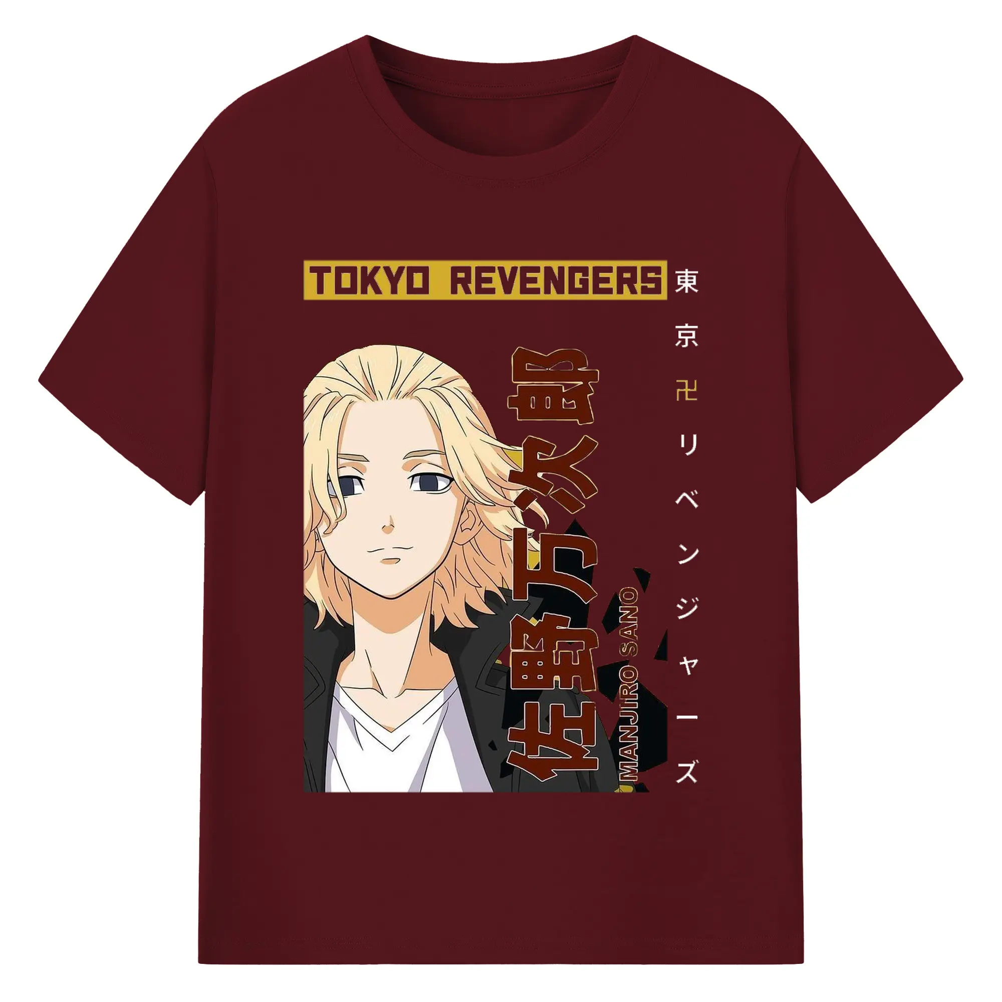 東京卍リベンジャーズ 東リベ佐野万次郎 - 綿100% 半袖Tシャツ ・ フロントプリント ・ 快適 通気性 ・ 日常使い 散歩 スポーツ用