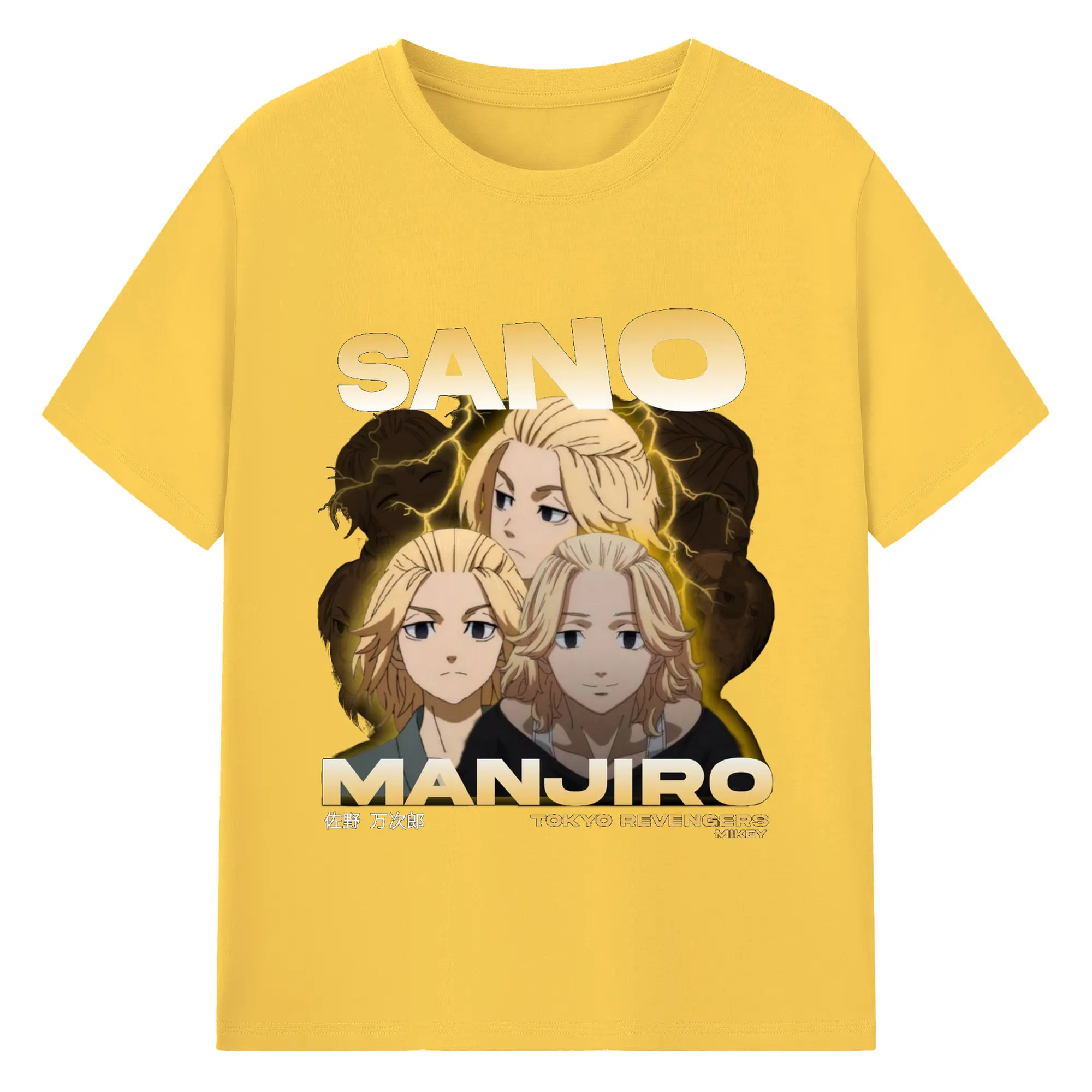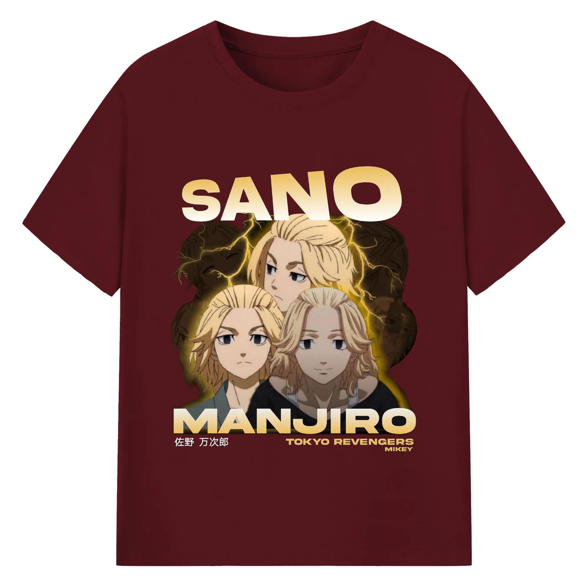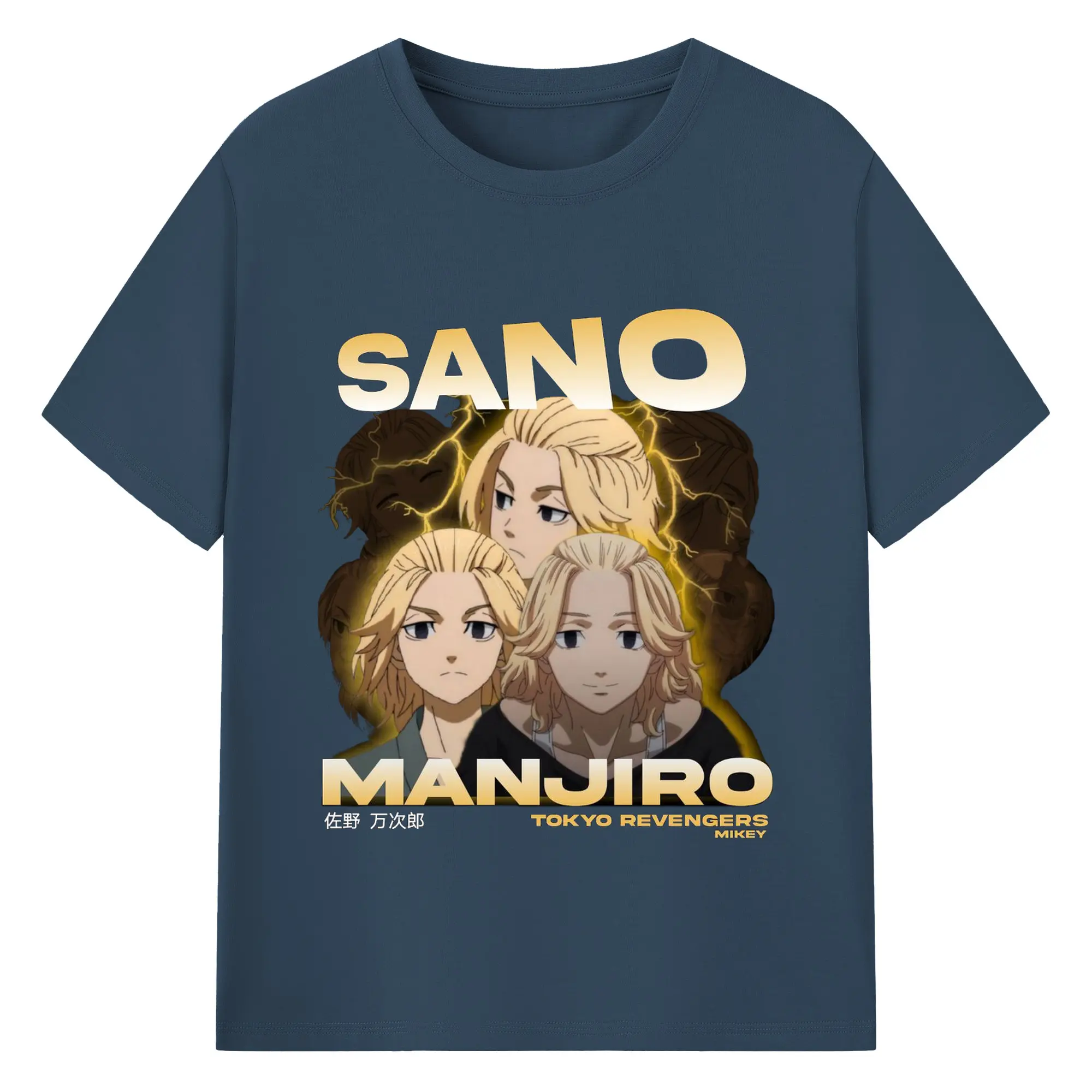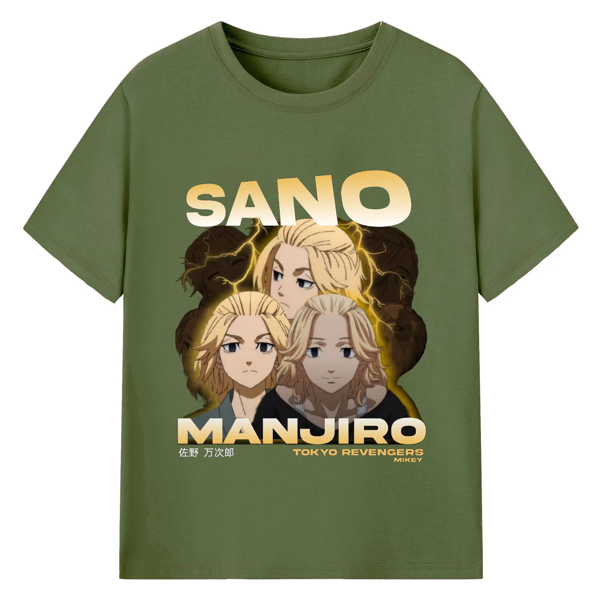 東京卍リベンジャーズ 東リベ佐野万次郎 - 綿100% 半袖Tシャツ ・ フロントプリント ・ 快適 通気性 ・ 日常使い 散歩 スポーツ用