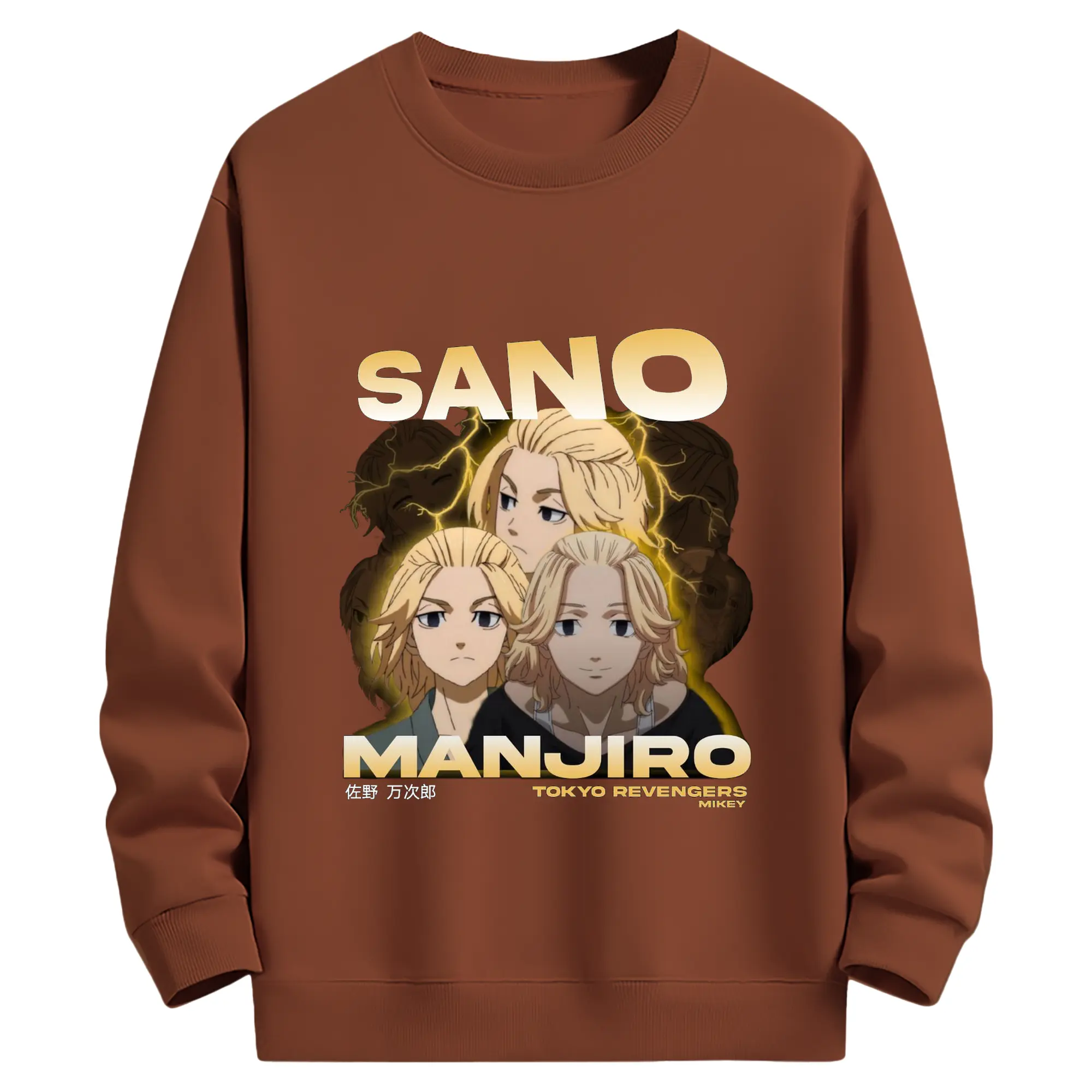東京卍リベンジャーズ 東リベ佐野万次郎 - 高品質 クルーネック スウェット ・ コットン59% ポリエステル41% ・ ユニセックス 長袖 トレーナー ・ カジュアル デイリー スポーツ 散歩用