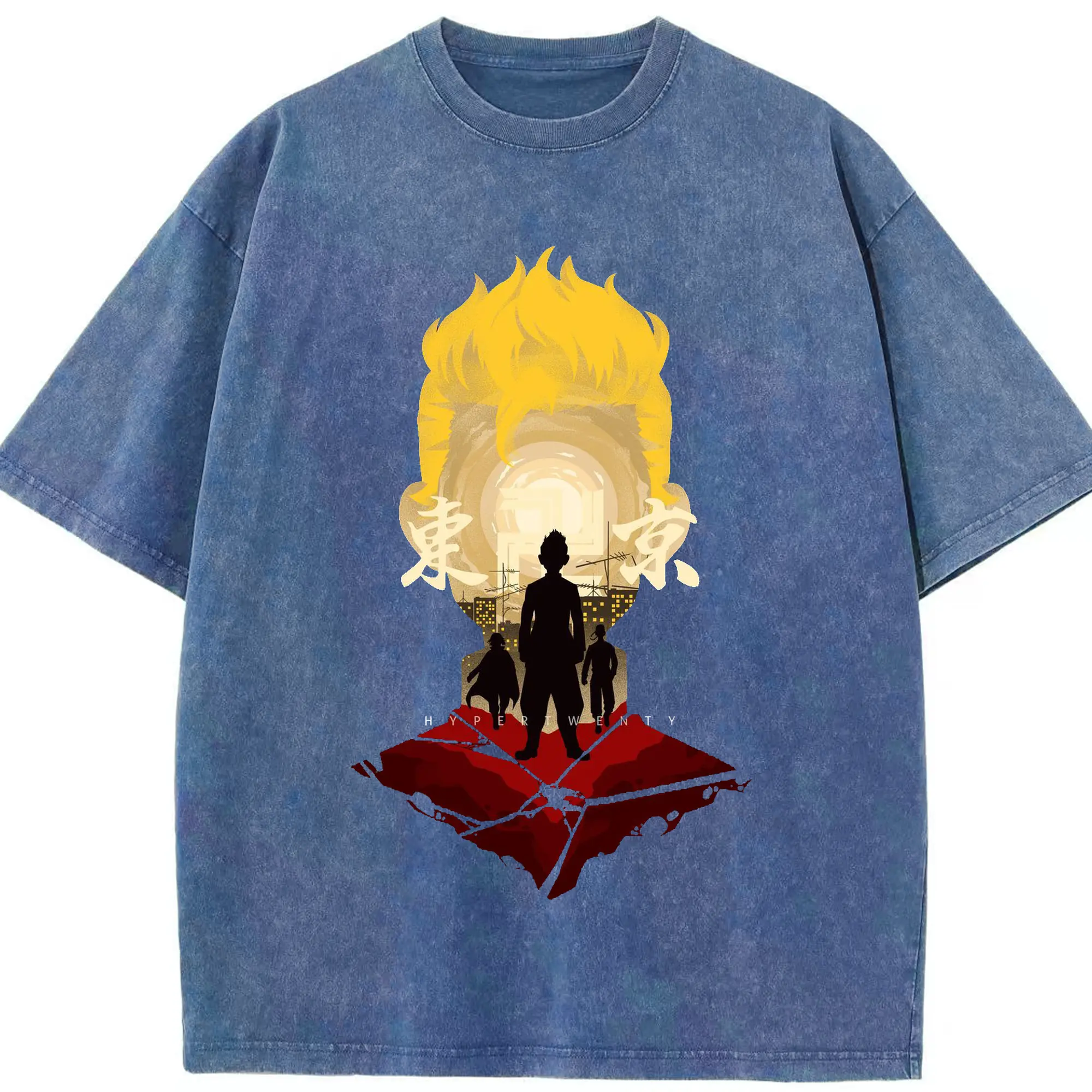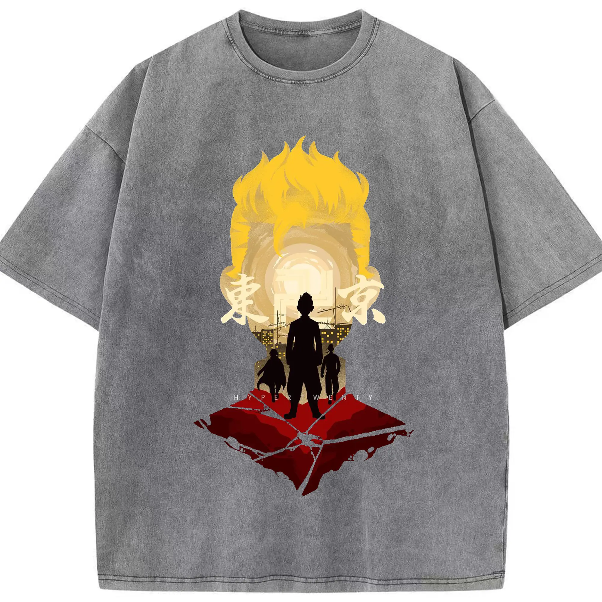 東京卍リベンジャーズ 東リベ花垣武道 - 綿100% ヴィンテージ風 半袖Tシャツ ・ フロントプリント ・ 柔らか肌触り ・ 通気性 快適 ・ スポーツ カジュアル 外出用