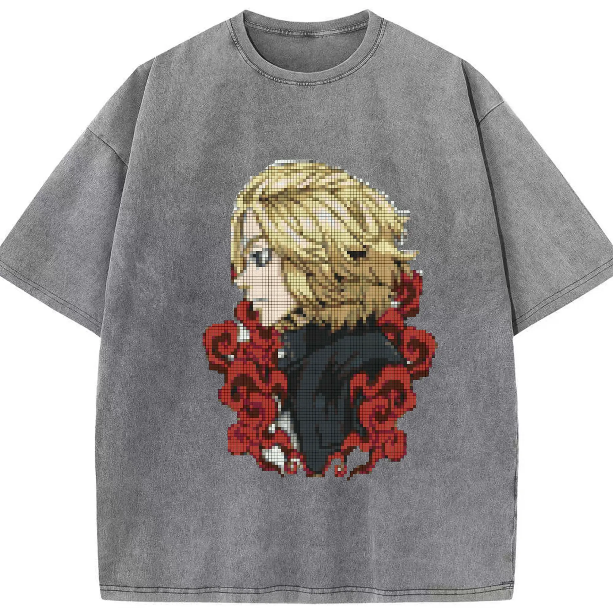 東京卍リベンジャーズ 東リベ佐野万次郎 - 綿100% ヴィンテージ風 半袖Tシャツ ・ フロントプリント ・ 柔らか肌触り ・ 通気性 快適 ・ スポーツ カジュアル 外出用