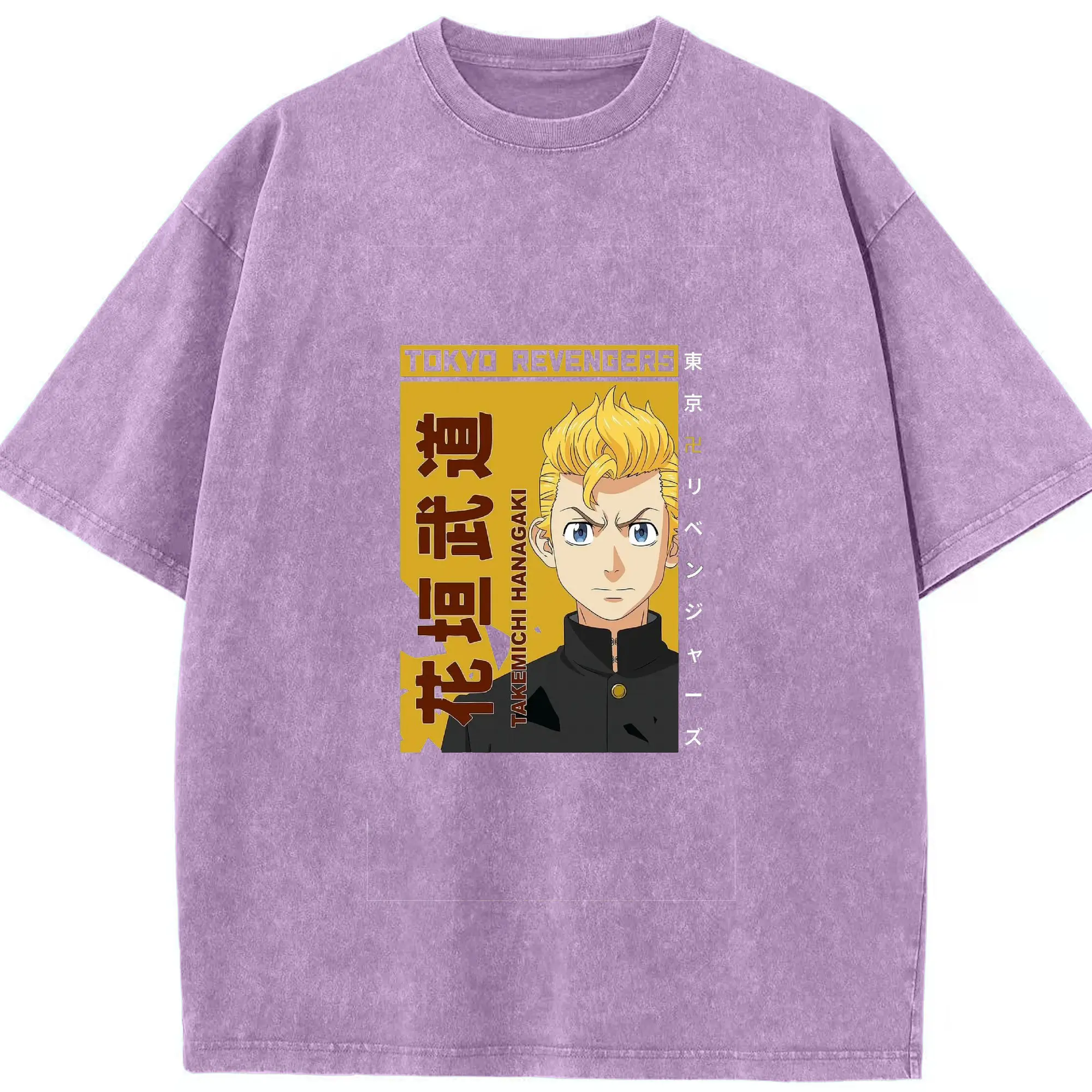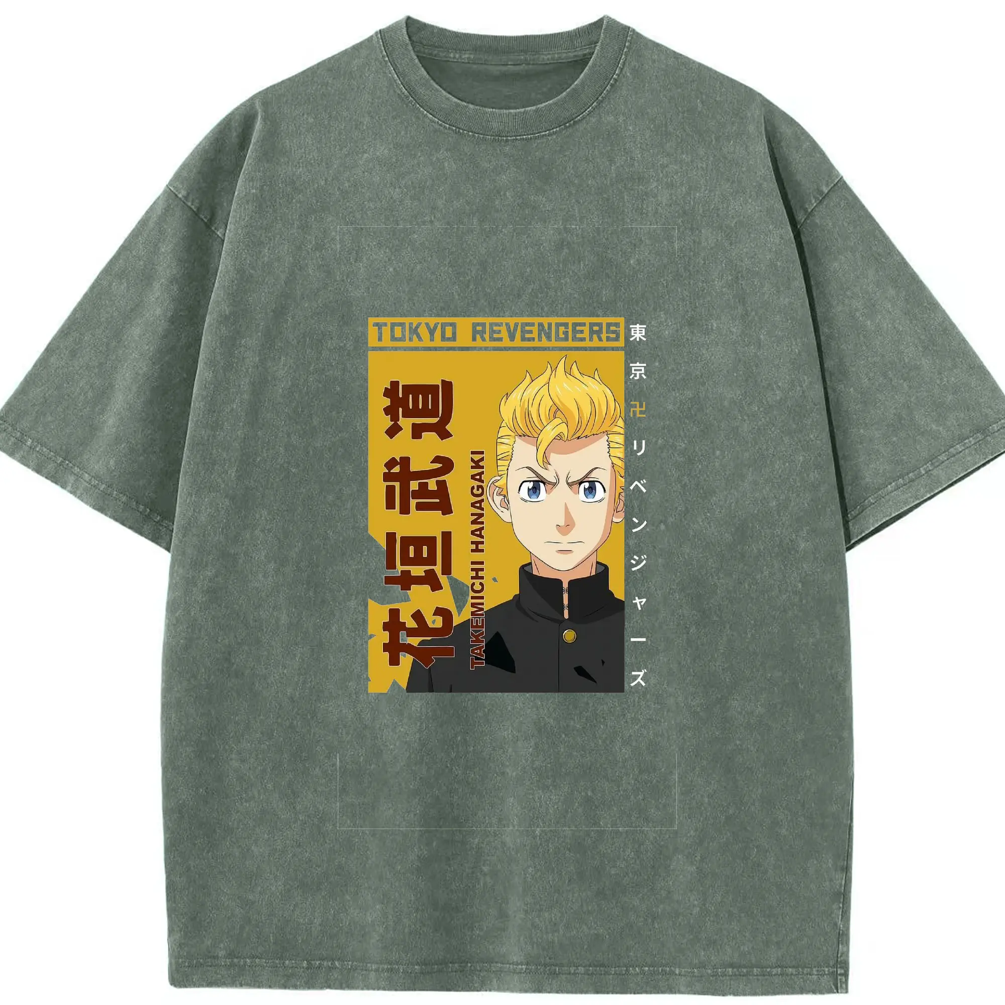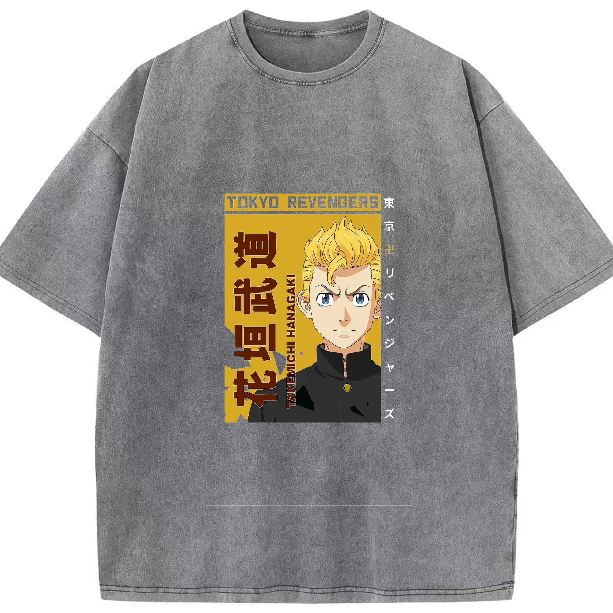 東京卍リベンジャーズ 東リベ花垣武道 - 綿100% ヴィンテージ風 半袖Tシャツ ・ フロントプリント ・ 柔らか肌触り ・ 通気性 快適 ・ スポーツ カジュアル 外出用