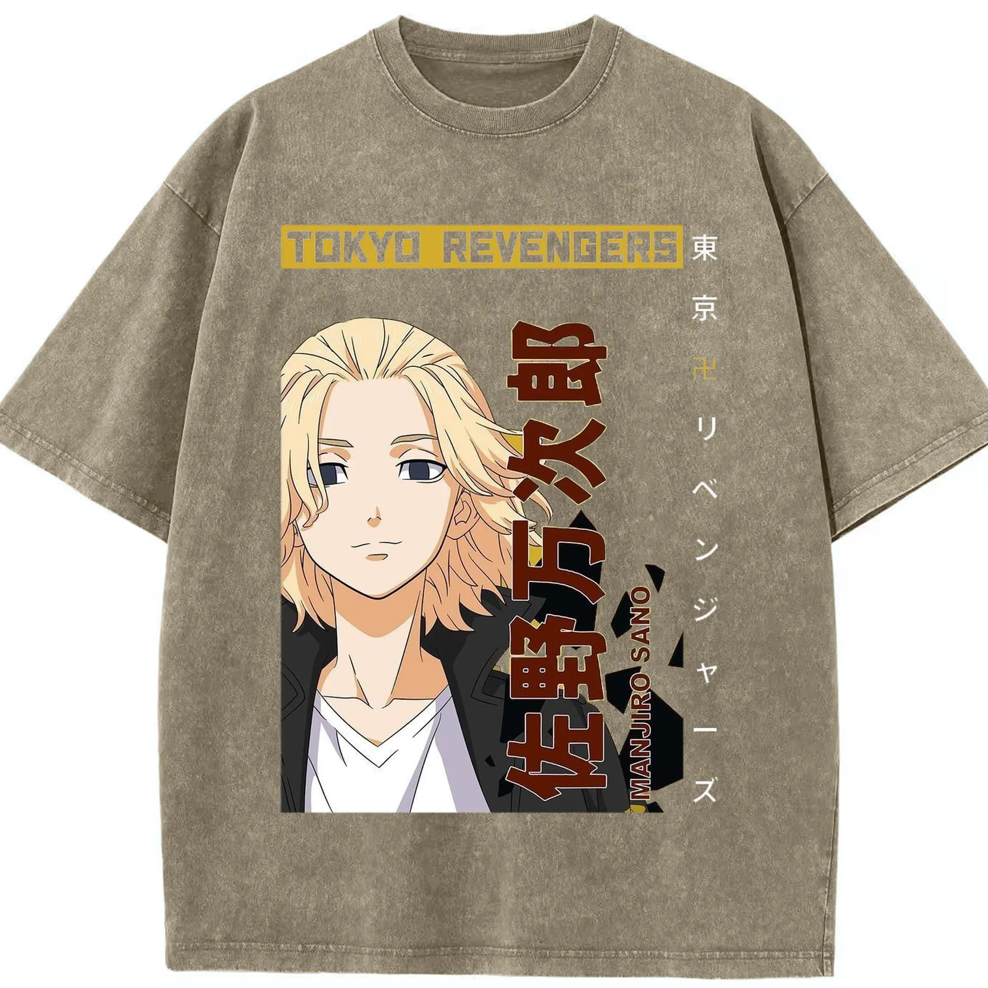 東京卍リベンジャーズ 東リベ佐野万次郎 - 綿100% ヴィンテージ風 半袖Tシャツ ・ フロントプリント ・ 柔らか肌触り ・ 通気性 快適 ・ スポーツ カジュアル 外出用
