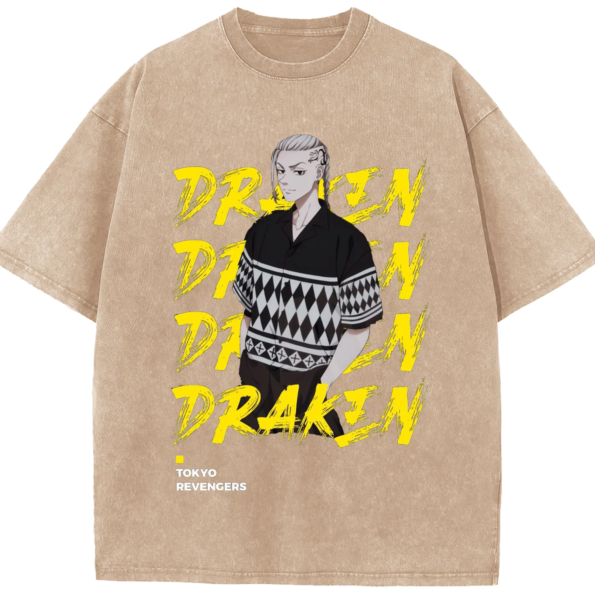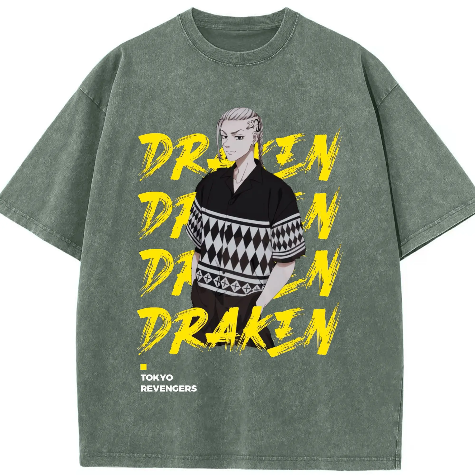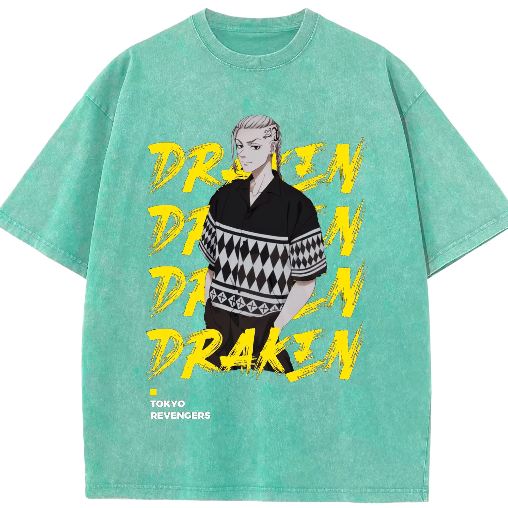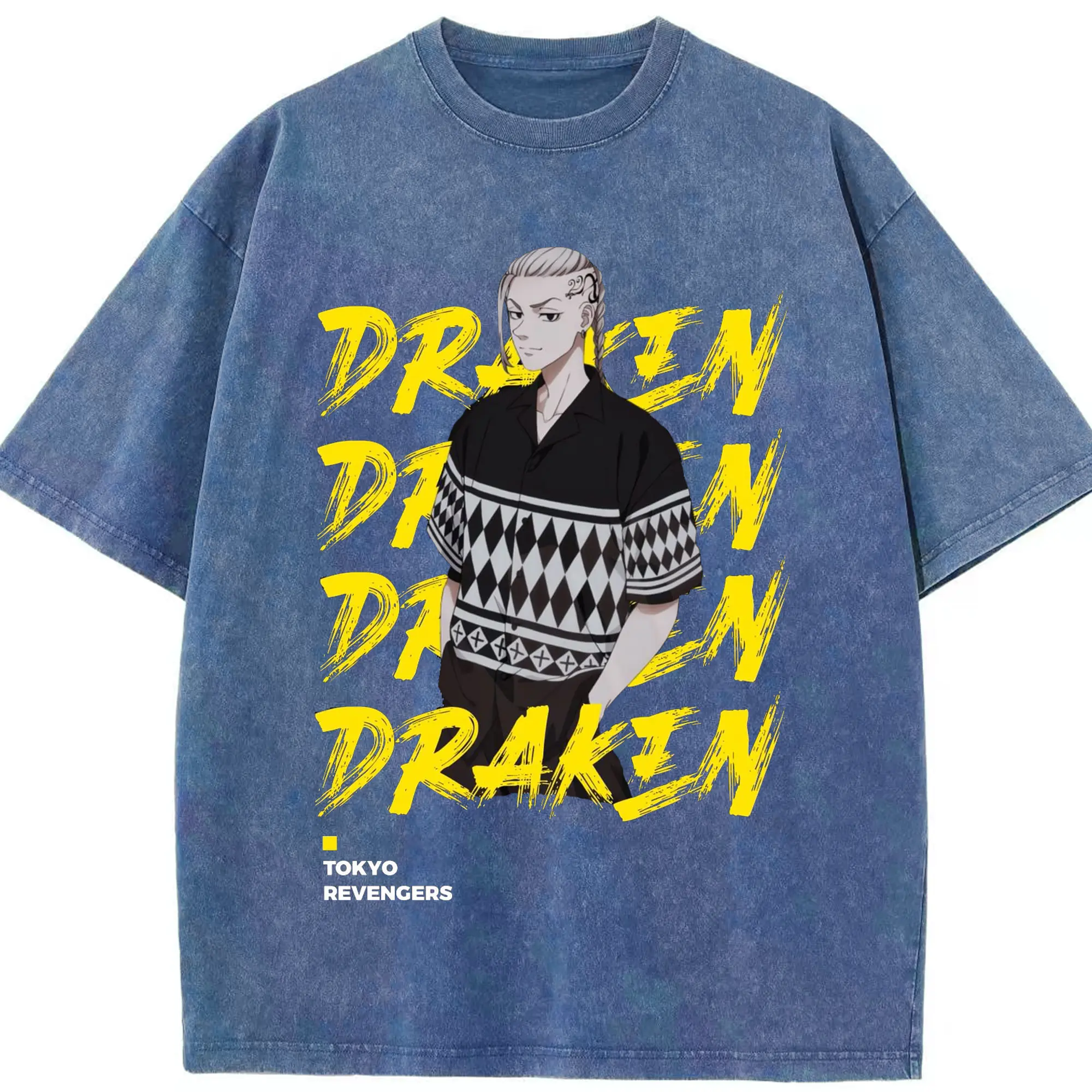 東京卍リベンジャーズ 龍宮寺堅 - 綿100% ヴィンテージ風 半袖Tシャツ ・ フロントプリント ・ 柔らか肌触り ・ 通気性 快適 ・ スポーツ カジュアル 外出用