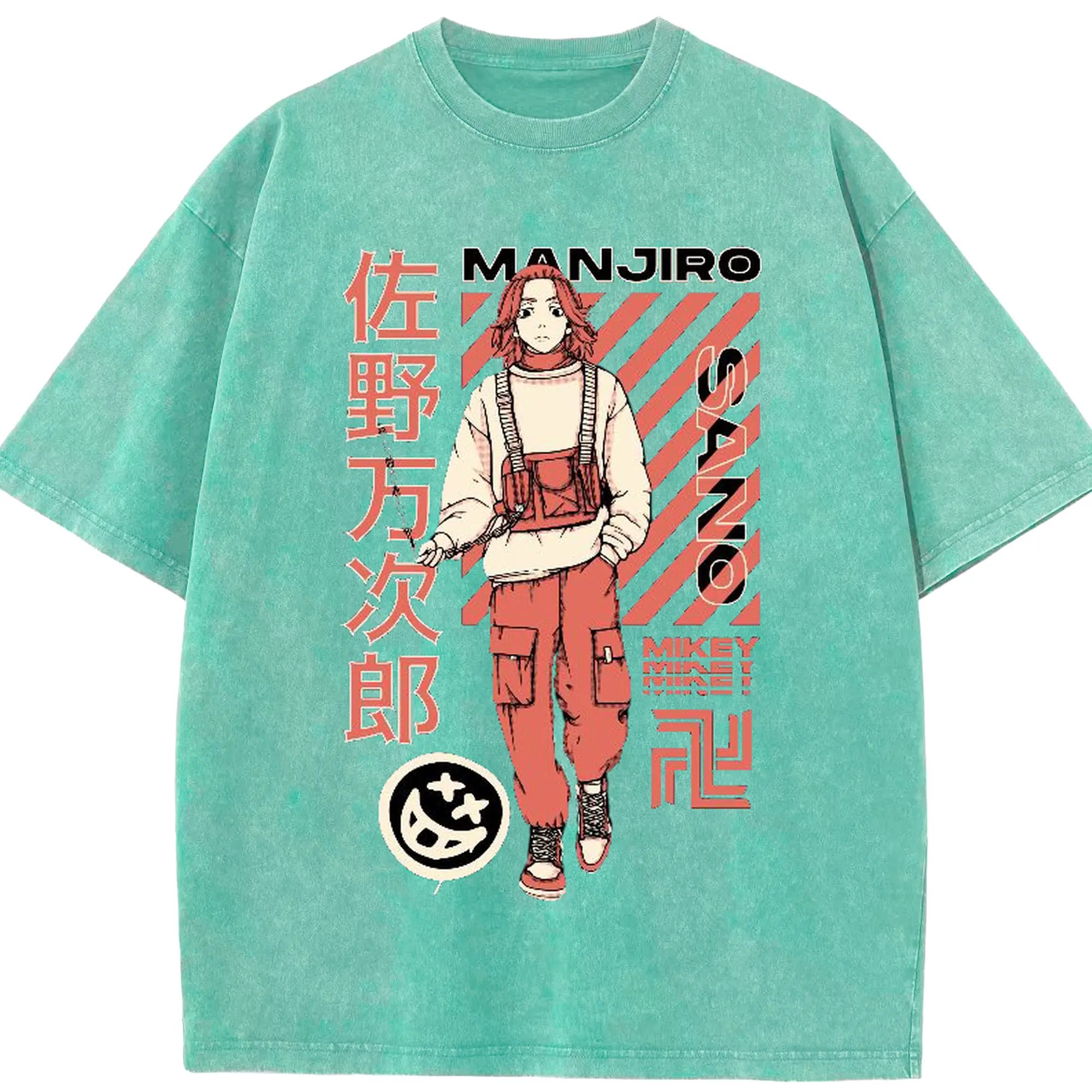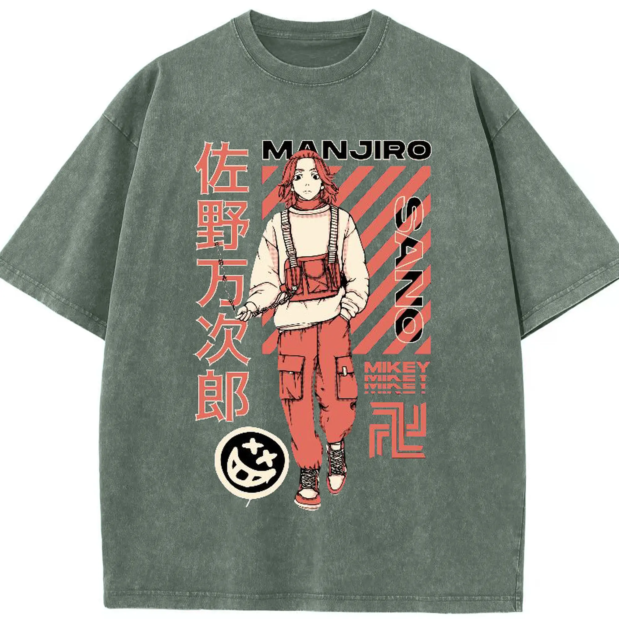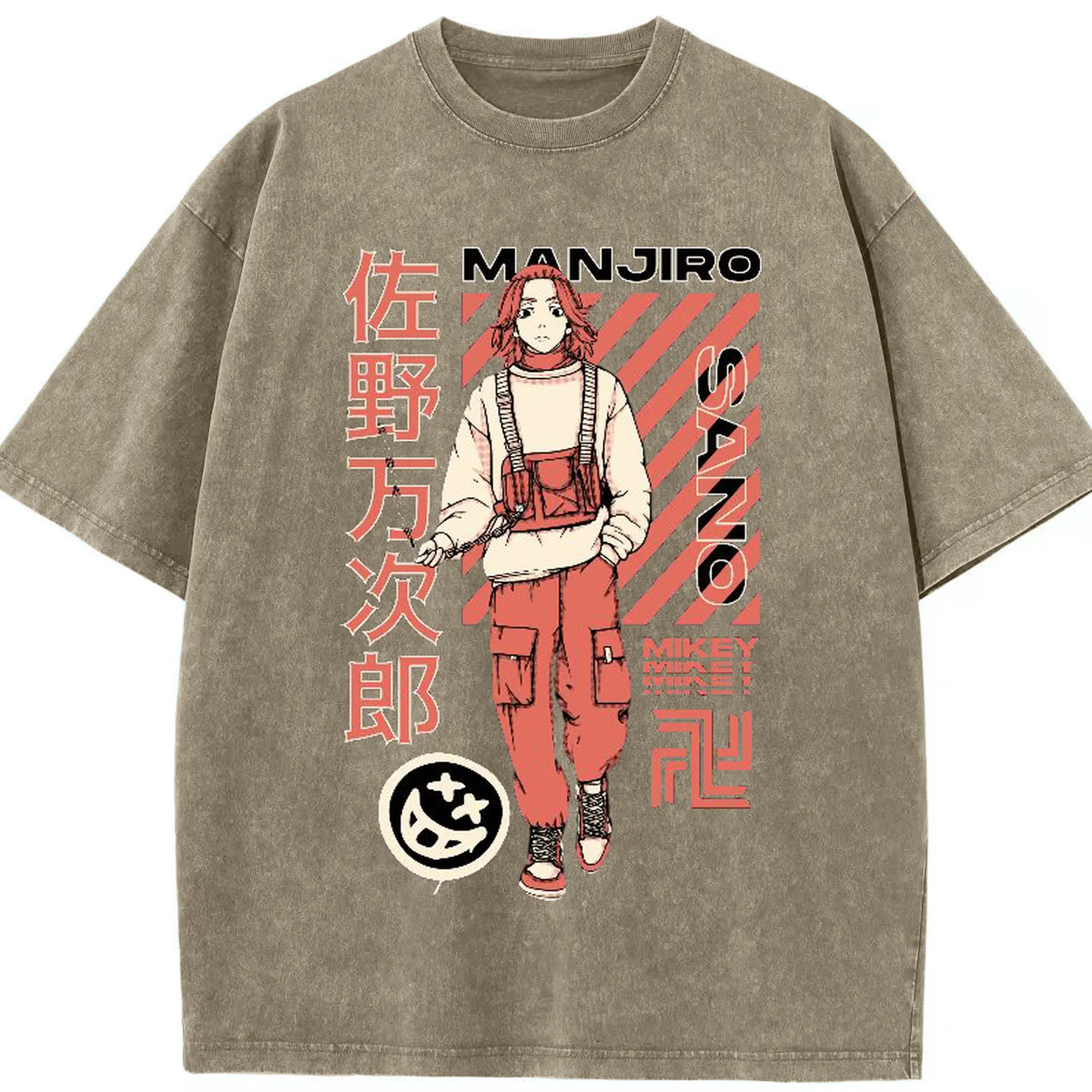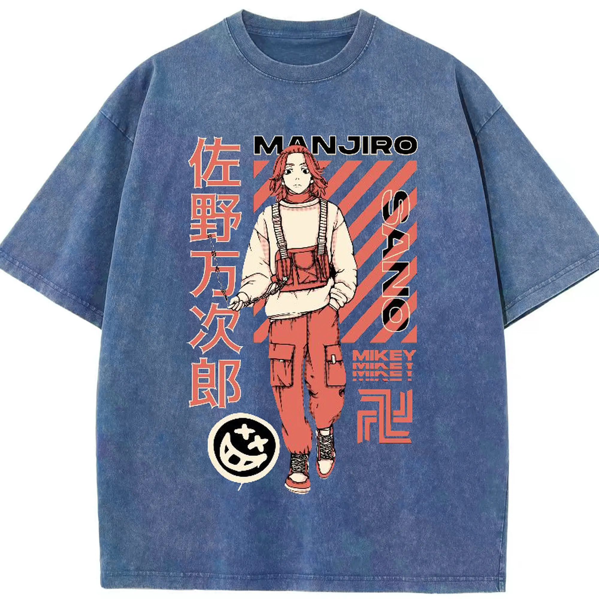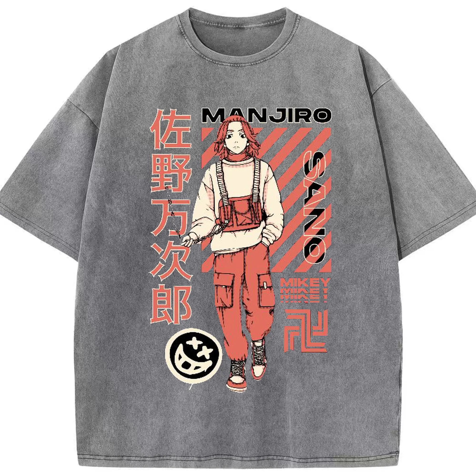 東京卍リベンジャーズ 東リベマイキー - 綿100% ヴィンテージ風 半袖Tシャツ ・ フロントプリント ・ 柔らか肌触り ・ 通気性 快適 ・ スポーツ カジュアル 外出用