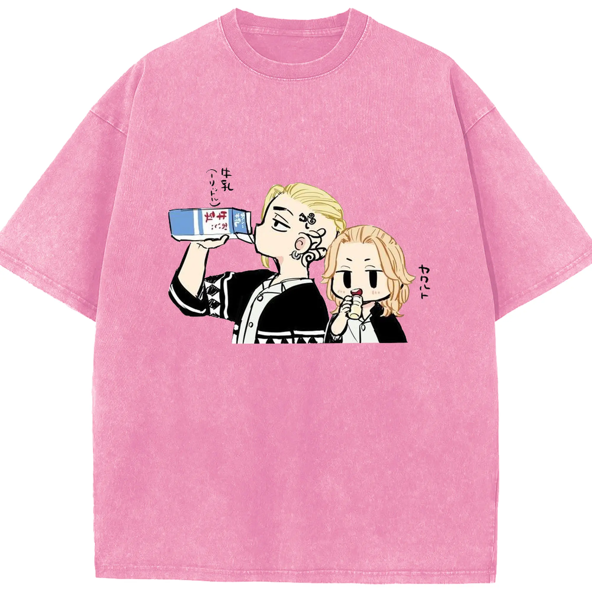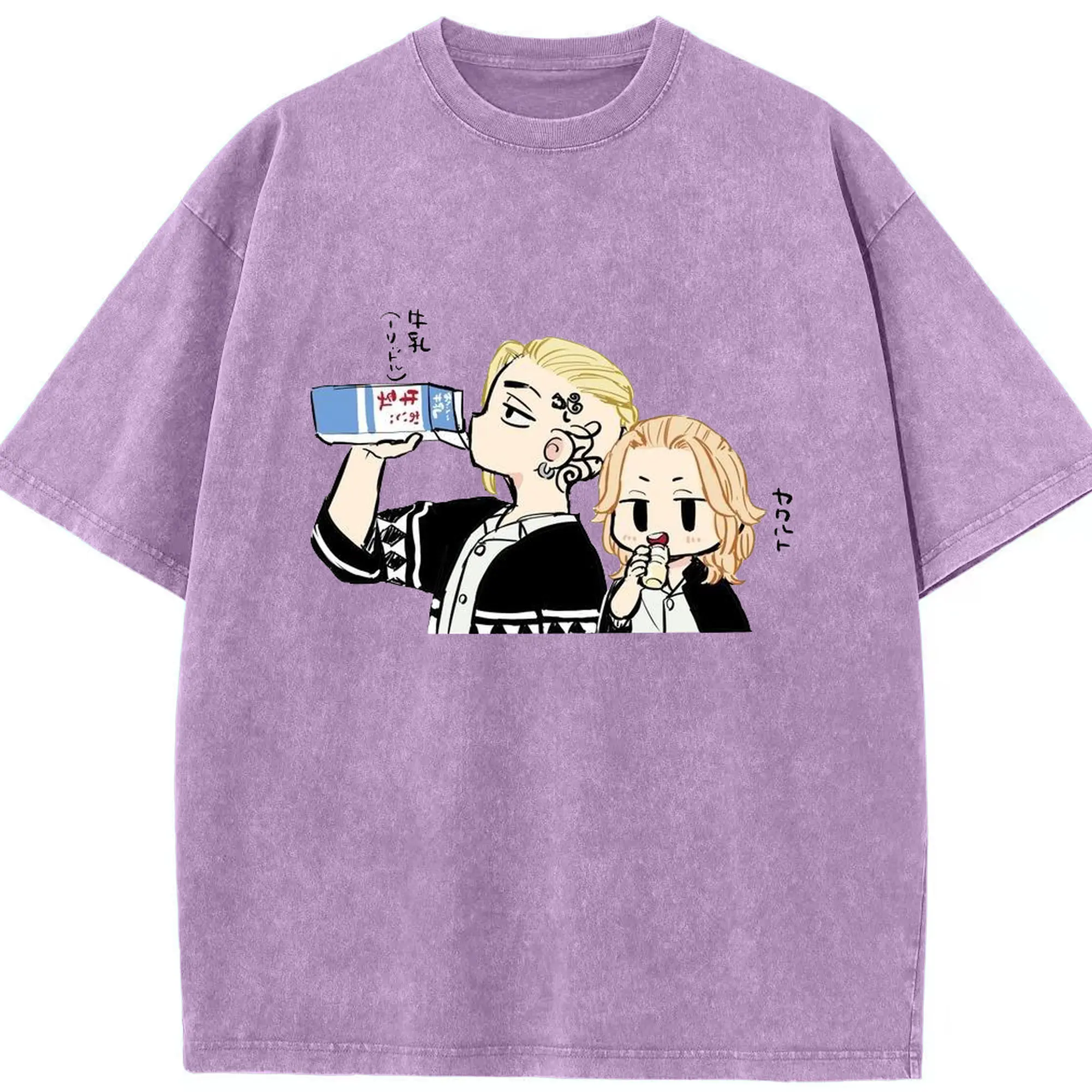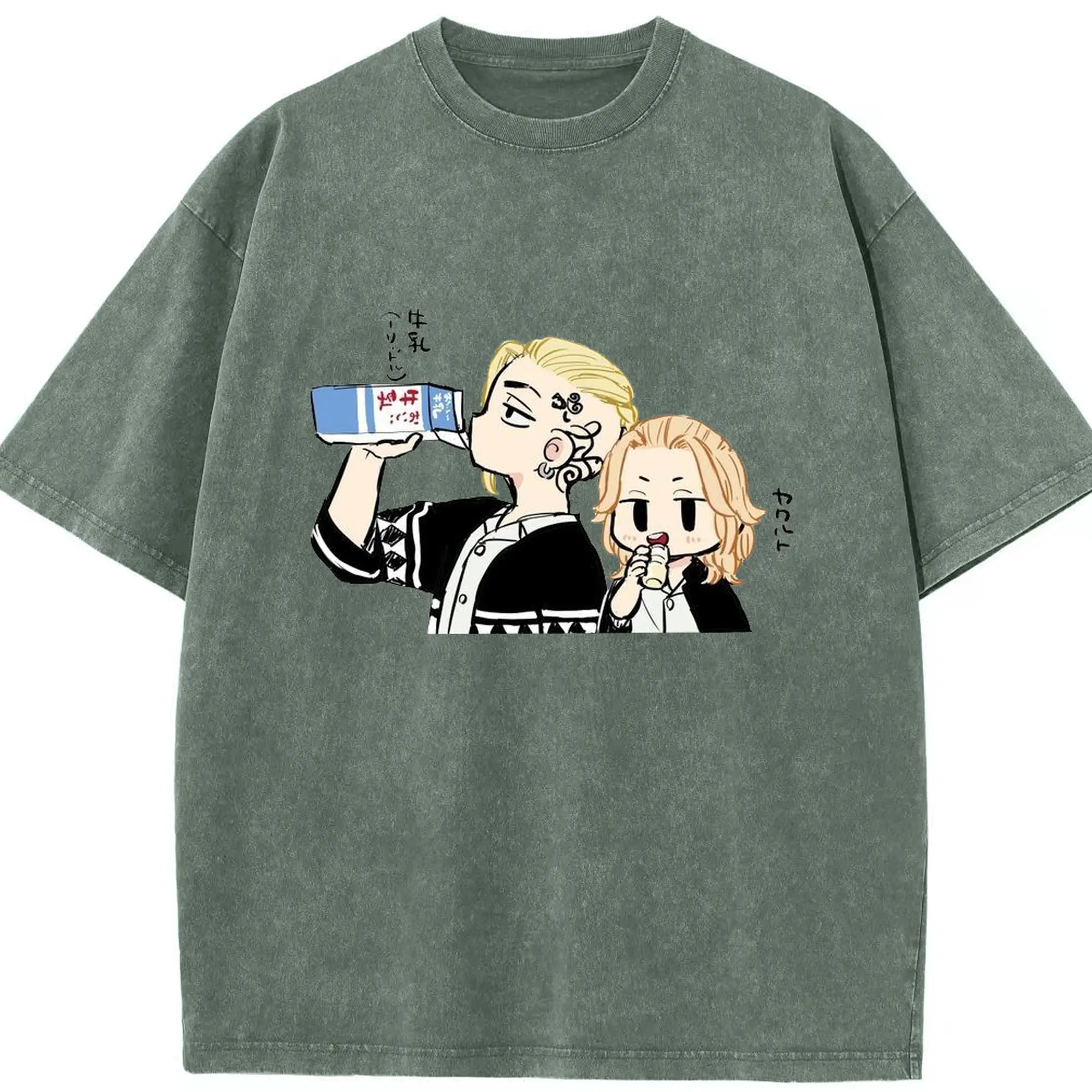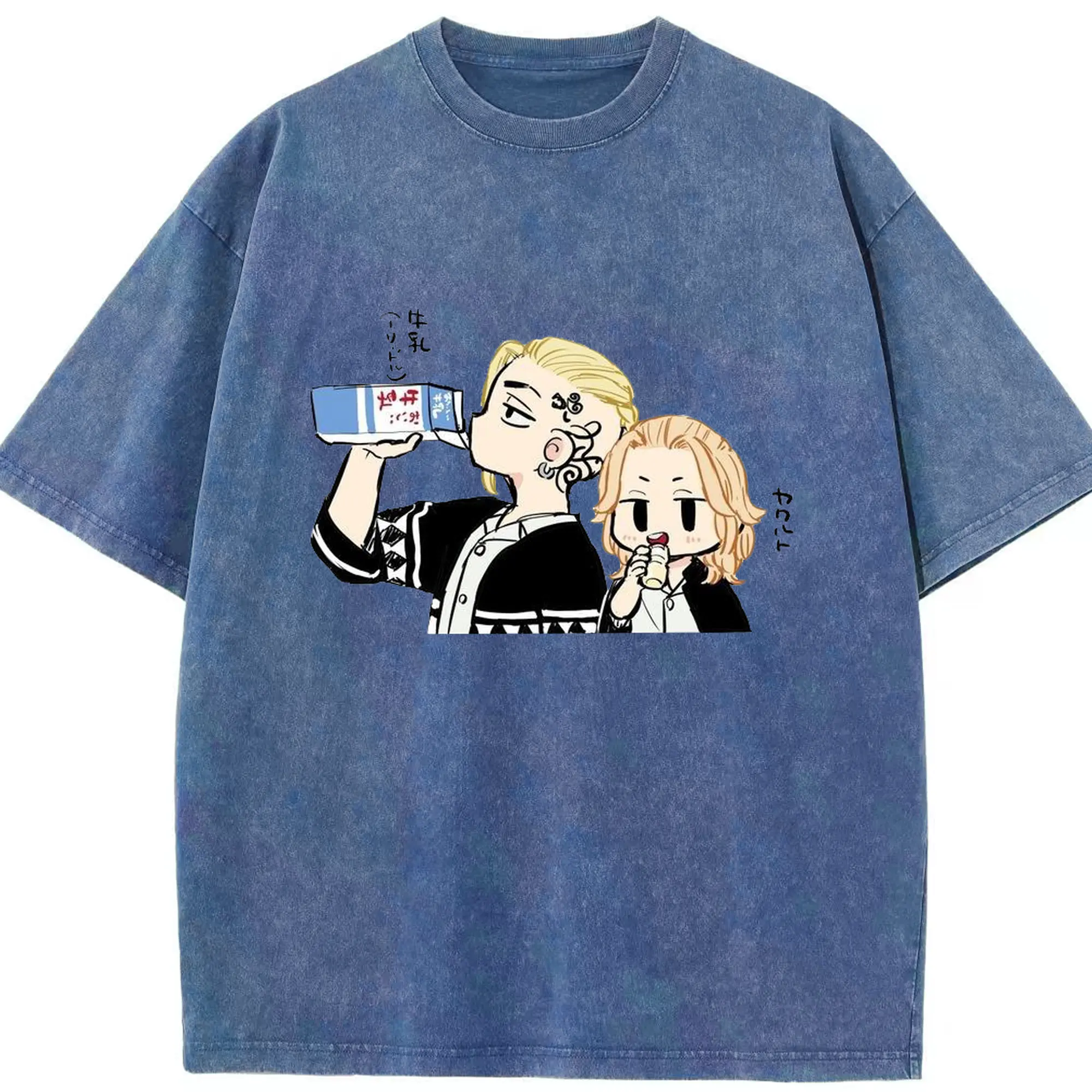 東京卍リベンジャーズ デフォルト ドラケンマイキー - 綿100% ヴィンテージ風 半袖Tシャツ ・ フロントプリント ・ 柔らか肌触り ・ 通気性 快適 ・ スポーツ カジュアル 外出用