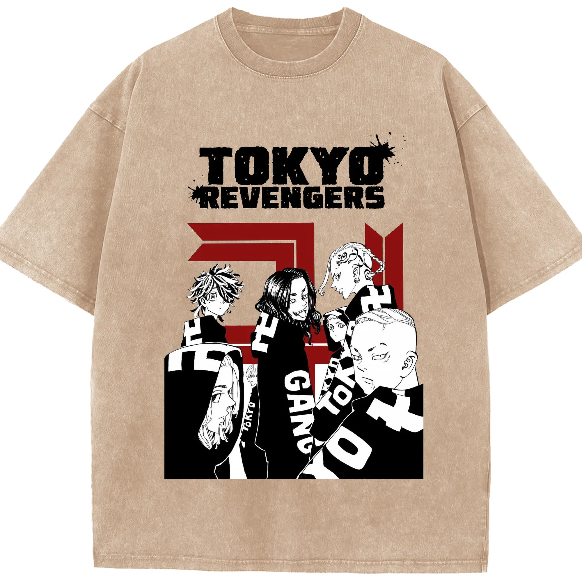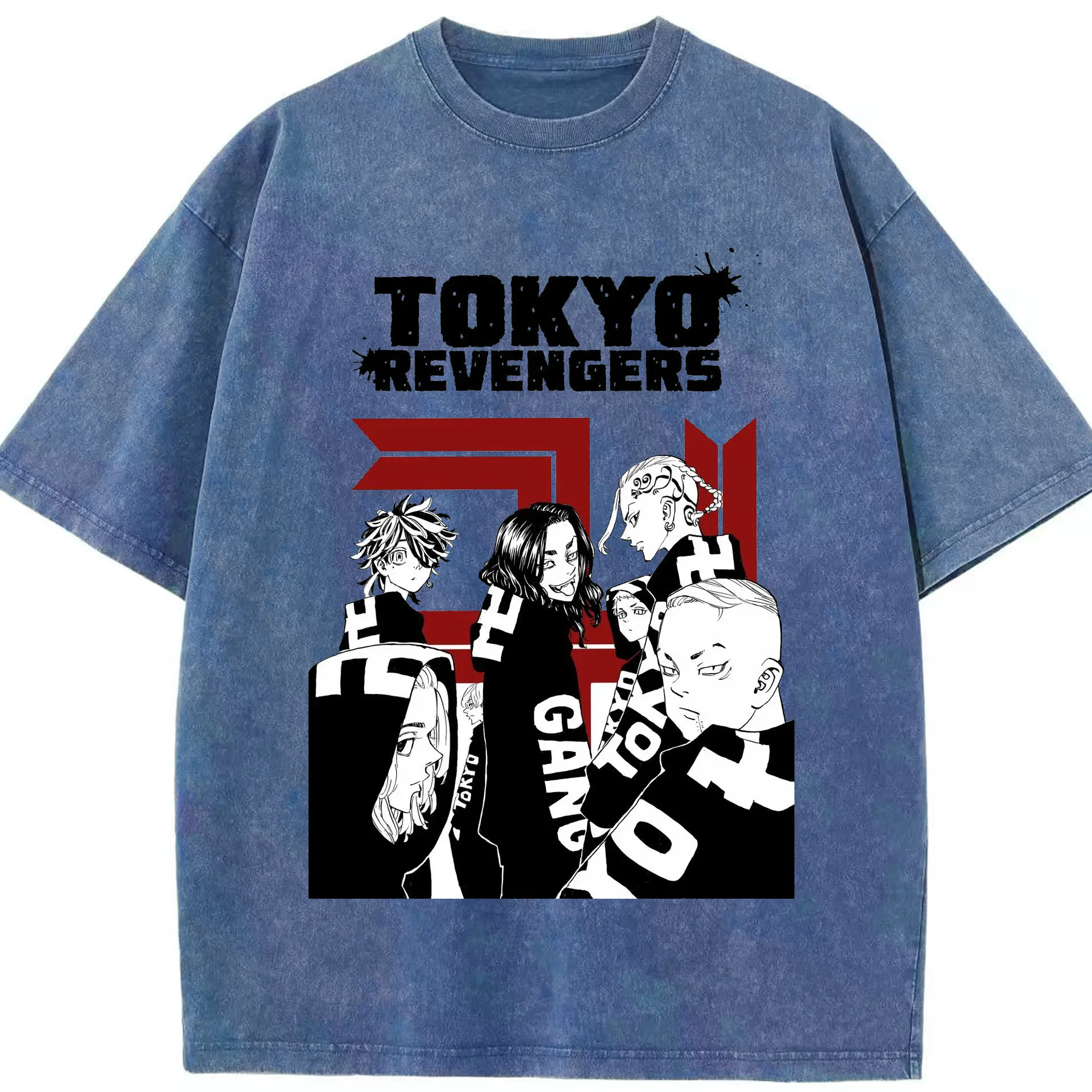 東京卍リベンジャーズ 東リベ隊長 - 綿100% ヴィンテージ風 半袖Tシャツ ・ フロントプリント ・ 柔らか肌触り ・ 通気性 快適 ・ スポーツ カジュアル 外出用