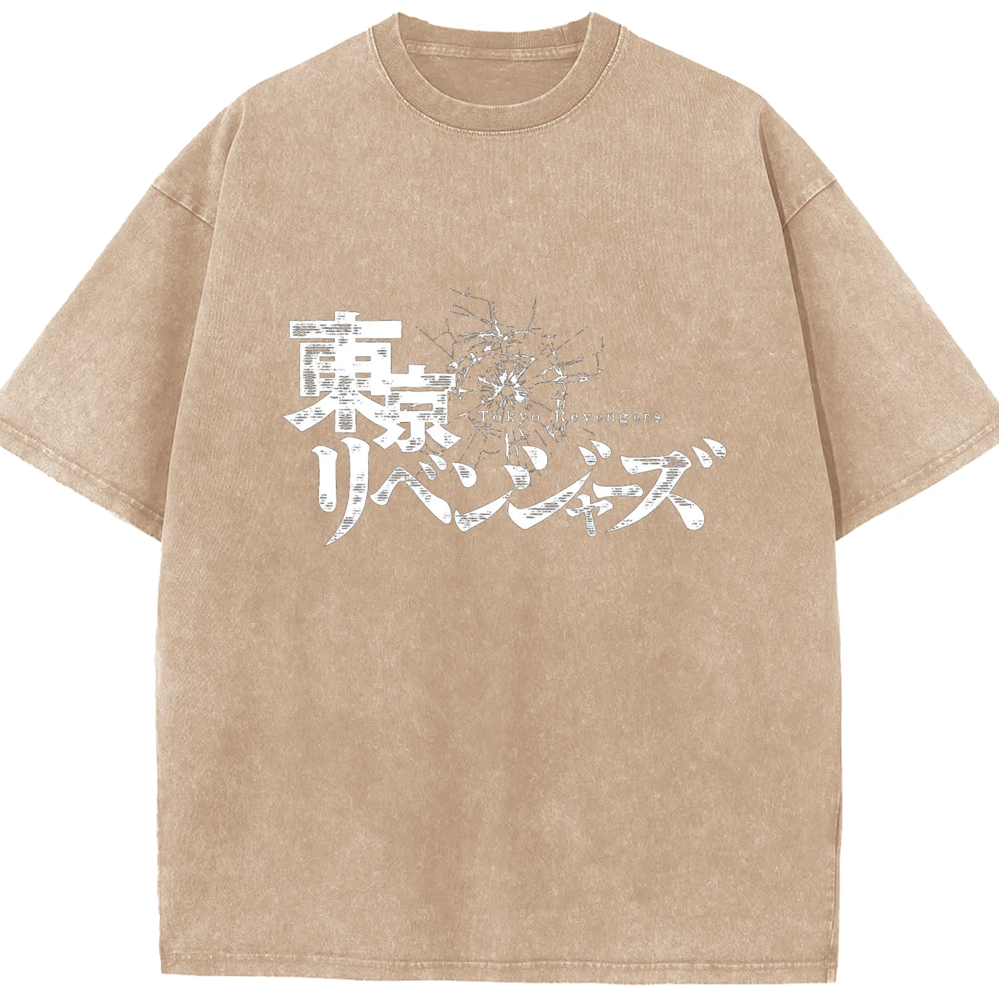 東京卍リベンジャーズ シンプルロゴ - 綿100% ヴィンテージ風 半袖Tシャツ ・ フロントプリント ・ 柔らか肌触り ・ 通気性 快適 ・ スポーツ カジュアル 外出用
