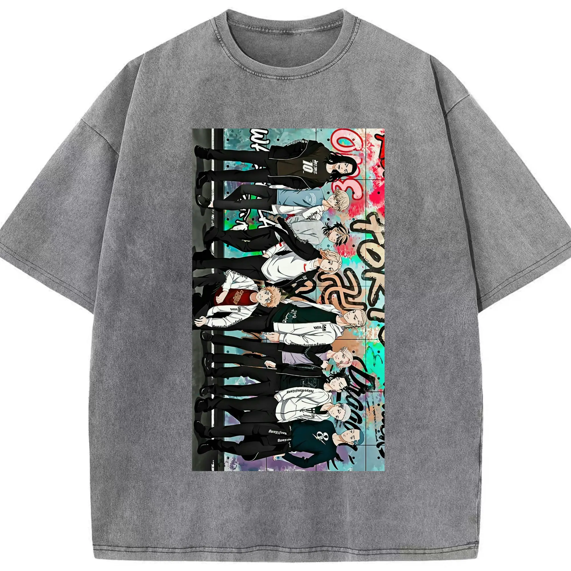 東京卍リベンジャーズ - 綿100% ヴィンテージ風 半袖Tシャツ ・ フロントプリント ・ 柔らか肌触り ・ 通気性 快適 ・ スポーツ カジュアル 外出用