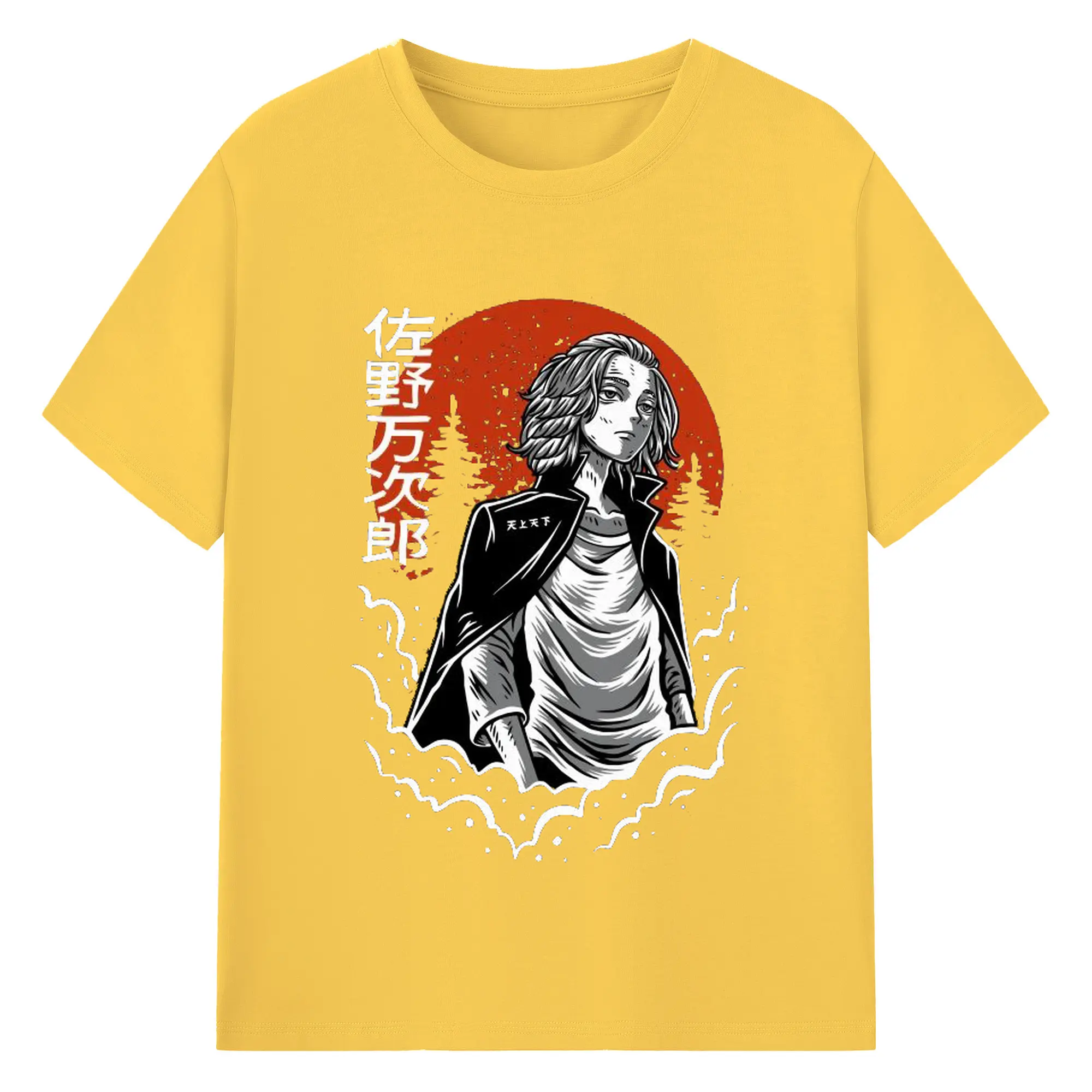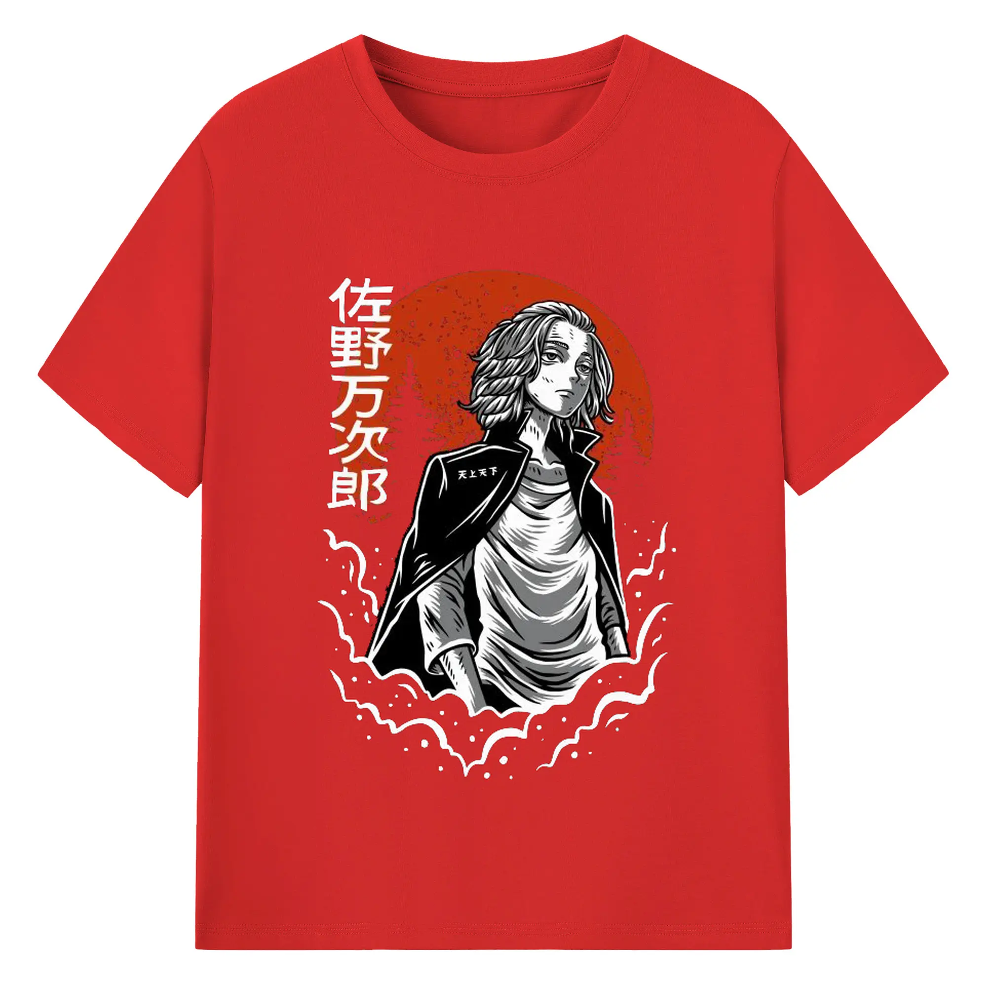 東京卍リベンジャーズ 東リベ佐野万次郎 - 綿100% 半袖Tシャツ ・ フロントプリント ・ 快適 通気性 ・ 日常使い 散歩 スポーツ用